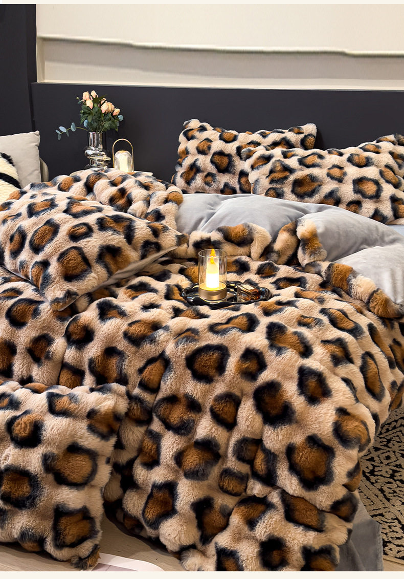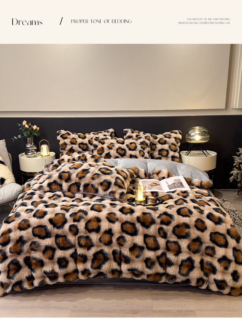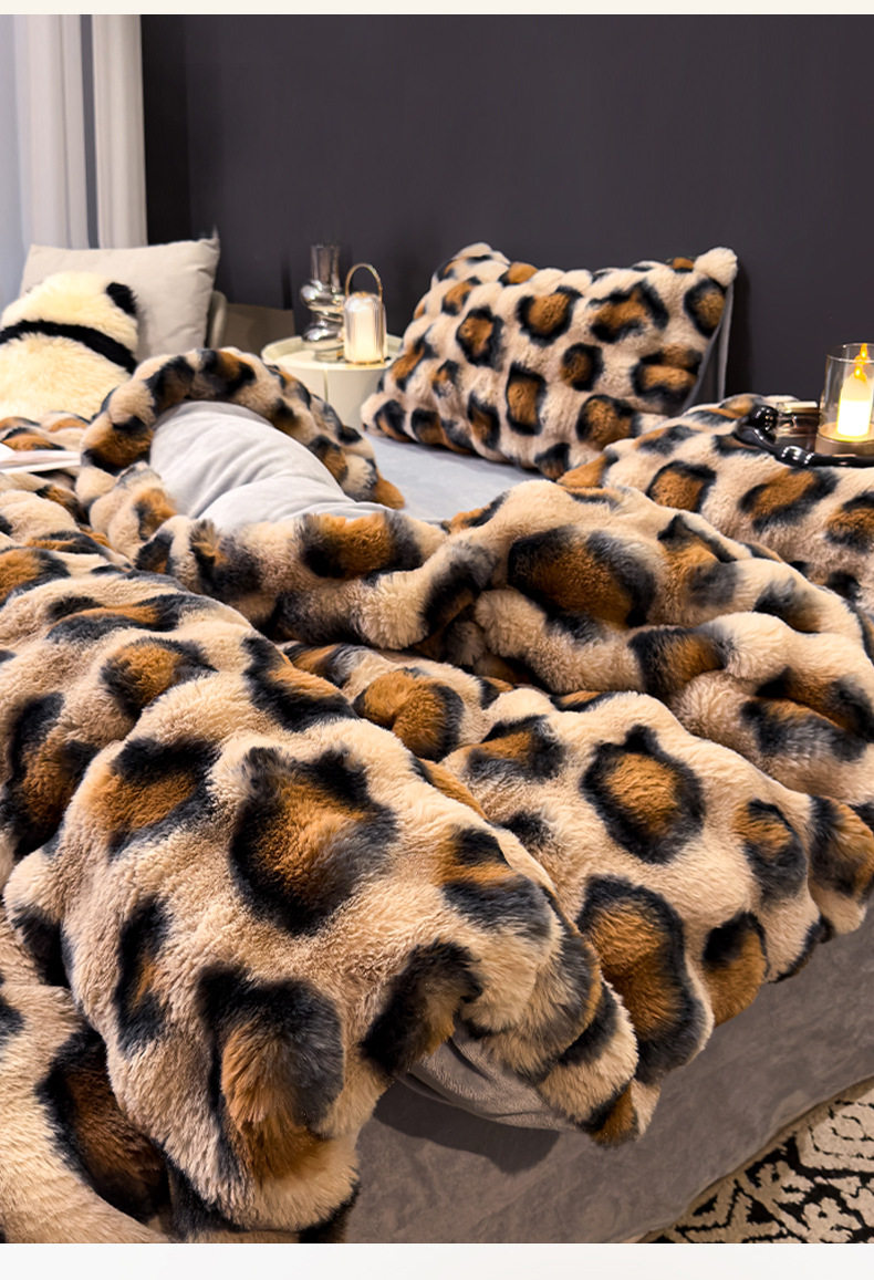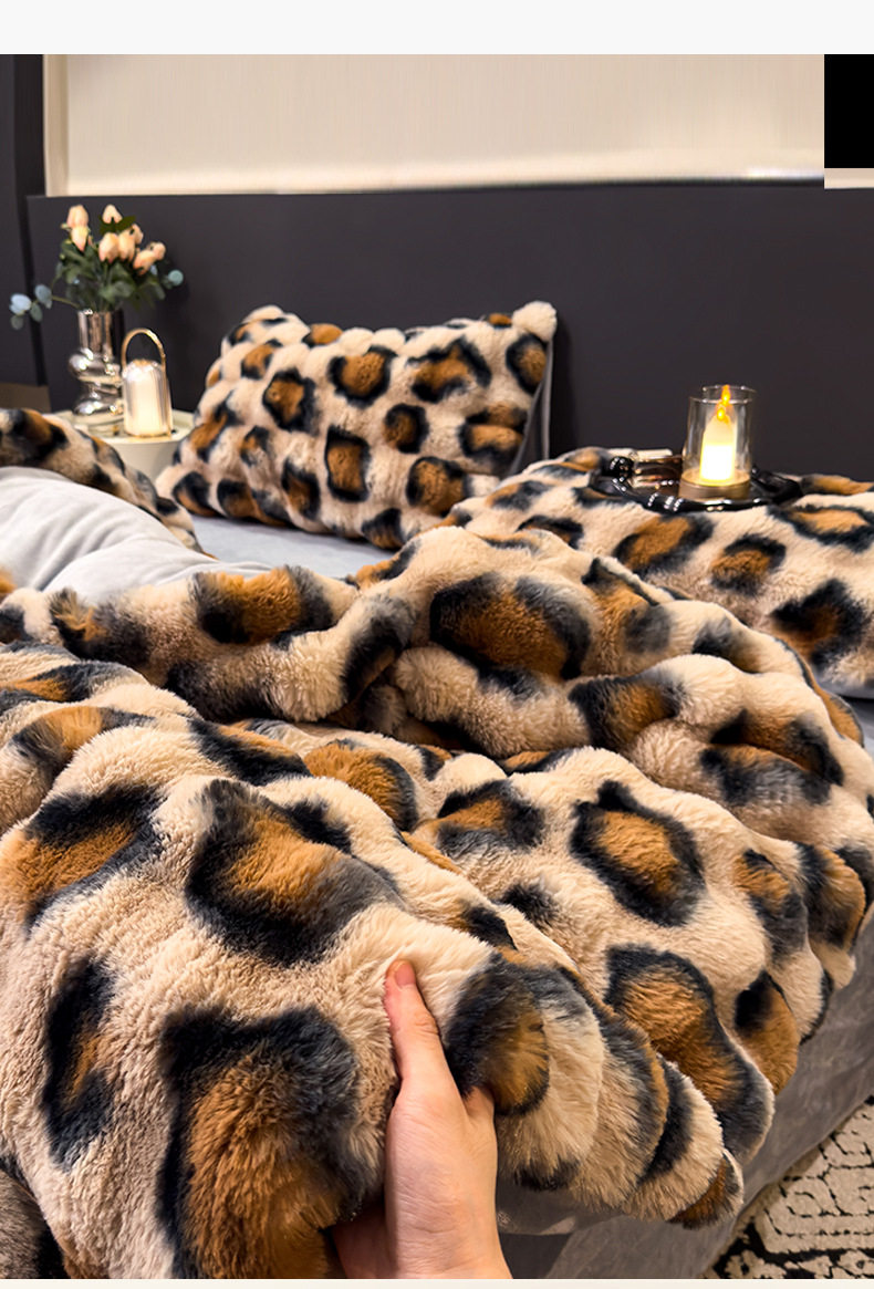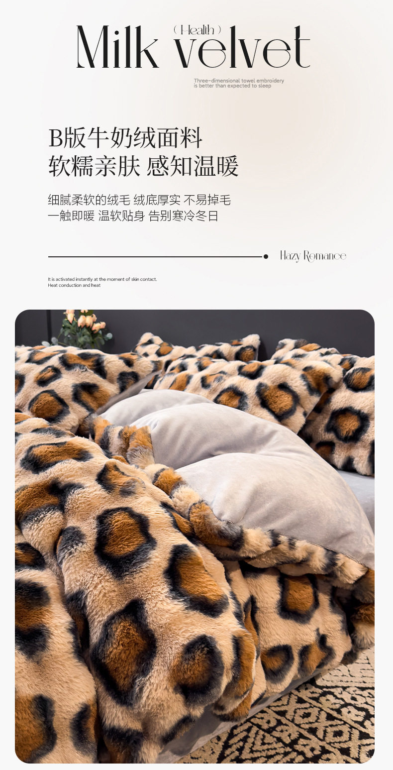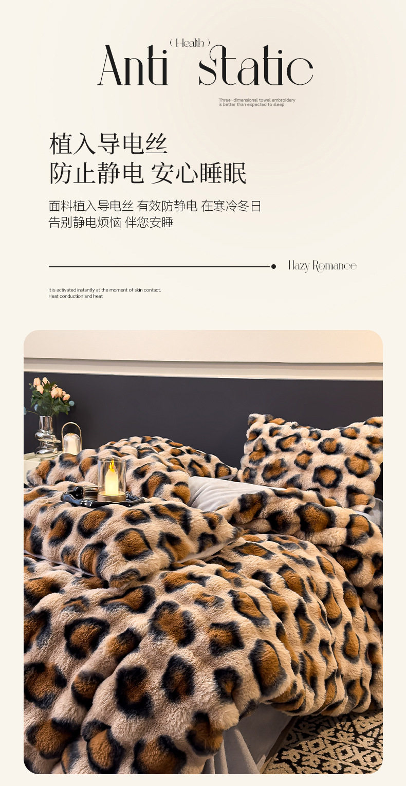 Thickened High-Weight Rabbit Plush Four-Piece Set Milk Velvet Class a Maternal and Infant Grade Autumn and Winter Warm Fleece-Lined Bed Bed Sheetss and Quilt Covers