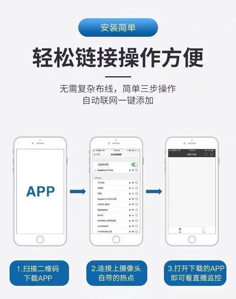 Wireless Home Surveillance Camera Connected to Mobile Phone for Remote High-Definition Without Monitor Without Plug-In Network Smart Digital