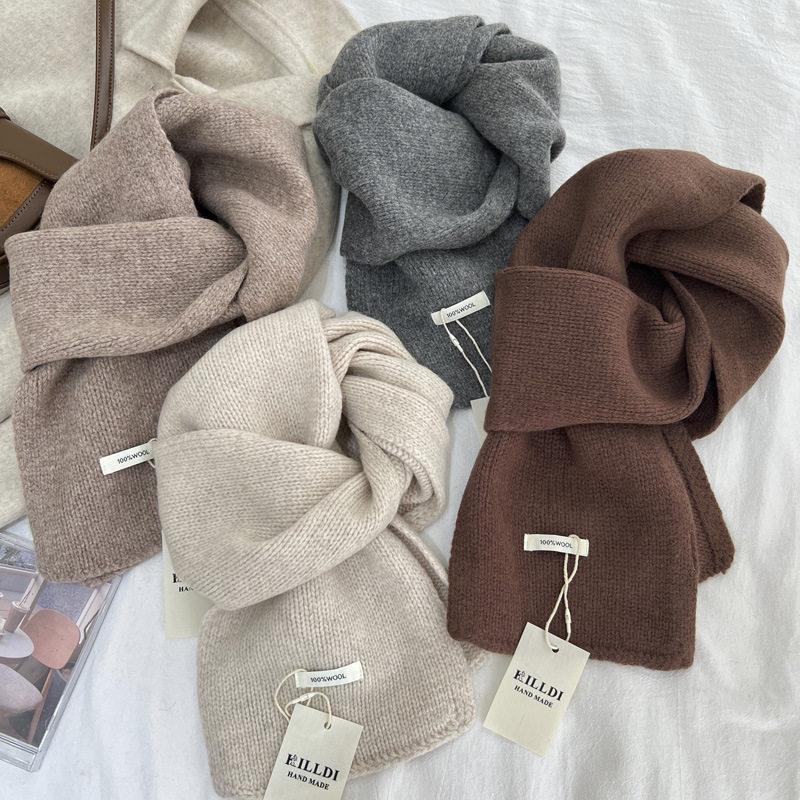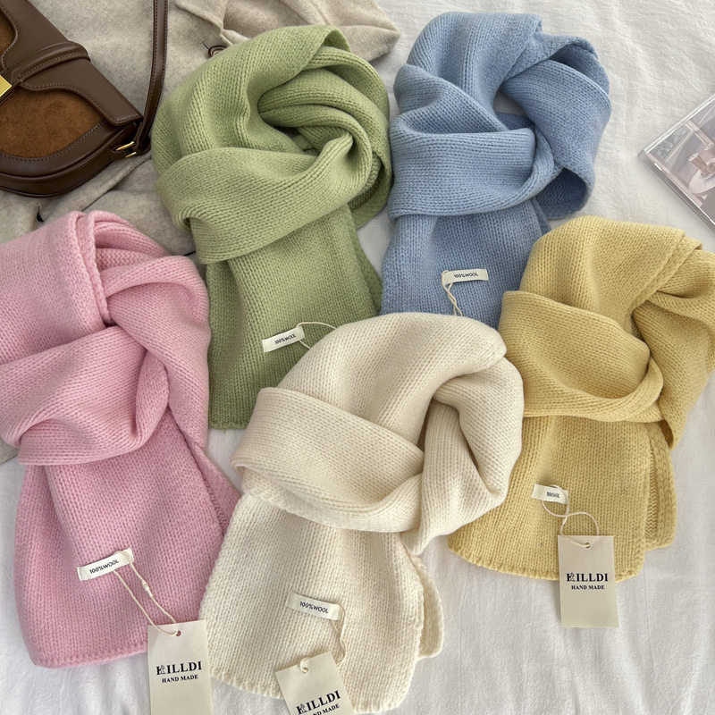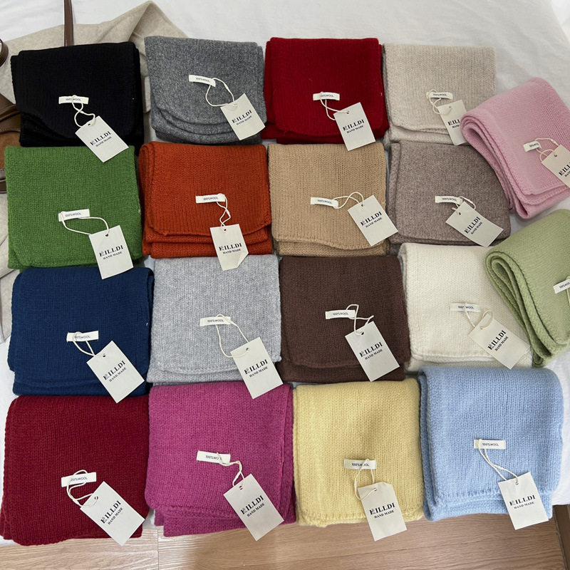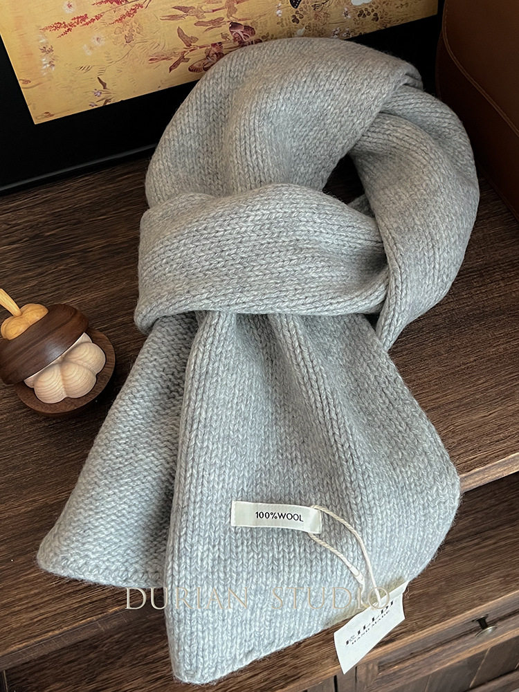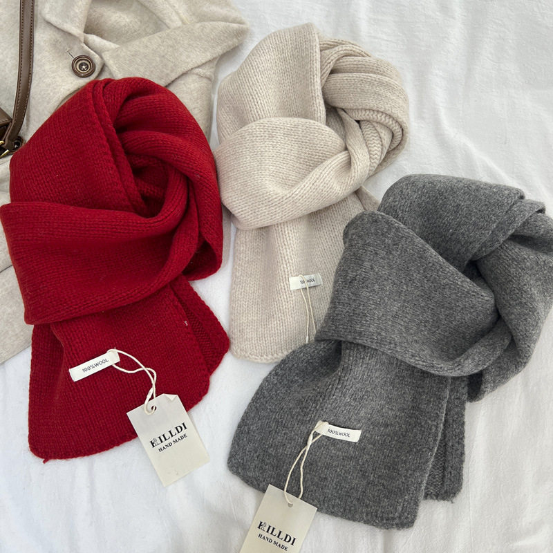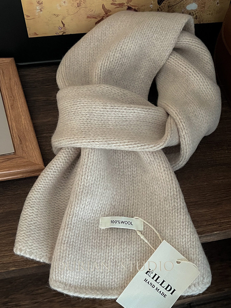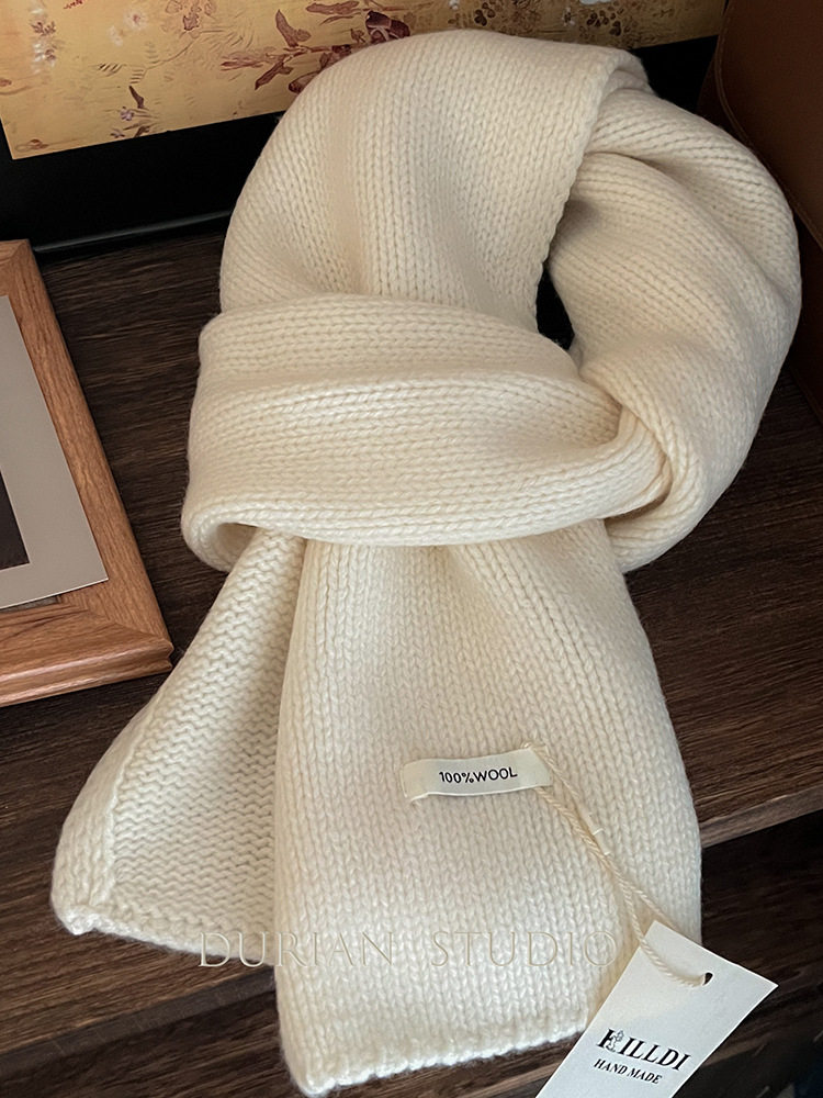 White Milk Color 100% Pure Wool Scarf 2024 New Pure Color Versatile Men and Women Winter Warm Knitted Scarf