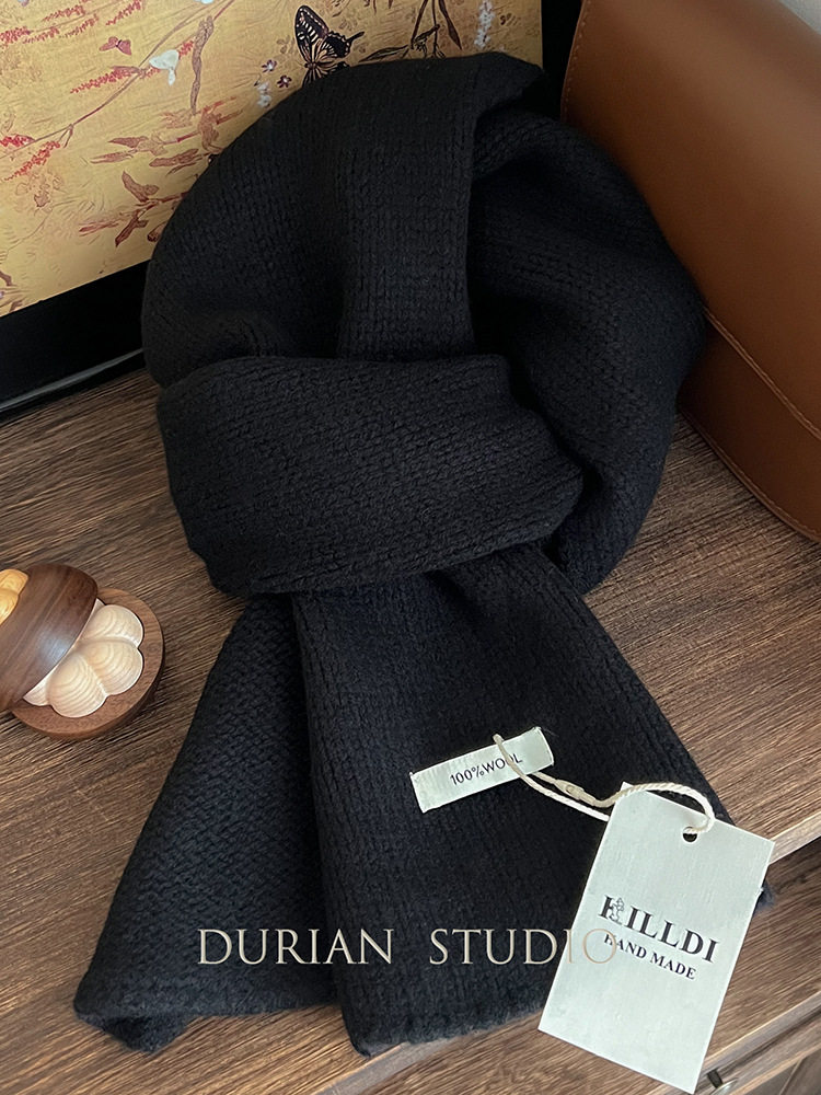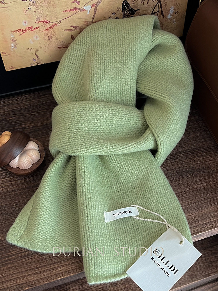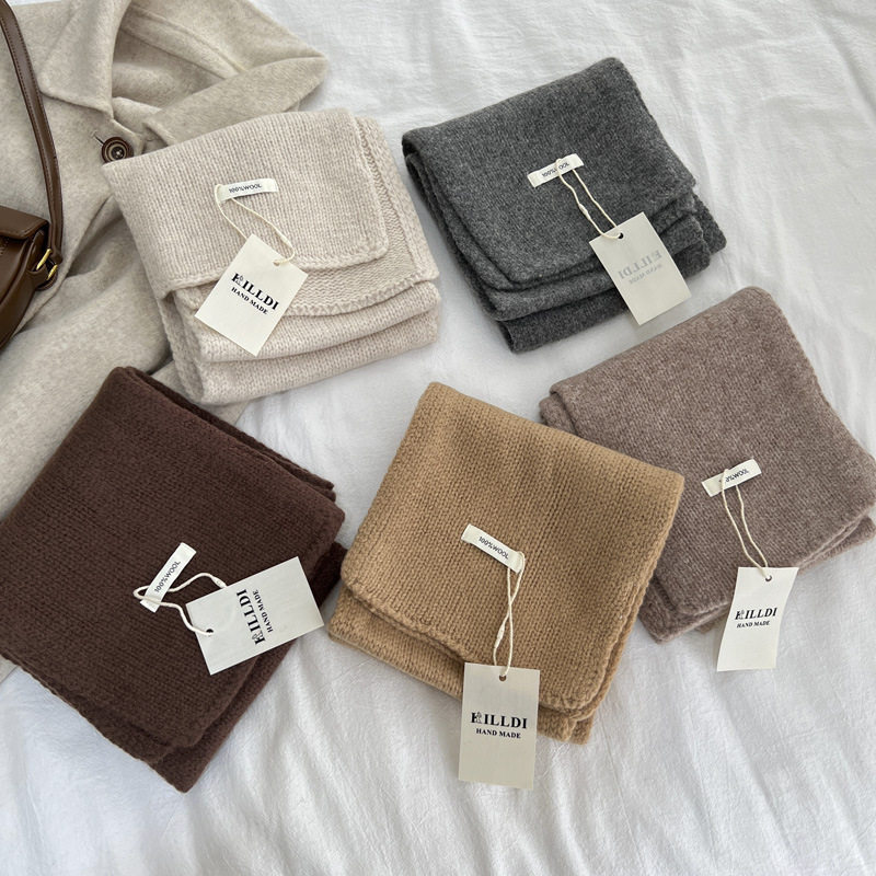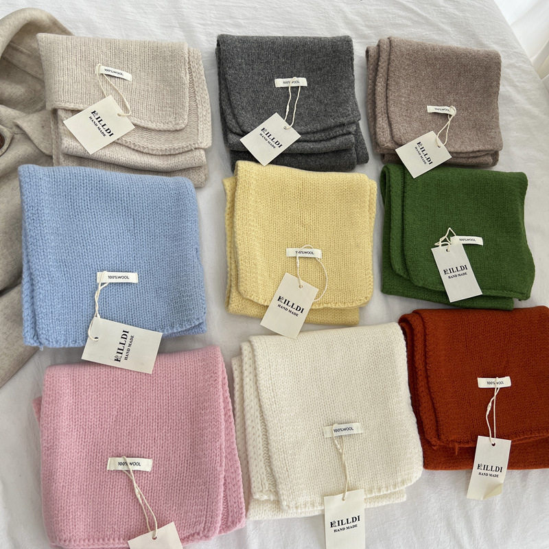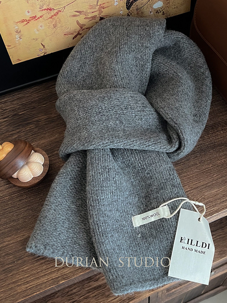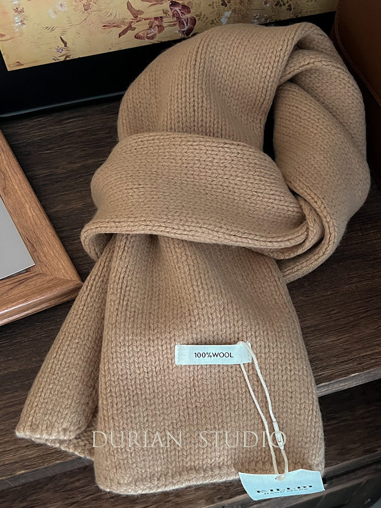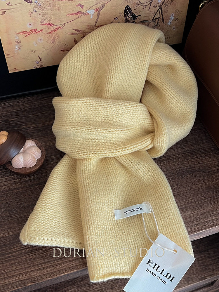 White Milk Color 100% Pure Wool Scarf 2024 New Pure Color Versatile Men and Women Winter Warm Knitted Scarf