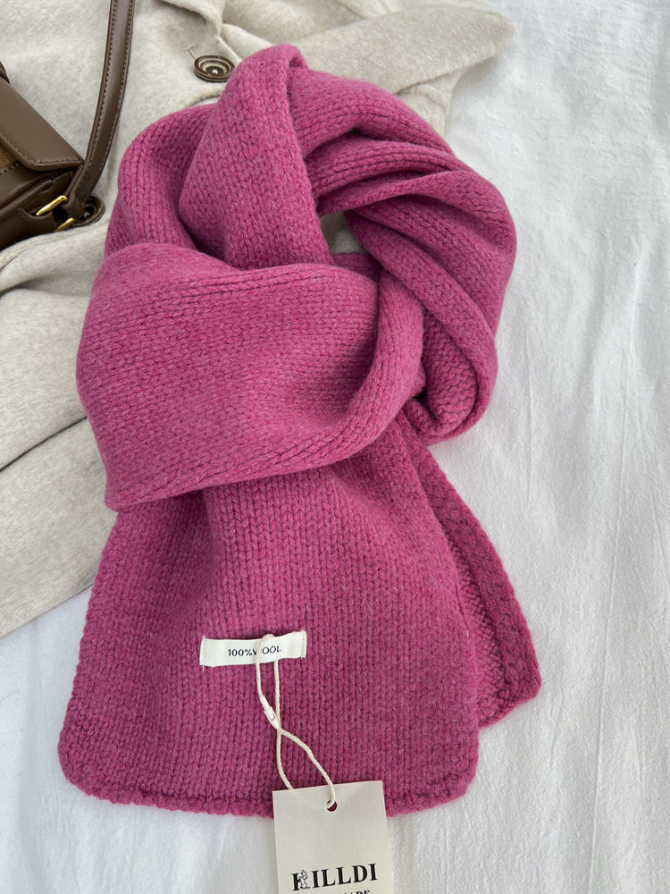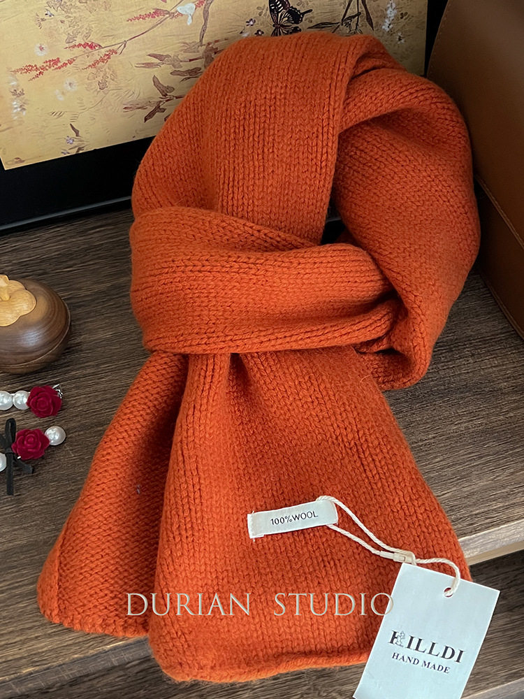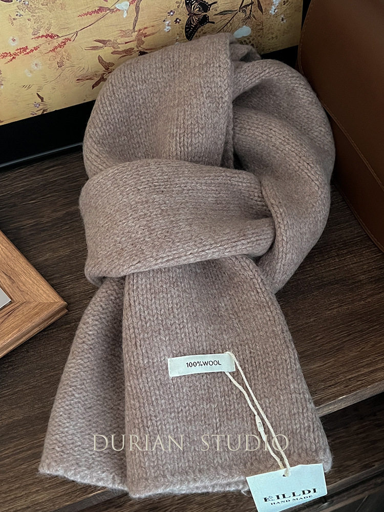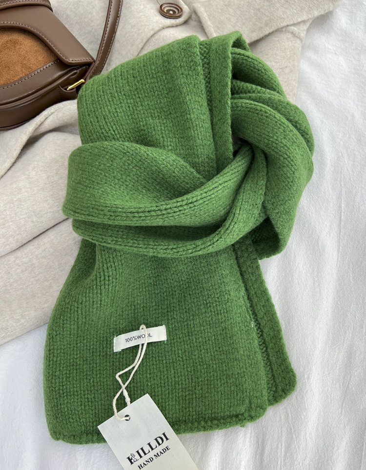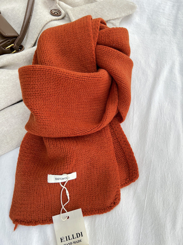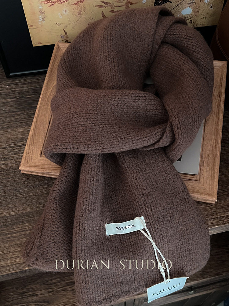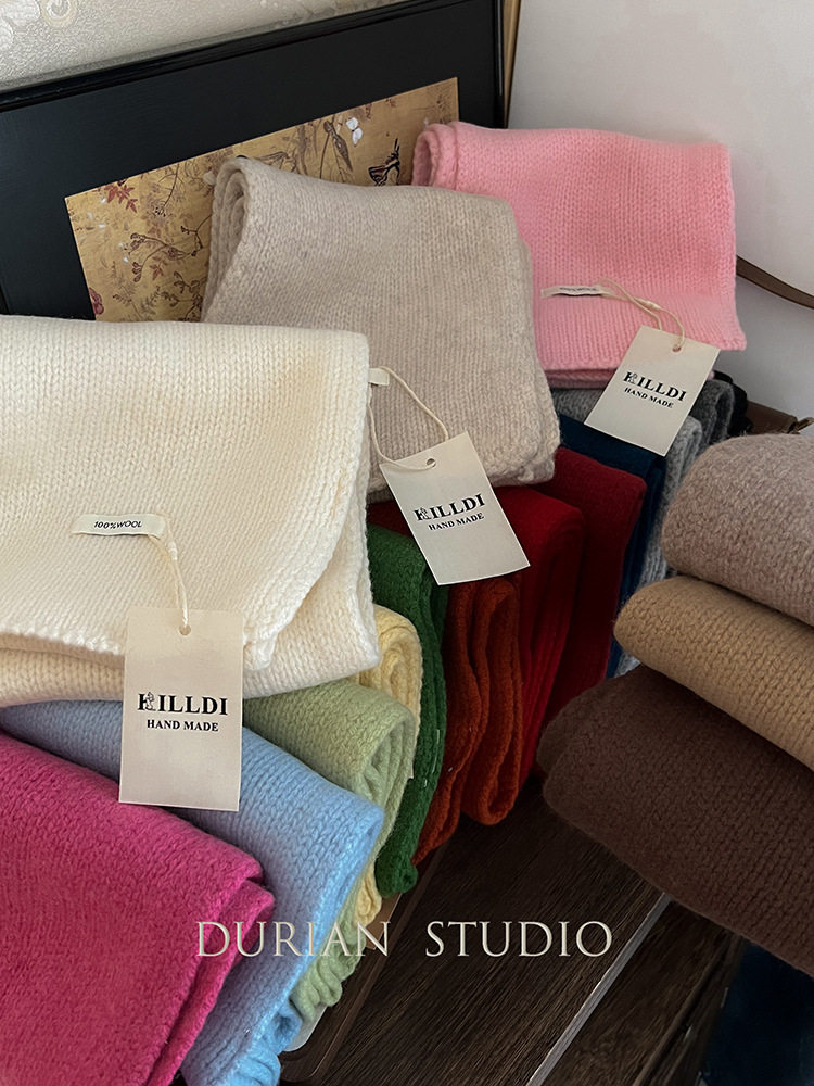 White Milk Color 100% Pure Wool Scarf 2024 New Pure Color Versatile Men and Women Winter Warm Knitted Scarf