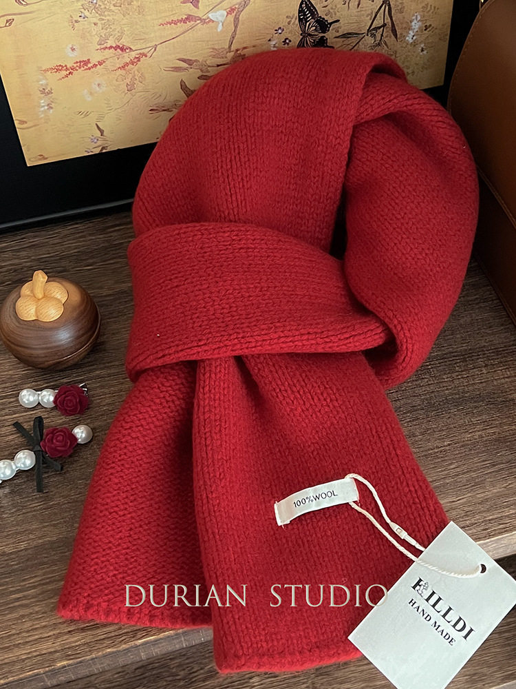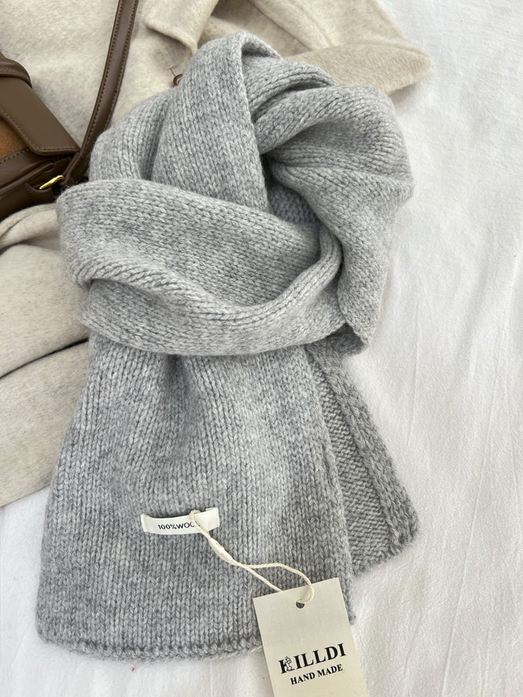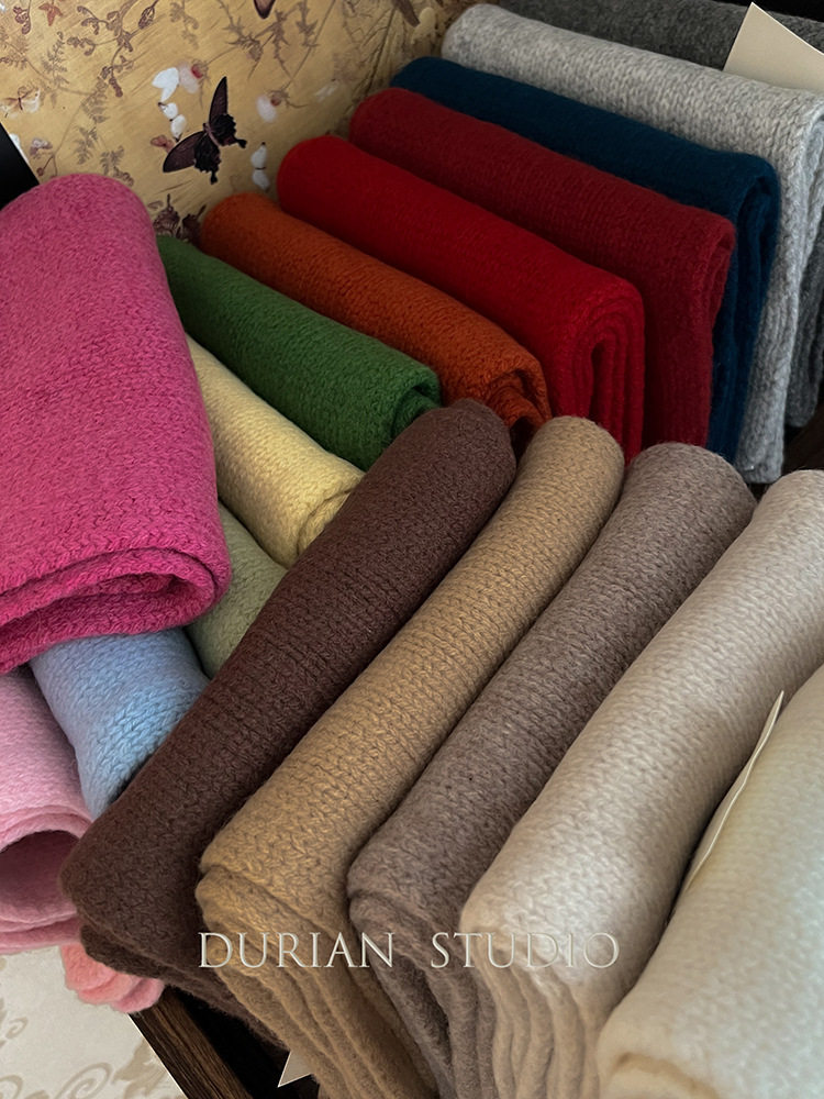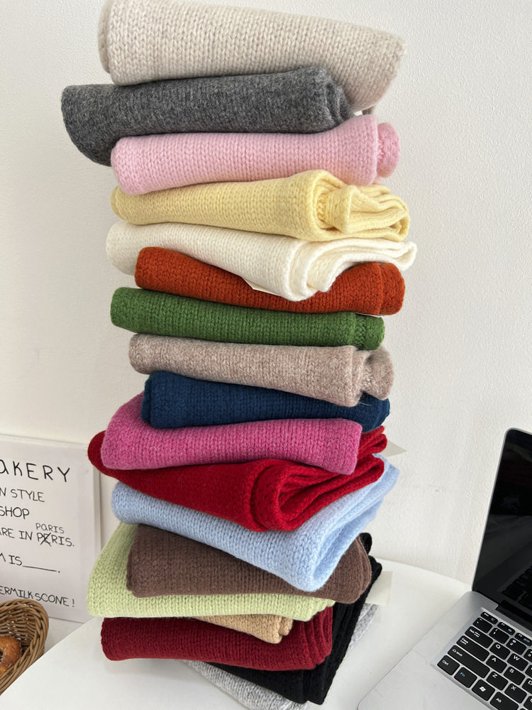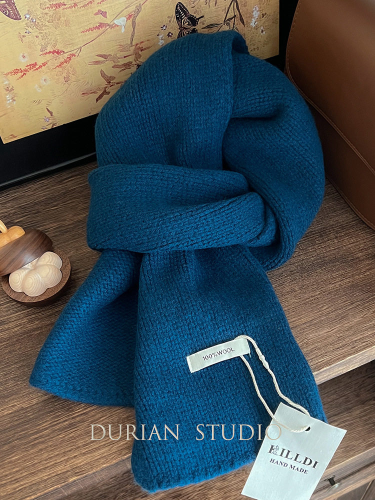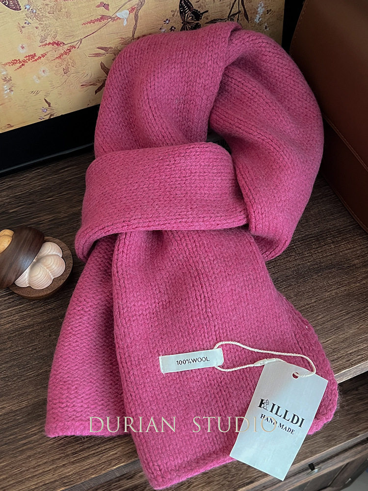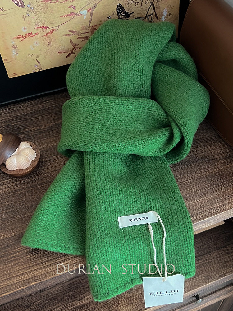 White Milk Color 100% Pure Wool Scarf 2024 New Pure Color Versatile Men and Women Winter Warm Knitted Scarf