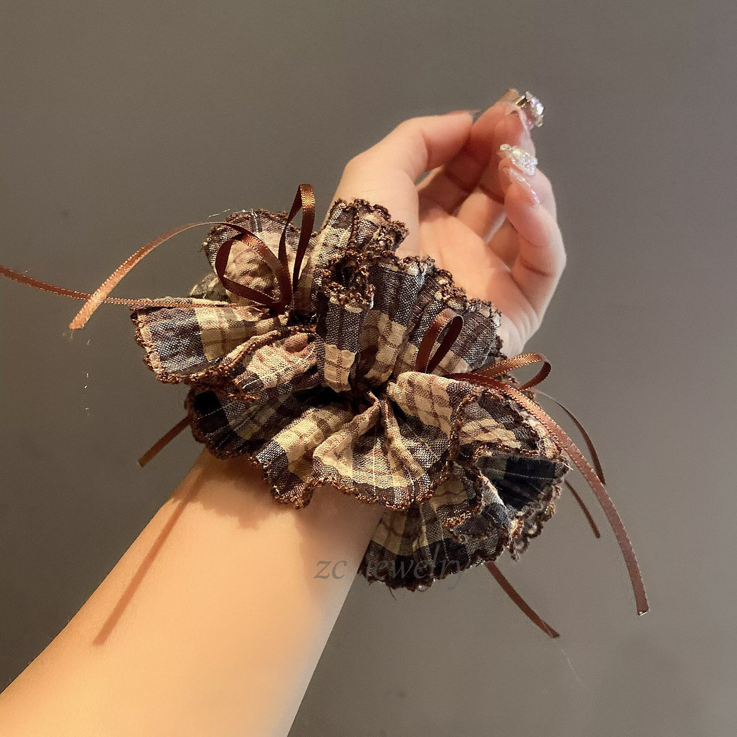 Lazy Style Maillard Color Plaid Bow Hair Tie High-End Bun Low Ponytail Hair Rope