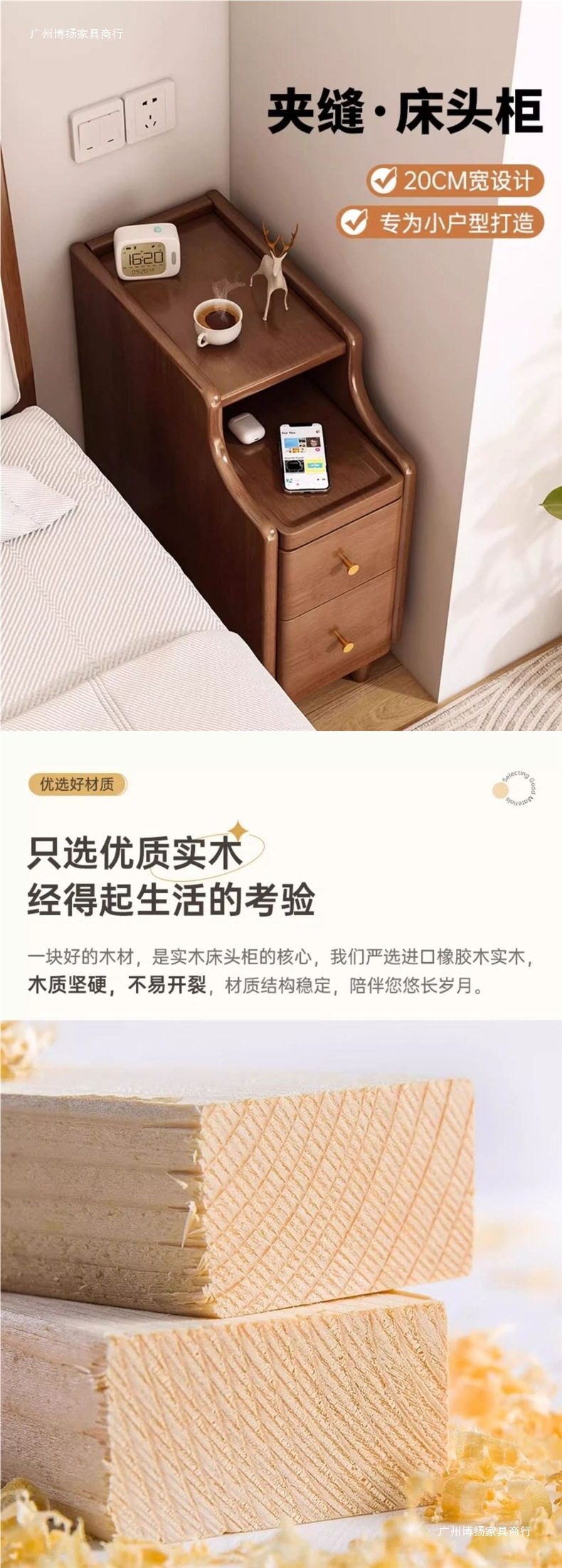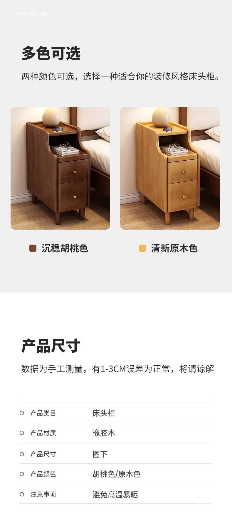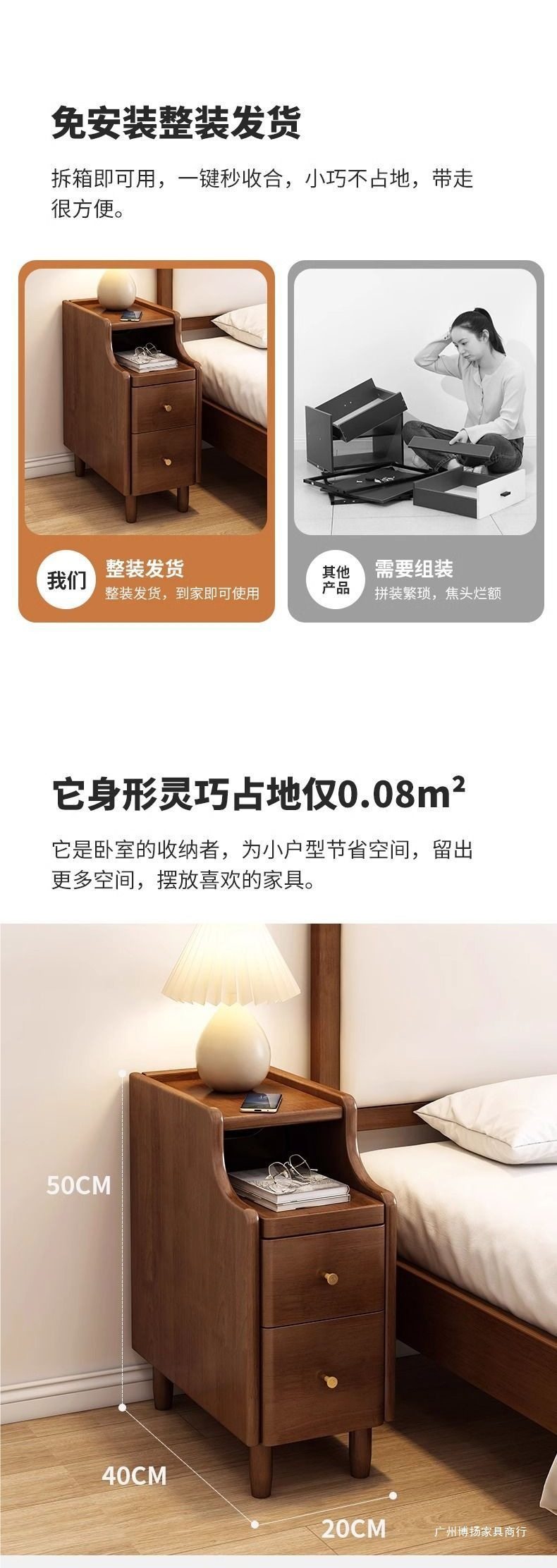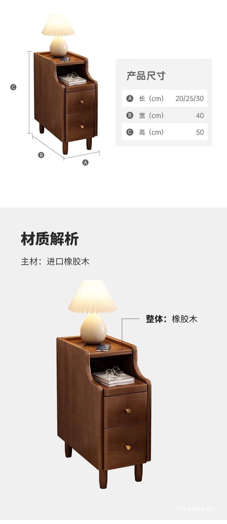 All Solid Wood Bedside Table Mini Small Bedroom Extremely Narrow Bedside Cabinet Ultra Narrow Gap Storage Simple Modern Storage Rack