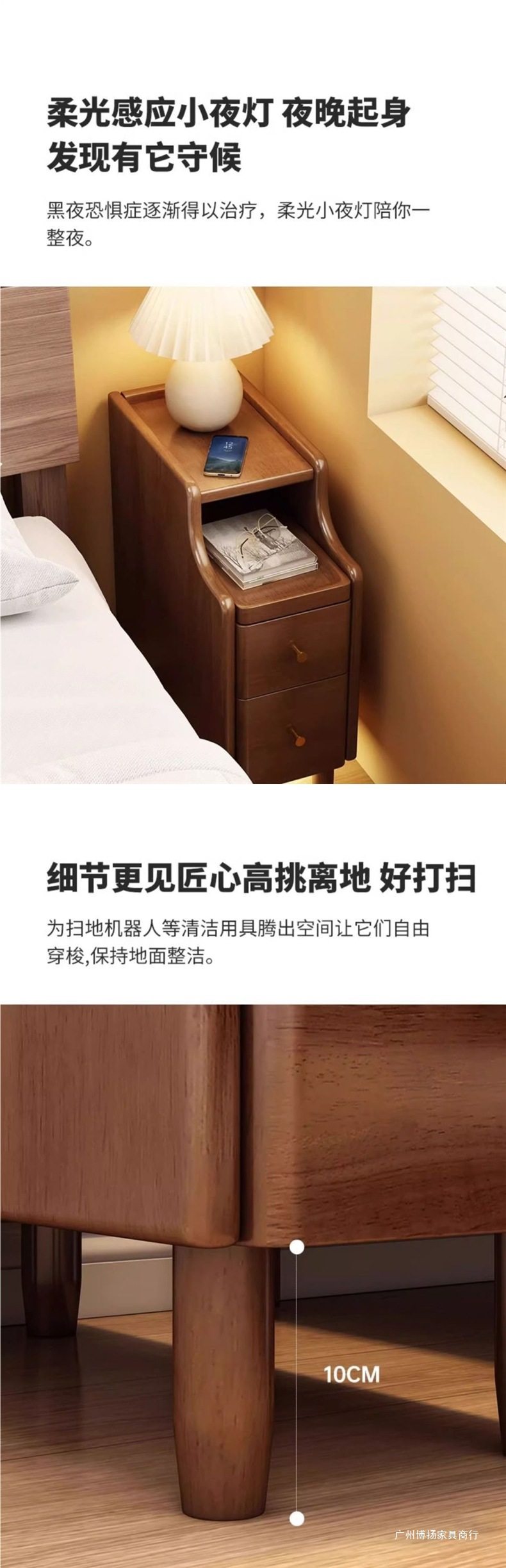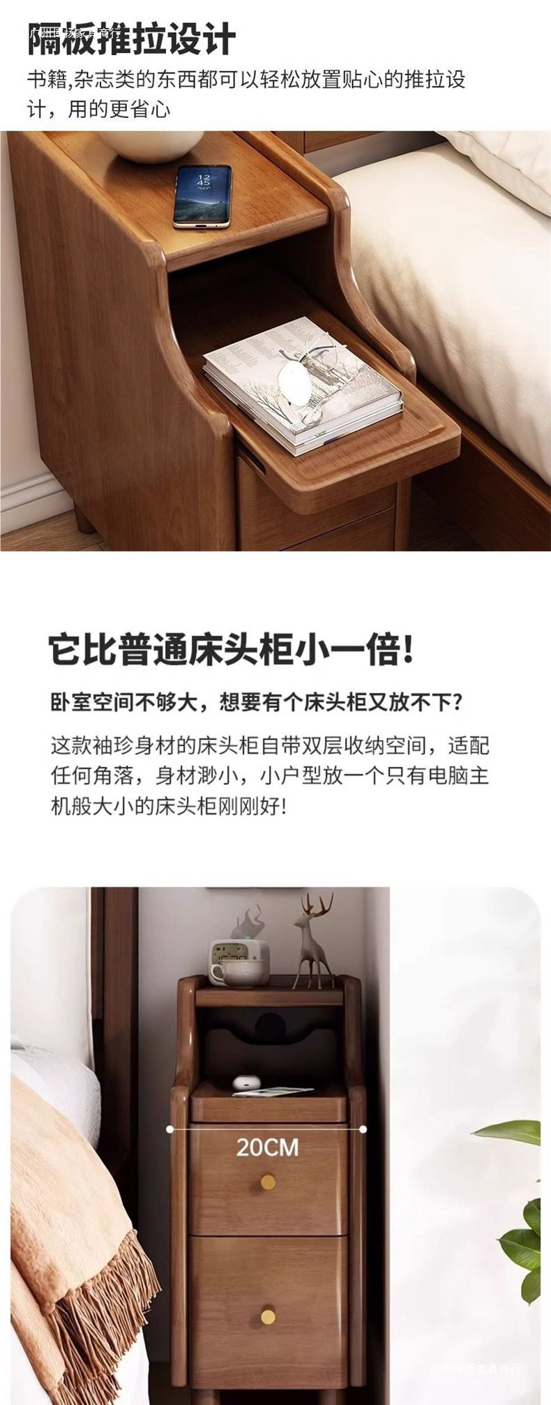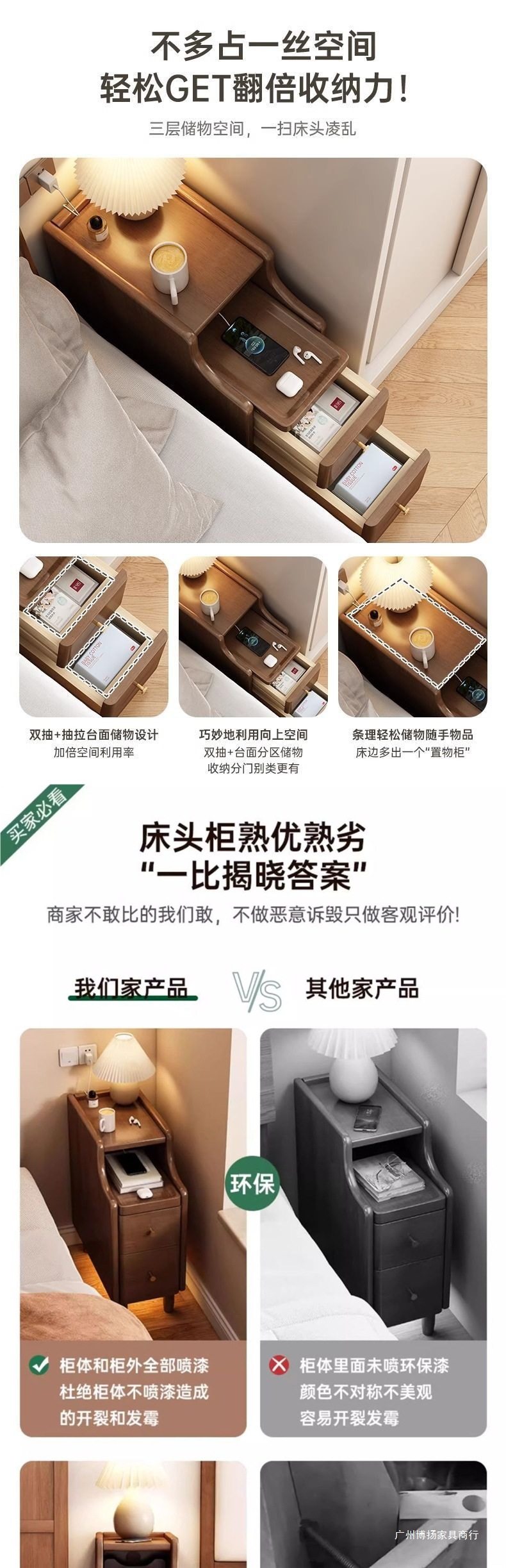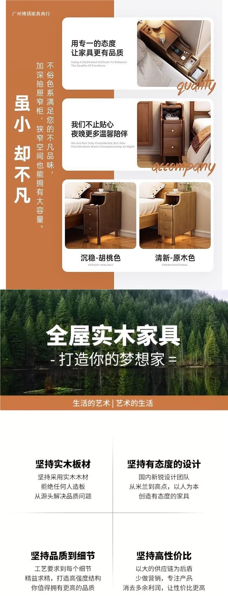 All Solid Wood Bedside Table Mini Small Bedroom Extremely Narrow Bedside Cabinet Ultra Narrow Gap Storage Simple Modern Storage Rack
