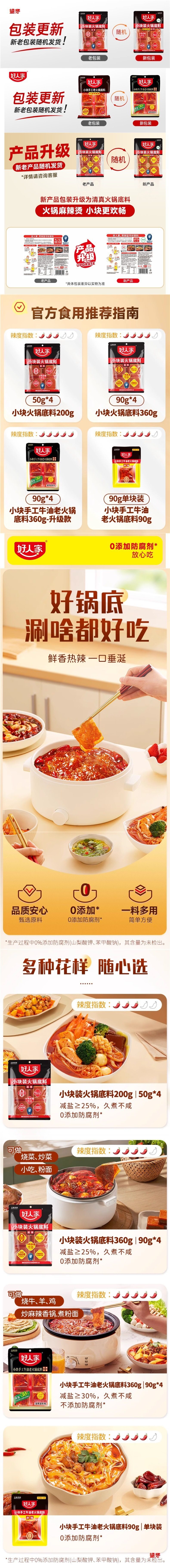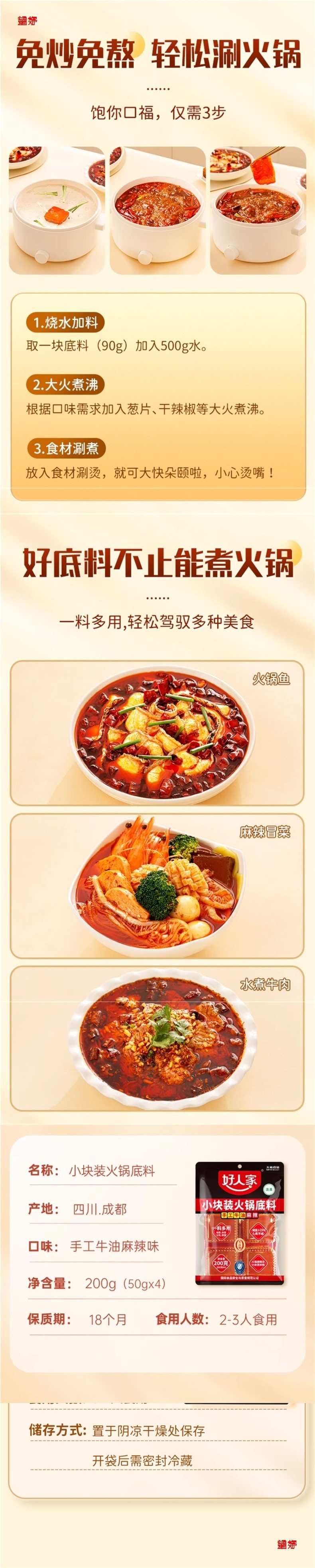 Haorenjia Butter Hot Pot Base Catering Commercial Small Package for One Person Sichuan Flavor Reduced Salt Spicy Hot Pot Base