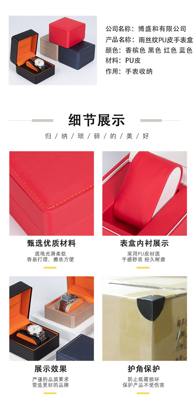 | Specifications and models | Rain silk pattern watch box-red; high quality model,Rain silk pattern watch box-gold; high quality model,Rain silk pattern watch box-blue; high quality model,Rain silk pattern watch box-black; high quality model |