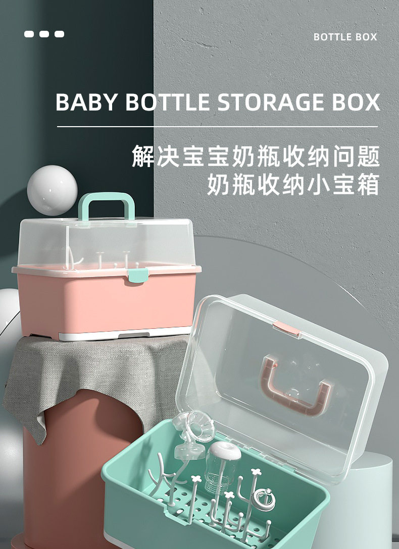Baby Bottle Storage Box Baby Pacifier Milk Brush Storage Box Children's Bottle Drain Rack Dustproof Tableware Storage Box