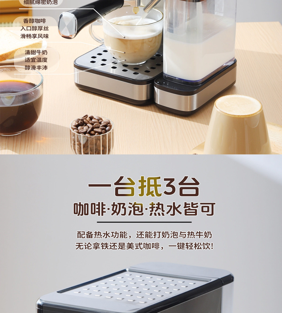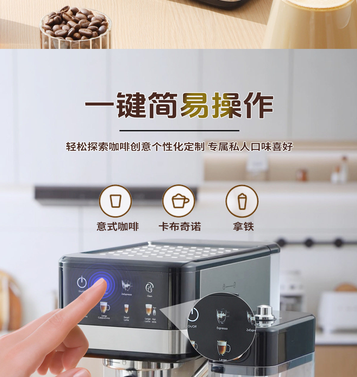 Stainless Steel Semi-Automatic Espresso Machine with Milk Tank Office Small Pump Pressure American Milk Coffee Machine Factory Cross-Border