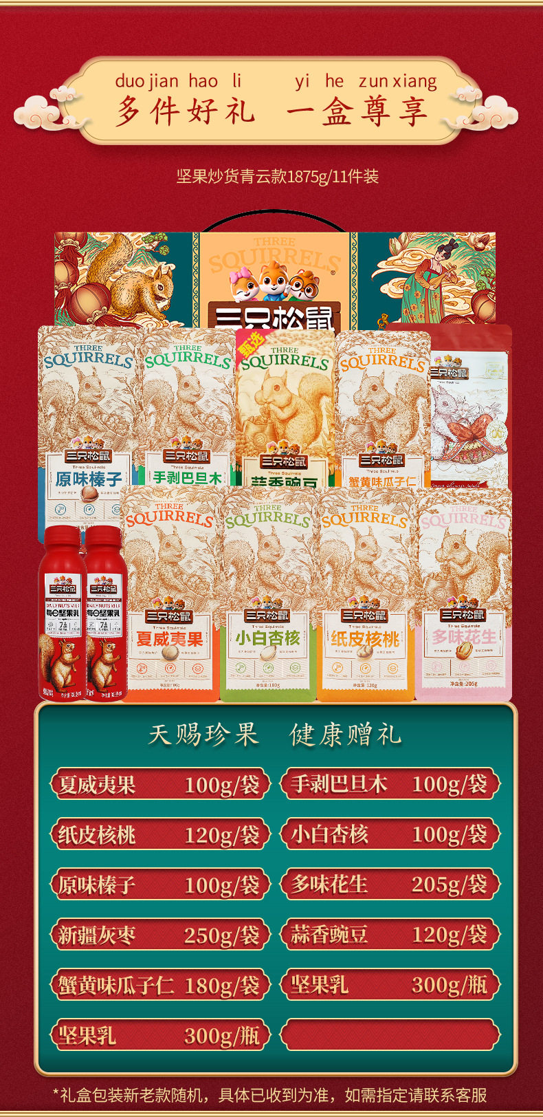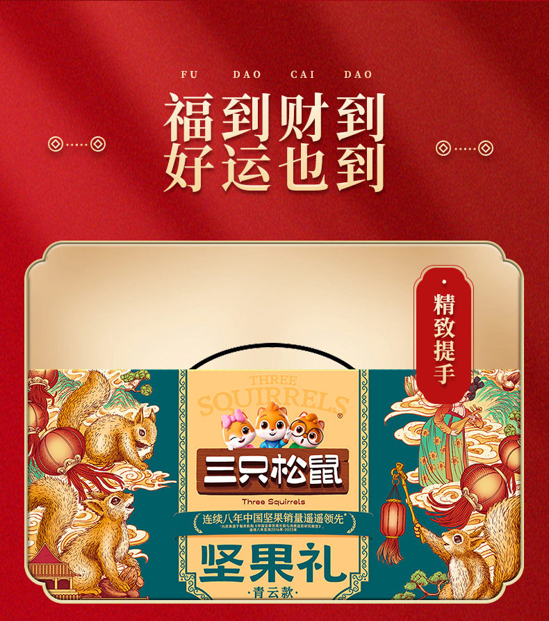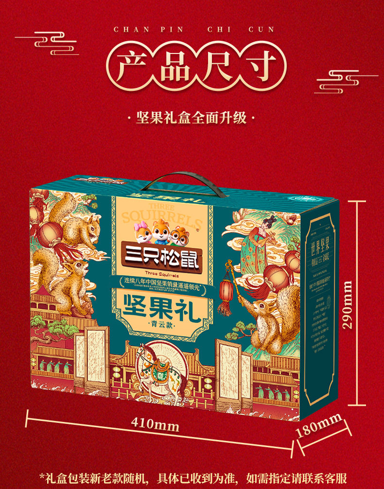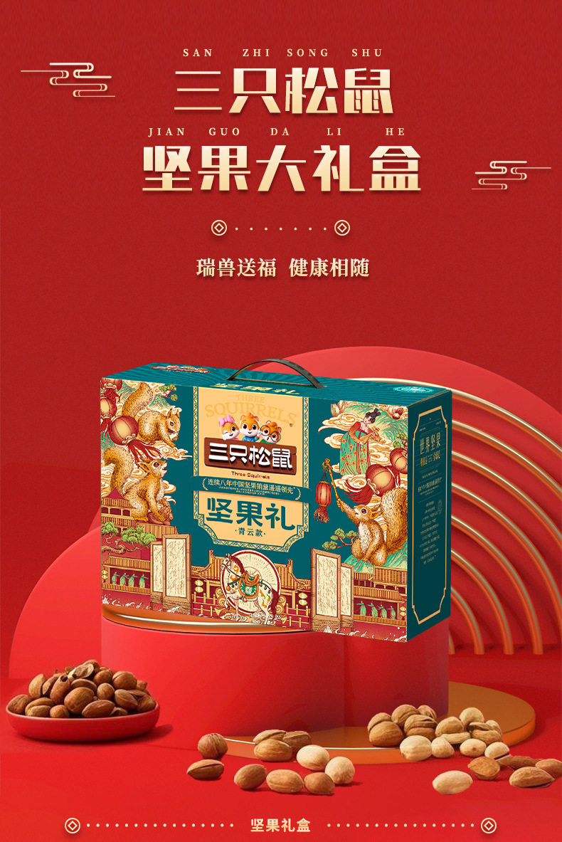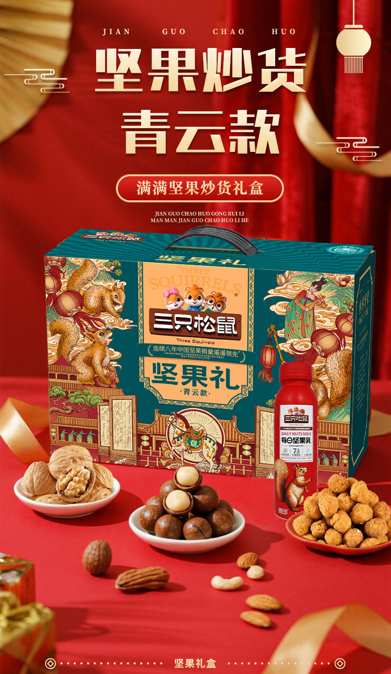 Three Squirrels Nut Gift Box Qingyun Style 1875g Mixed Nuts and Dried Fruits Gift Pack New Year's Gift Batch Benefits