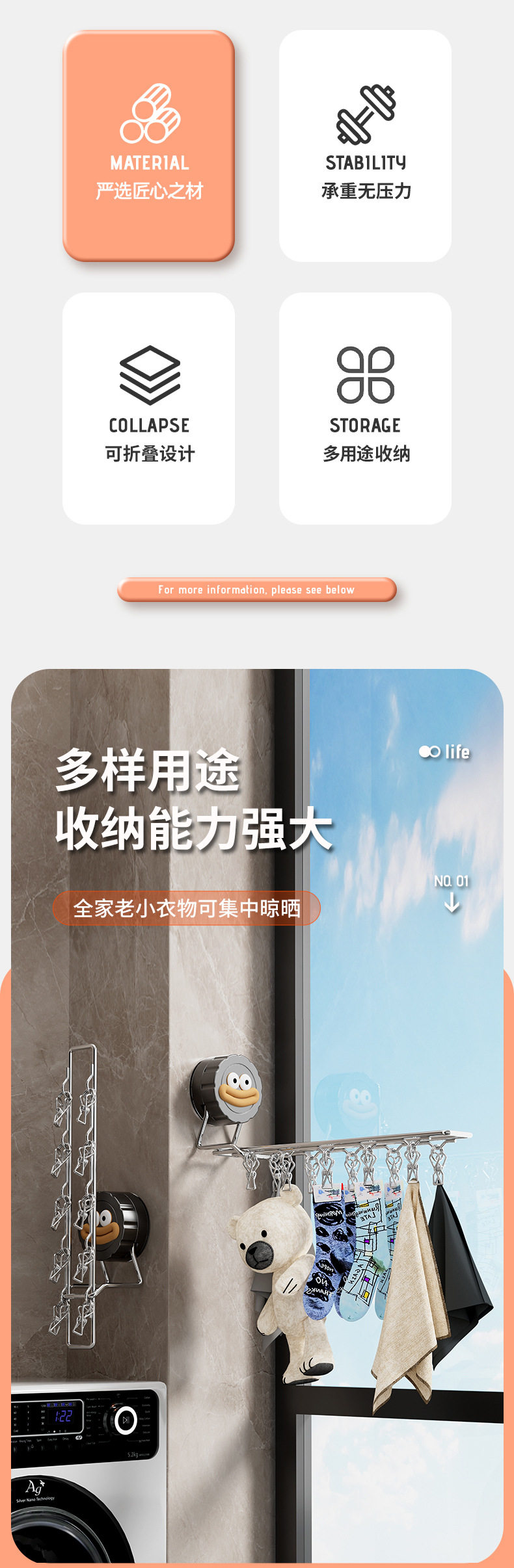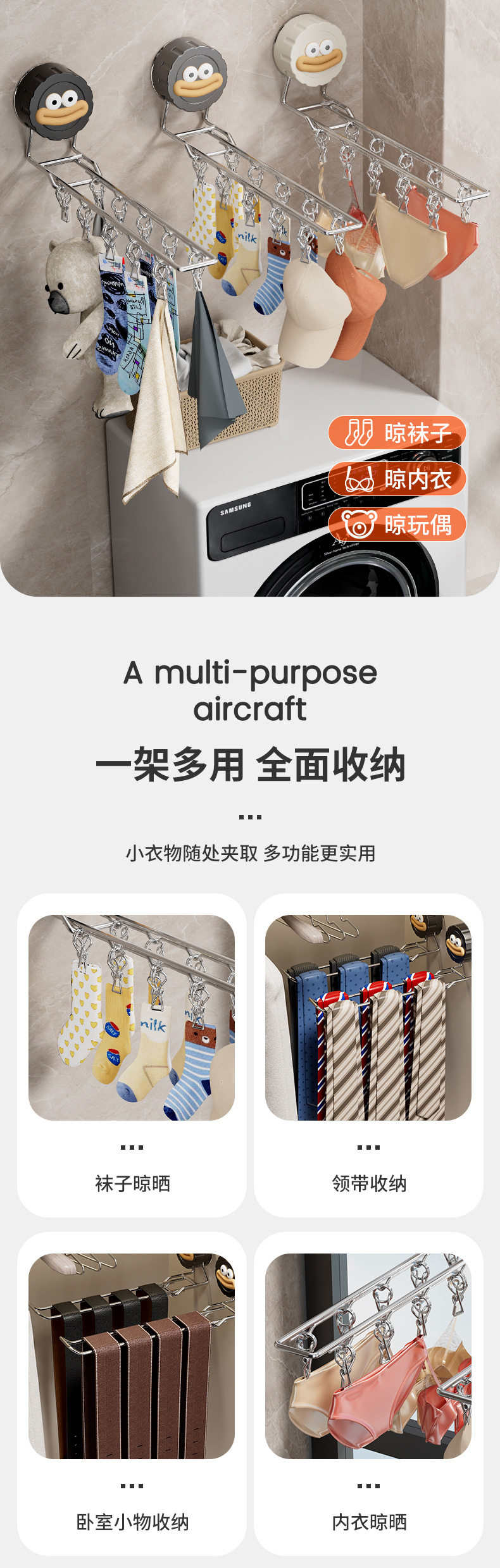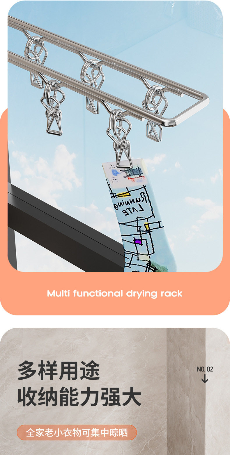 | Cross-border supply | Sock drying rack with clip for home traceless stainless steel windproof balcony underwear drying rack multifunctional clothes drying rack |