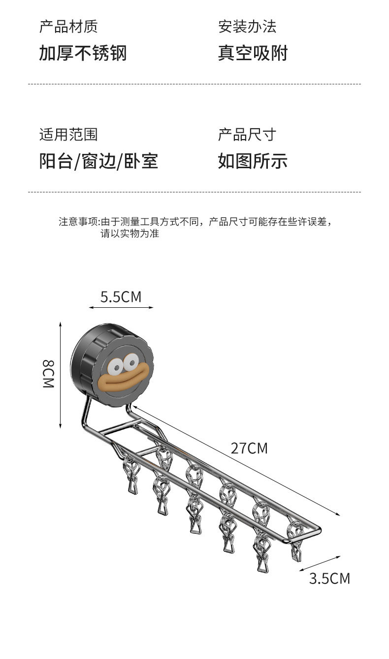 | Color | Da 27cm suction cup clothes hanger (big mouth black),Da 27cm suction cup clothes hanger (milk white),Da 27cm suction cup 10 thread clip sock rack (big mouth black),Da 27cm suction cup 10 thread clip sock rack (milk white) |