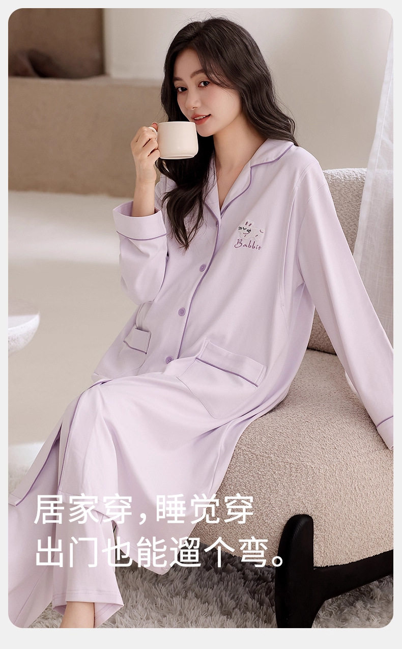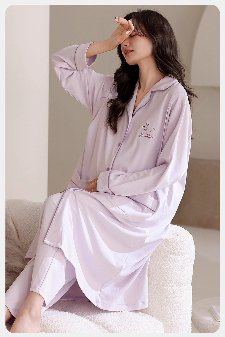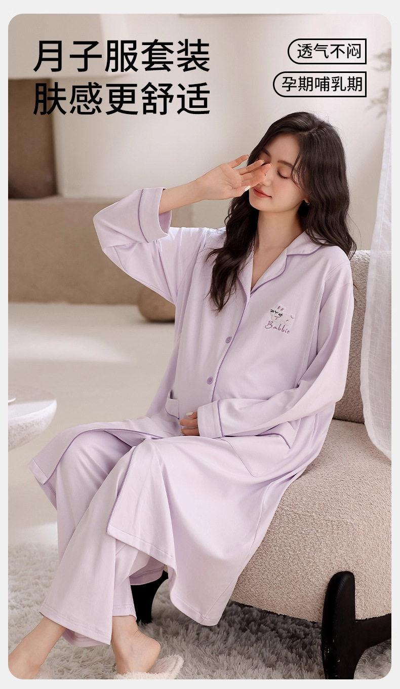 Jingqi Postpartum Clothing Pure Cotton Postpartum Maternity Pajamas Breastfeeding Autumn and Winter Maternity Skirt Pure Cotton Sweat-Absorbent Hospital Home Clothes