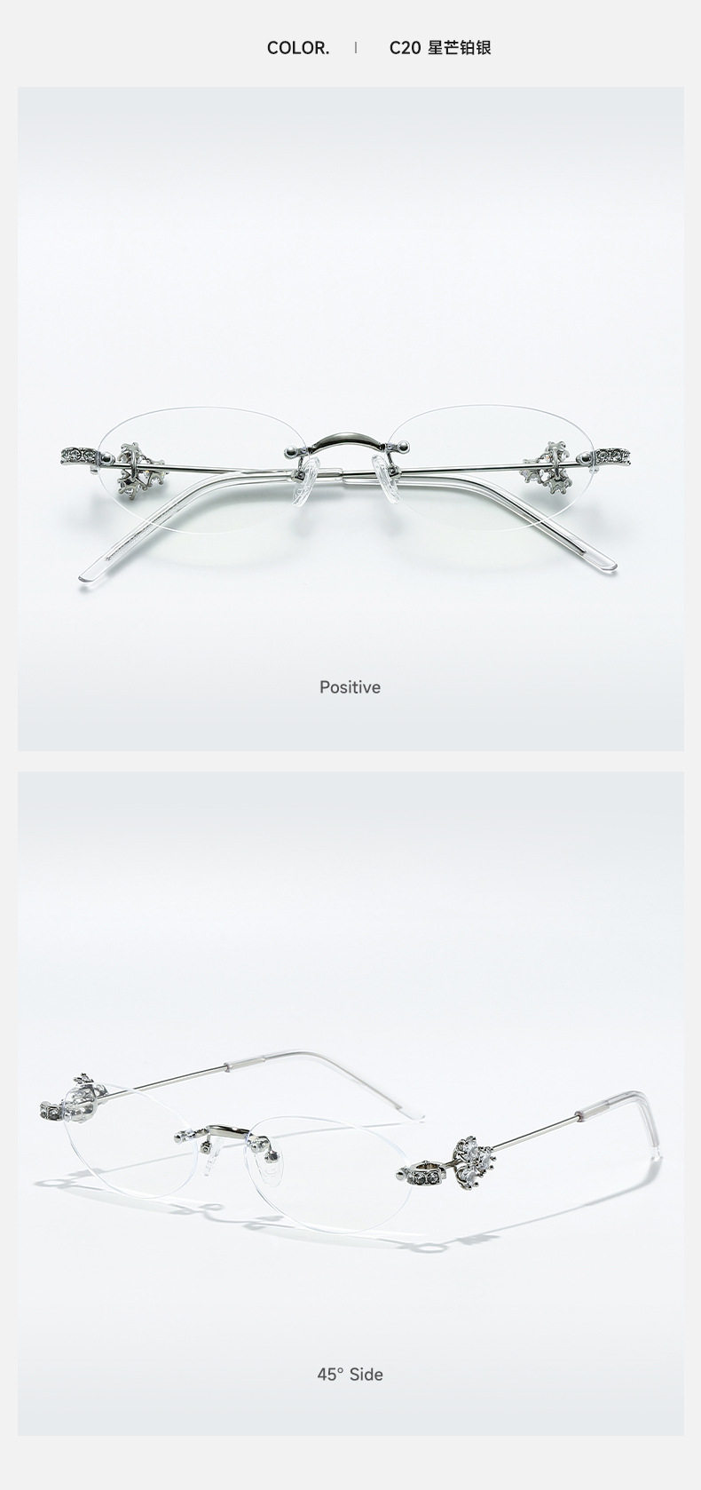 Jennie's Same Gm Frameless Oval Frame Orora Korean Glasses for Women Without Makeup Artifact Niche Frame 0803