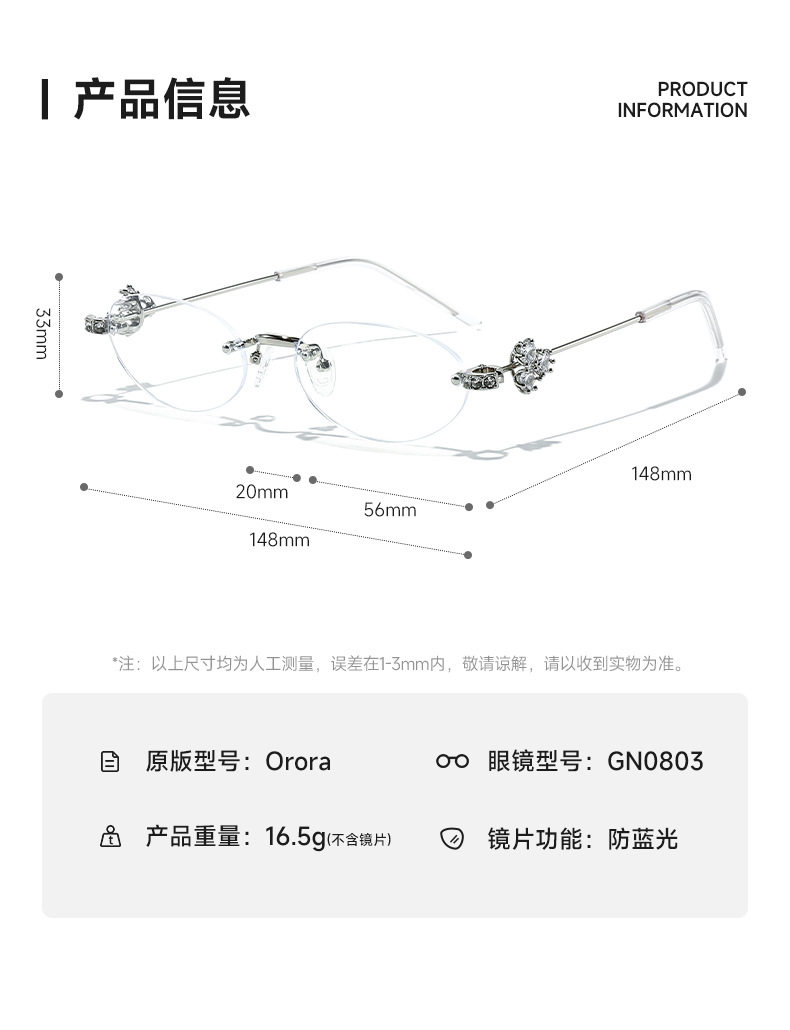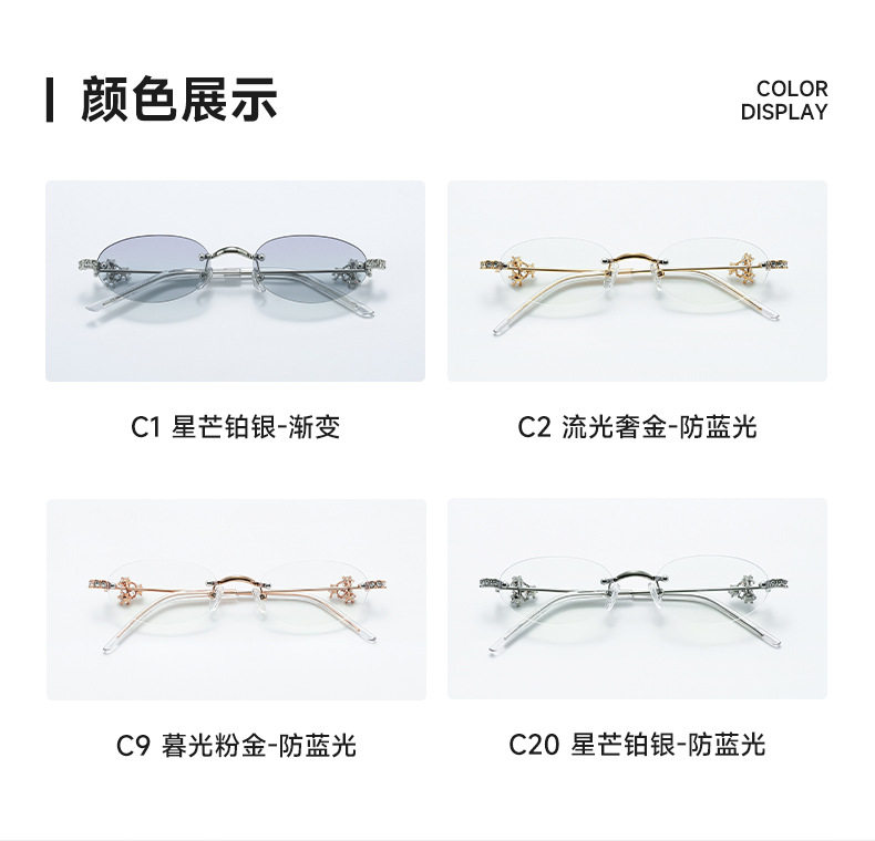 | Frame color | Orora streamer luxury gold,Orora twilight pink gold,Orora star platinum silver,Orora star platinum silver-gradient,Please contact customer service for prescription,Exclusive protection rights/traceless delivery,Duqiao plate top supplier,Baichuan's unique value-added services |