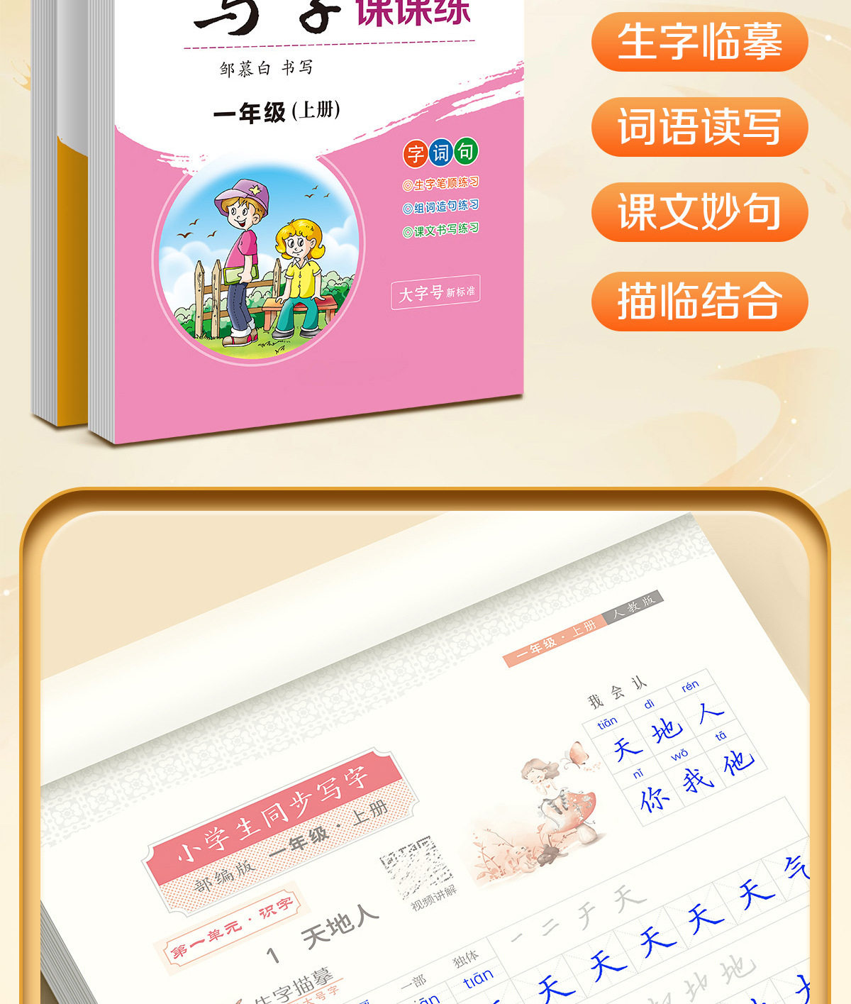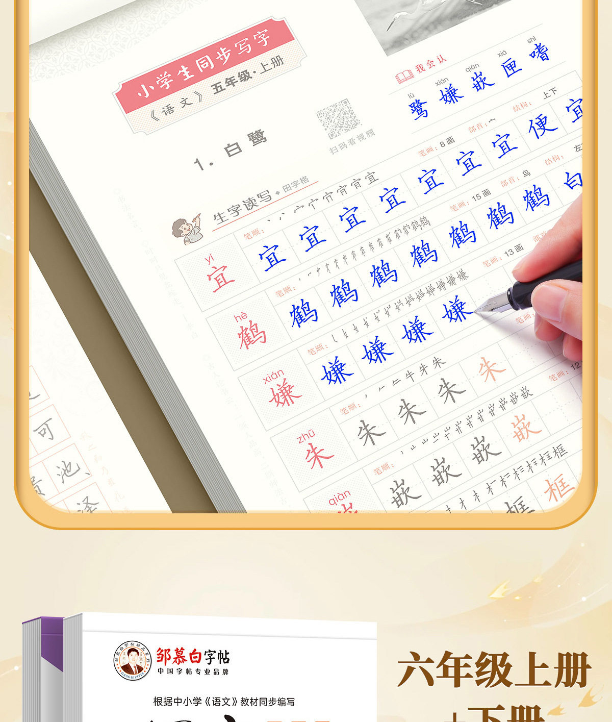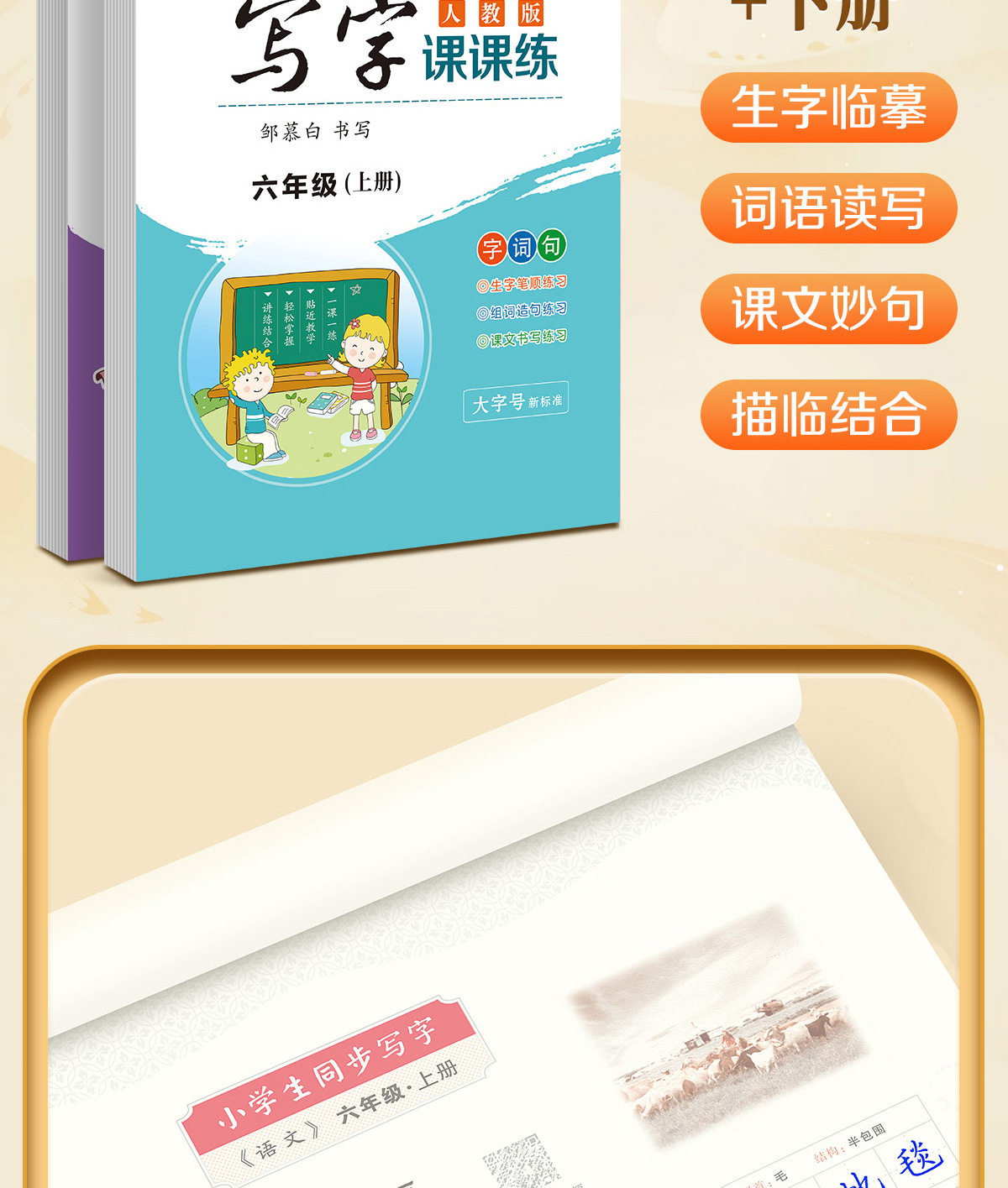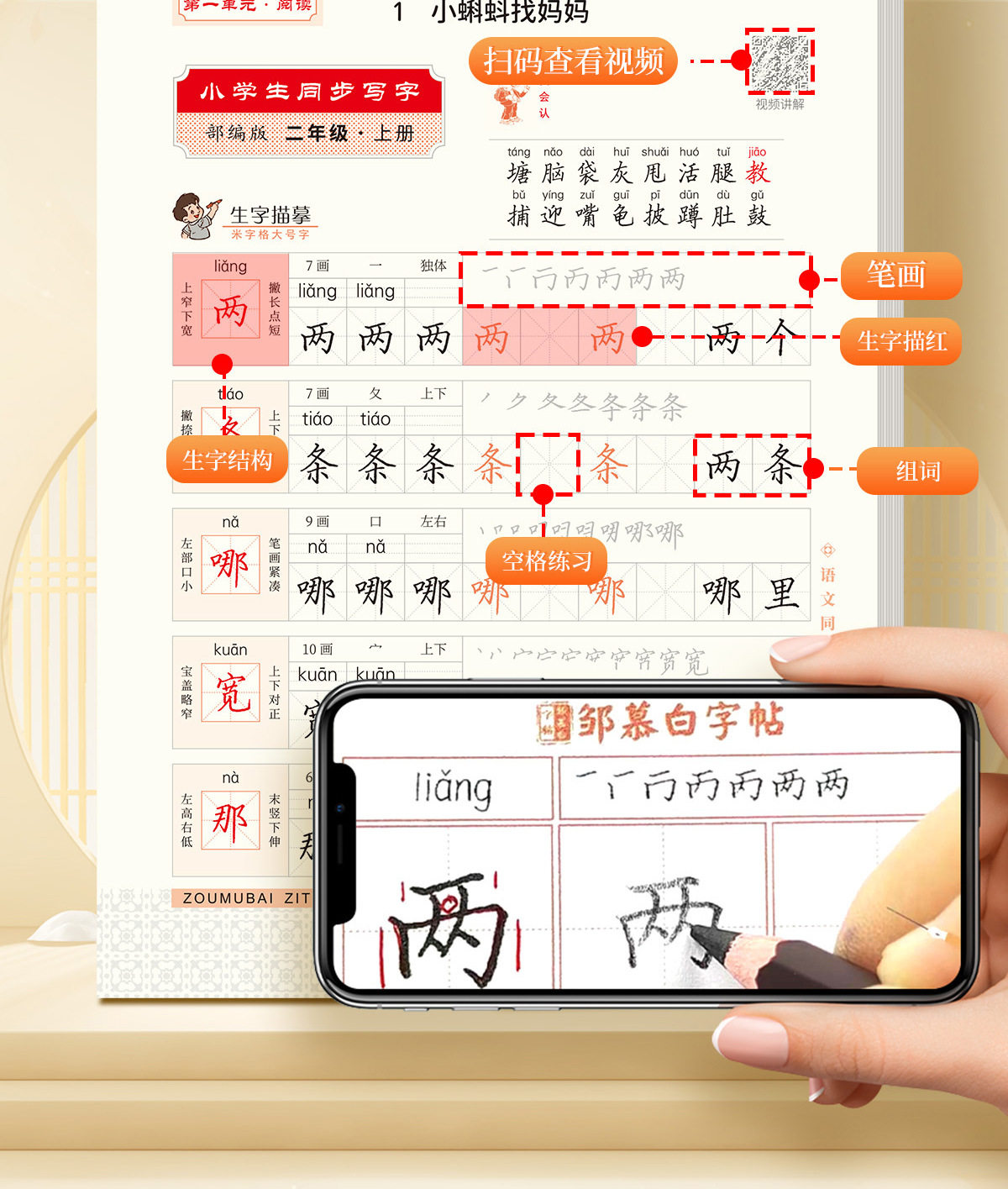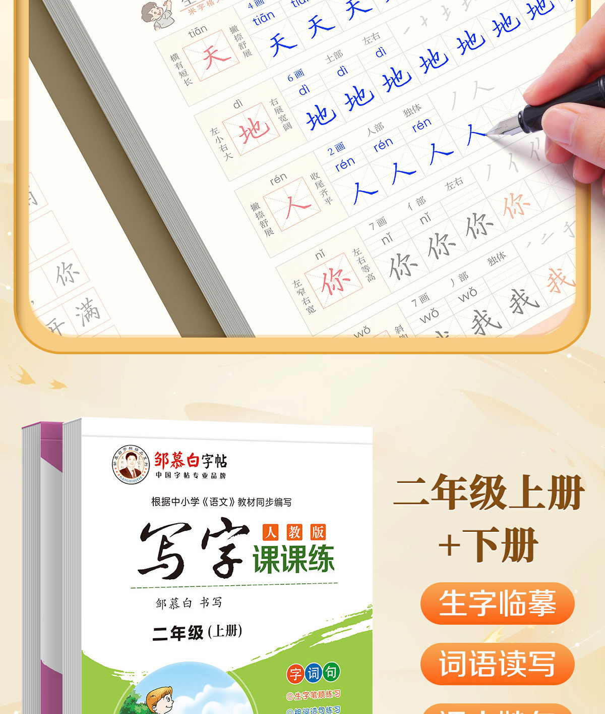 Zou Mubai People's Education Edition 1-6Th Grade Students' Chinese Copybook Writing Class Practice Textbook Synchronized Practice Copybook Regular Script