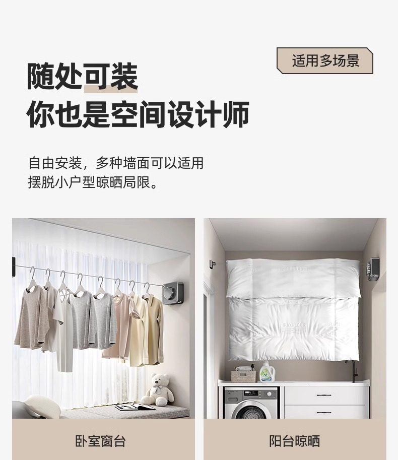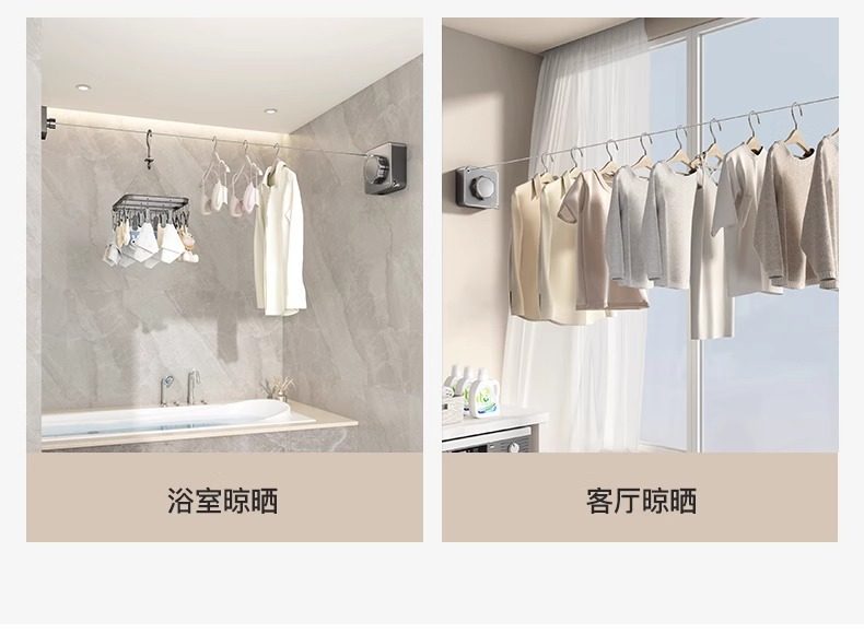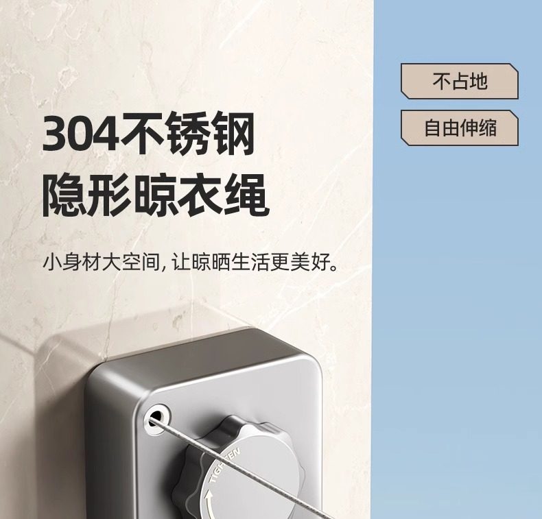 Invisible Clothesline for Drying Clothes, Indoor Punch-Free Hotel Bathroom Invisible Retractable Balcony Wire Rope Rack