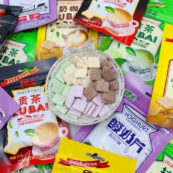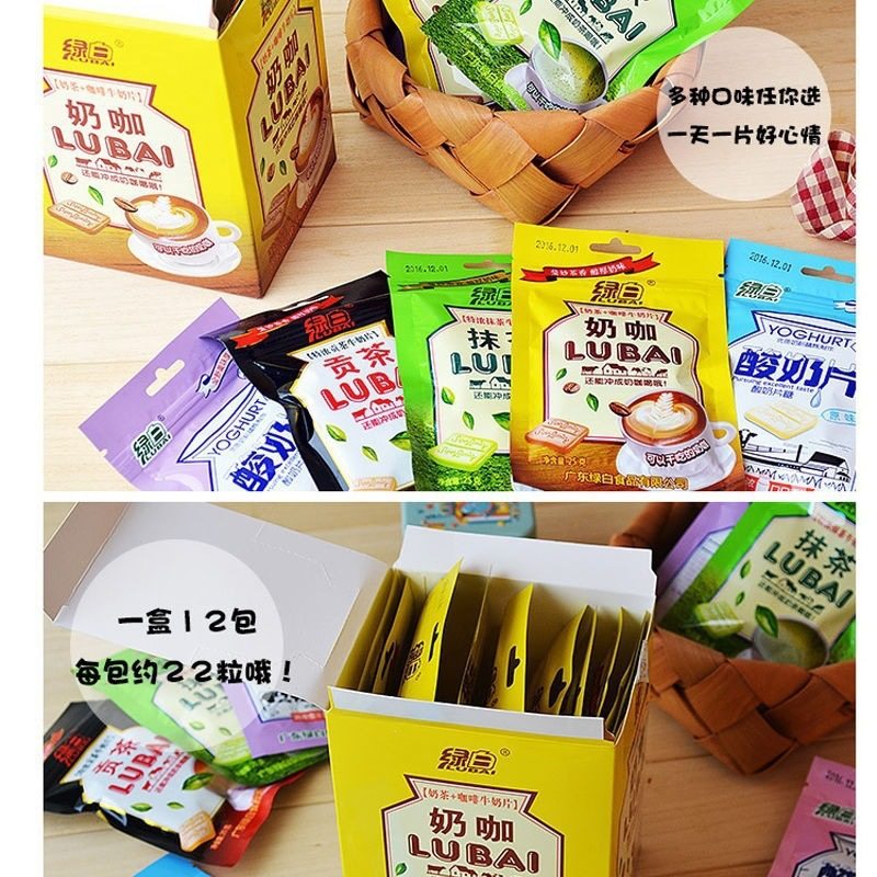 Green and White Matcha Bagged Milk Candy Dry Milk Slices Cheese Milk Shell Milk Slices Casual Kidsren's Snack Candy 22g Factory