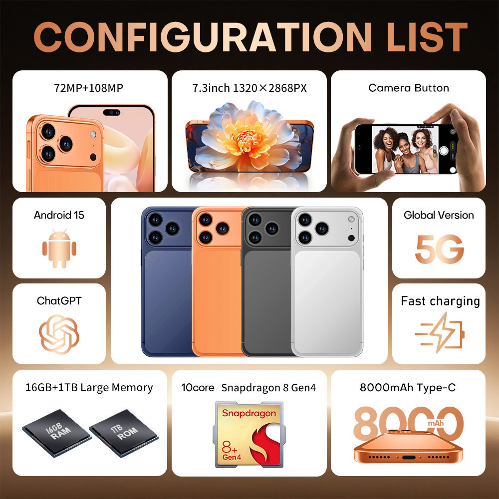 Cross-Border Mobile Phone I17Pro Max Real 4g Network 16+1Tb Smartphone Brand New Unopened Factory Low Price
