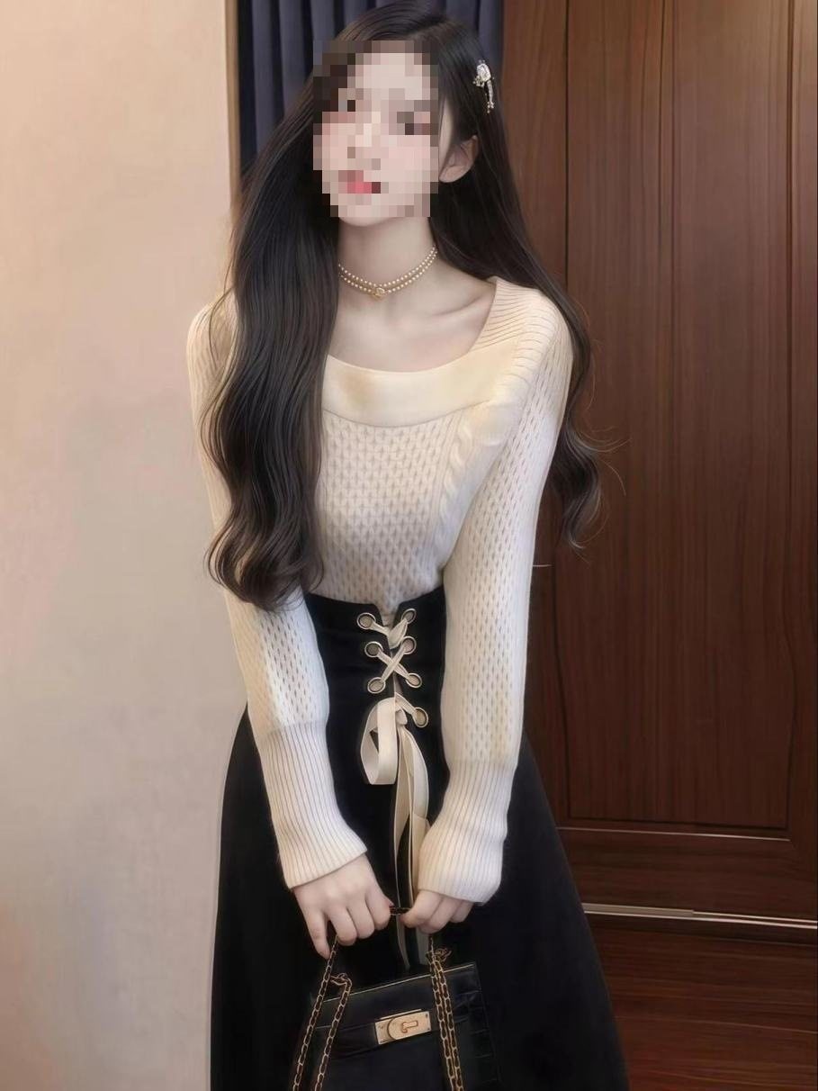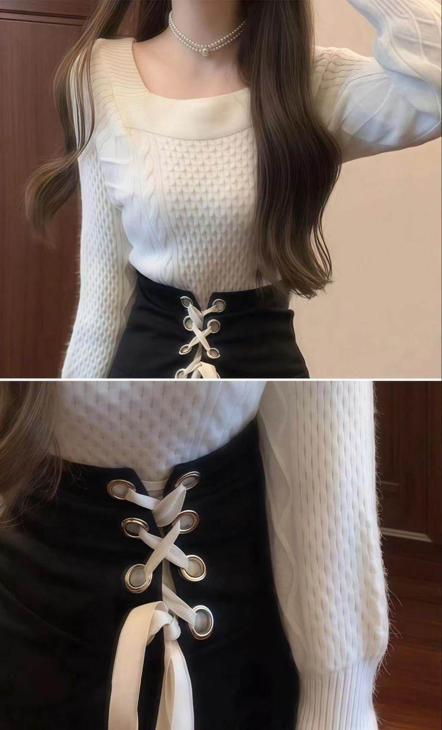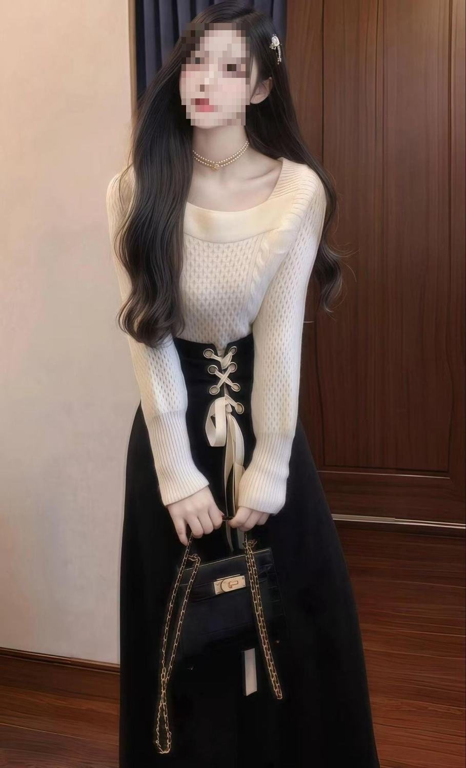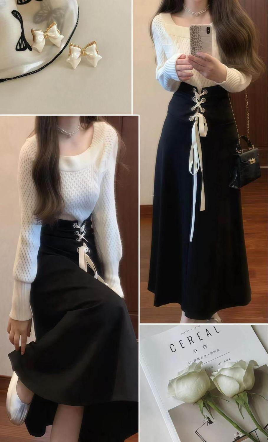 | Color | Black skirt [single piece],White sweater [single piece],Skirt + sweater [set] |