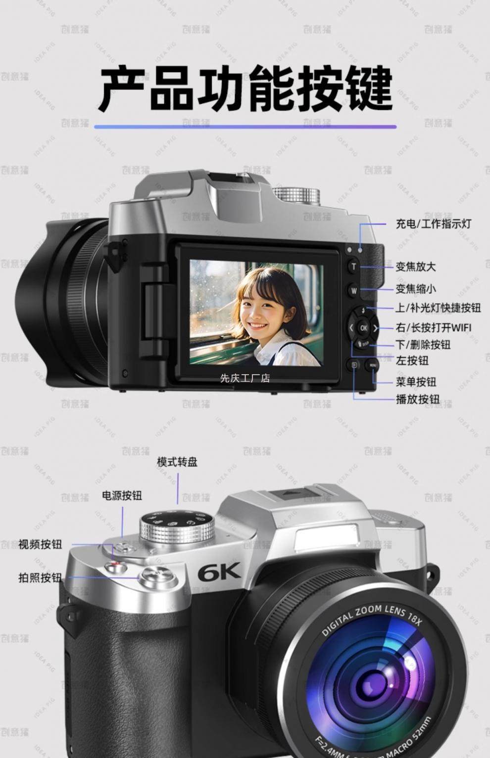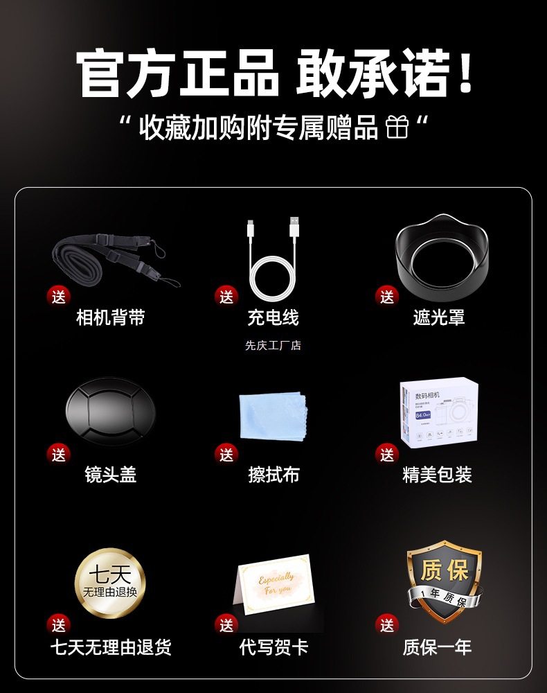 | Body color | Flagship WiFi image transmission丨3.0-inch touch screen丨Sony sensor丨Beauty filter丨Screen flip丨8400W pixels丨6K HD丨,[flagship mirrorless camera] + [special camera storage bag] - package 1 [32g memory card + card reader + camera accessories],[flagship mirrorless camera] + [special camera storage bag] - package 2 [64g memory card + card reader + camera accessories],[flagship mirrorless camera] + [special camera storage bag] - package three [128g memory card + card reader + camera accessories],[flagship mirrorless camera] + [special camera storage bag] - official standard configuration |