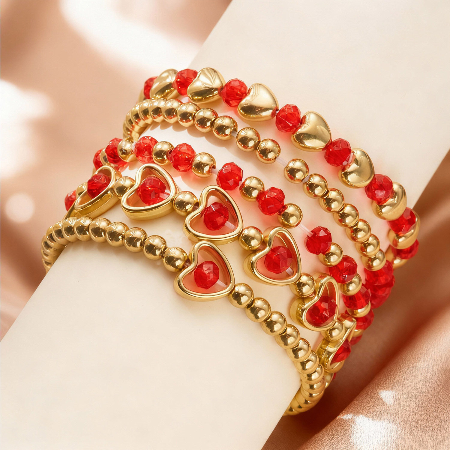European and American Cross-Border Jewelry Bohemian Multi-Layered Crystal Heart Beaded Bracelet Valentine's Day Stacking Fashion Versatile