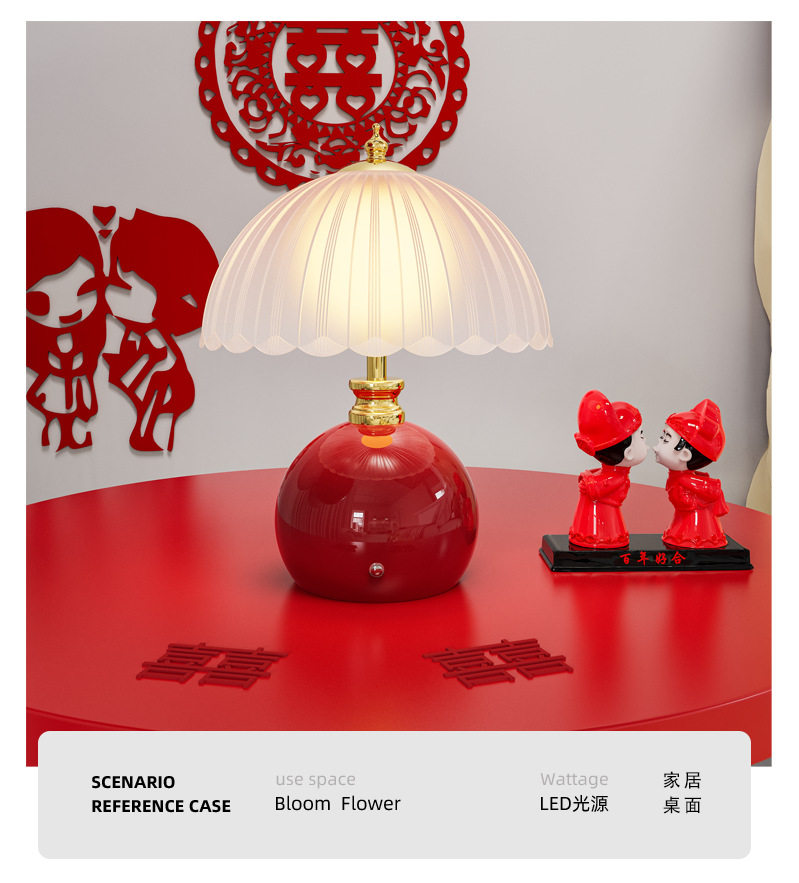 Wedding Table Lamp, Wedding Room Bedside Lamp, a Pair of Red Bride Dowry Everlasting Lamps, Wedding Gifts, Wedding Celebration Metal