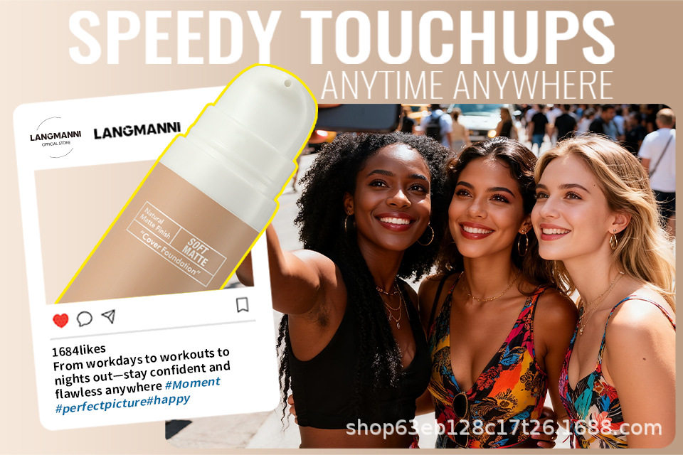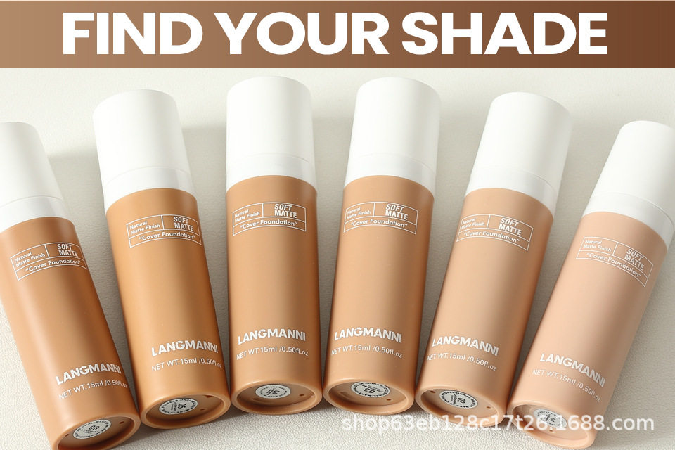 Langmanni Cross-Border Makeup Liquid Foundation Matte Concealer Long-Lasting Non-Removing Makeup Invisible Pore Foundation European and American Color