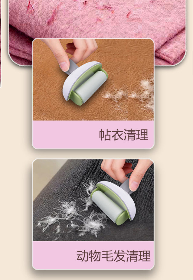 Lint Roller with Tearable Replacement Paper Roll, Macaron Color Mini Household Clothes and Hair Cleaner