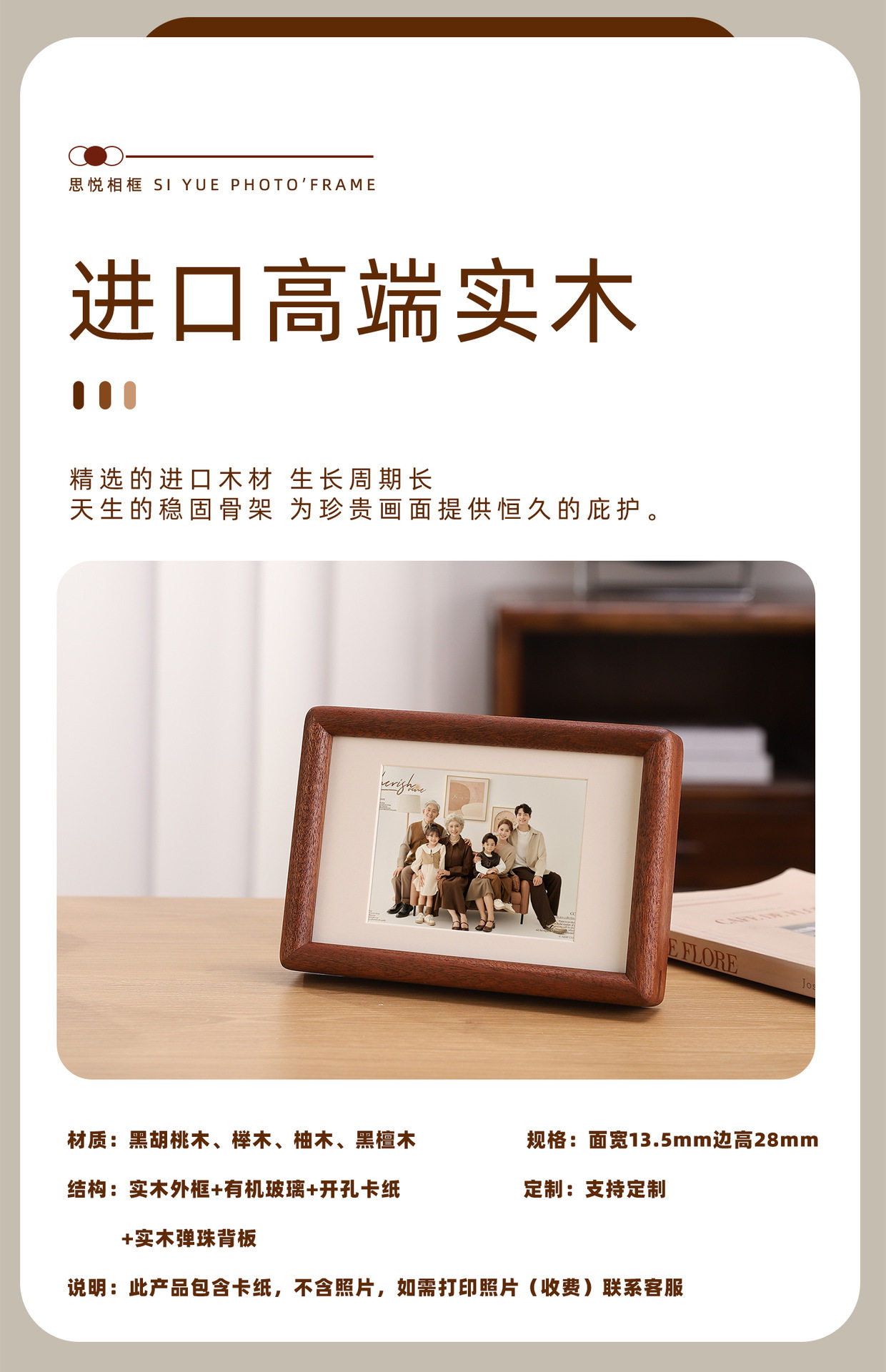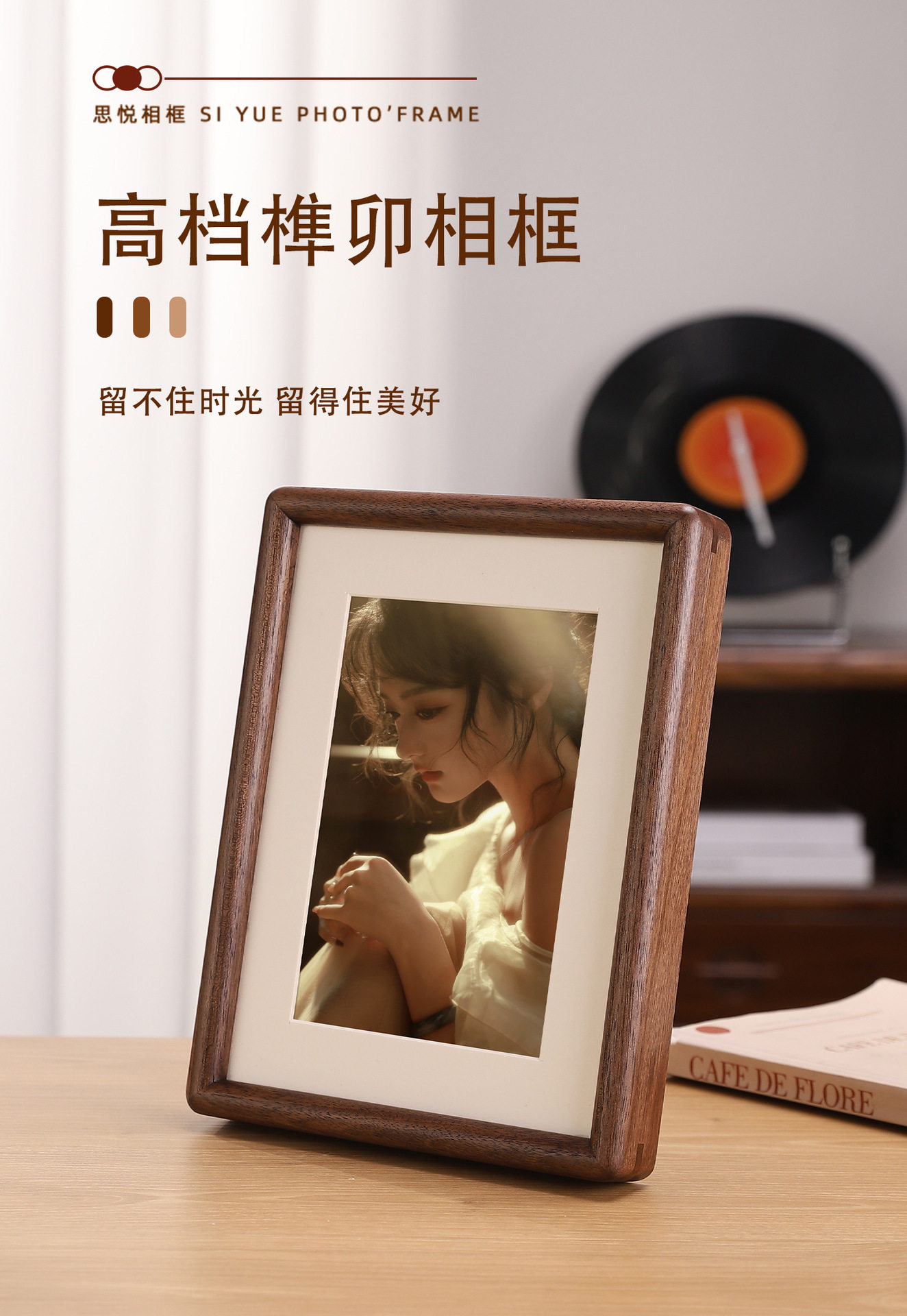 Black Walnut Solid Wood High-End Table Photo Frame Teak Mortise and Tenon Rounded Corner Photo Frame 6inch 12inch Wooden Picture Frame Wall Hanging