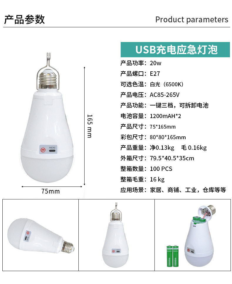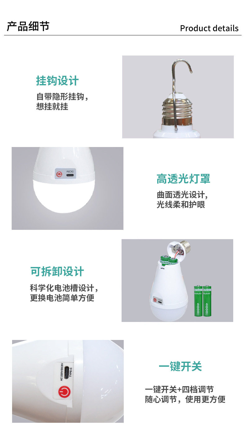Smart Led Bulb E27 Screw Emergency Bulb Energy-Saving Wholesale Household High-Brightness Emergency Lighting Rechargeable Emergency Light