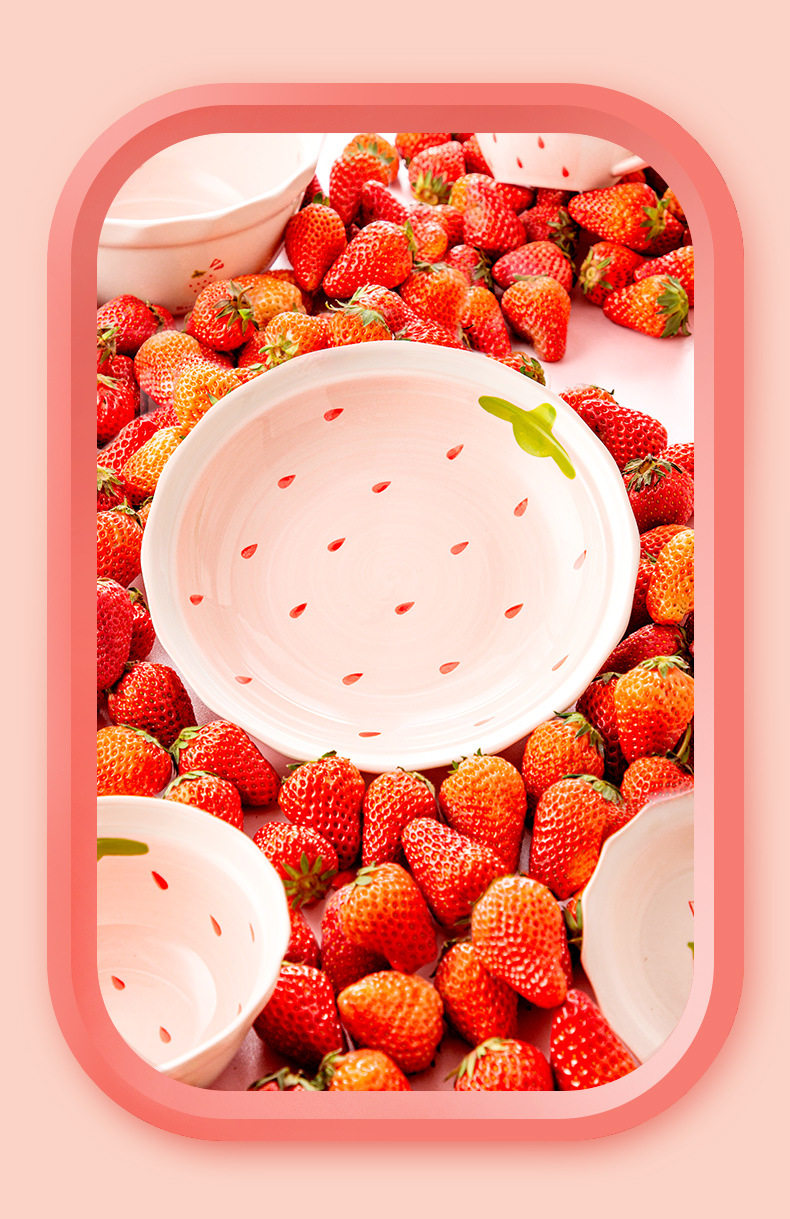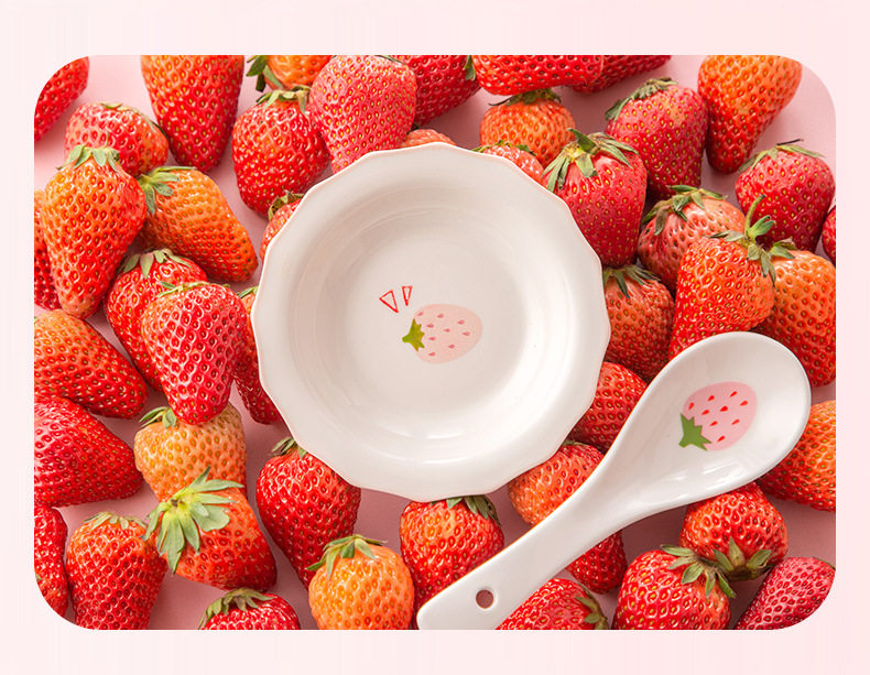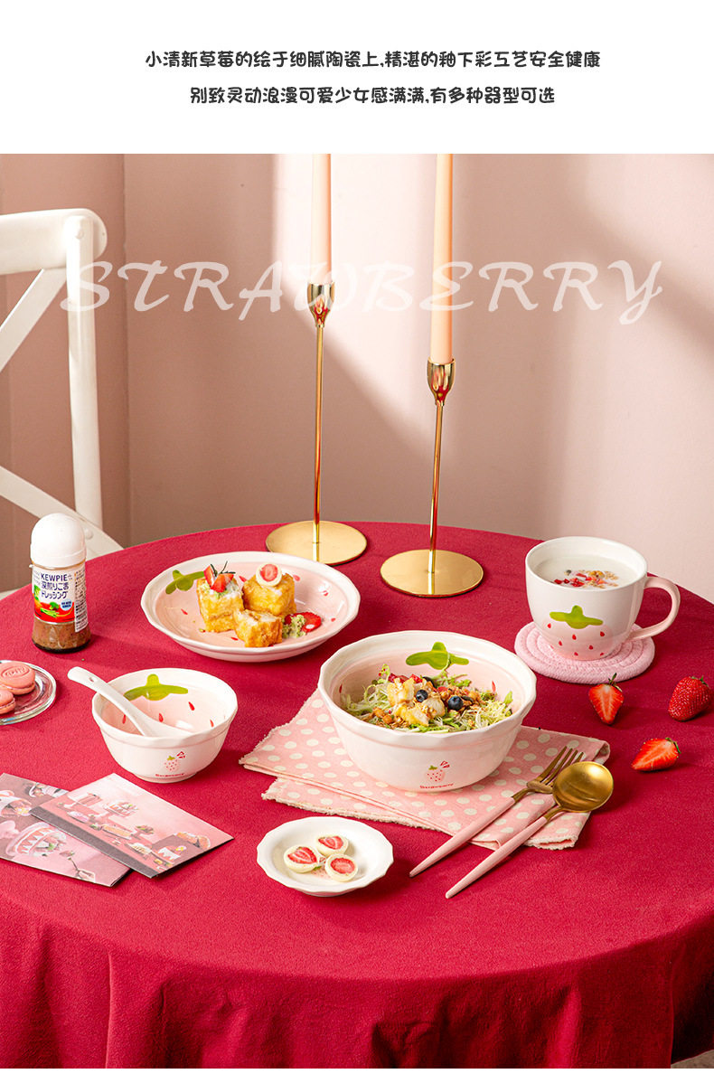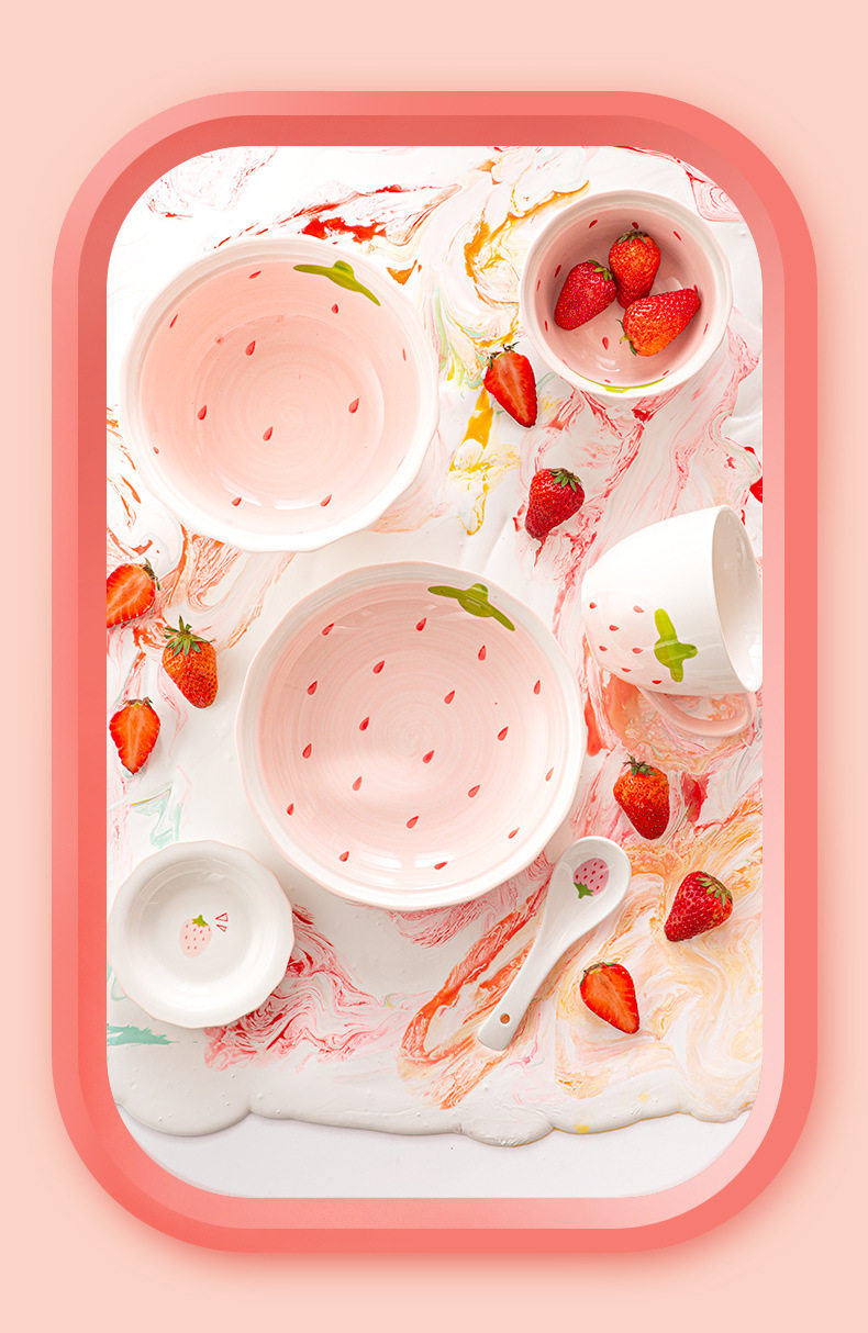 New Strawberry Creative Stylish Household Ceramic Ins Style Tableware Set Cute Rice Bowl Dish Plate Flavor Plate Dropshipping