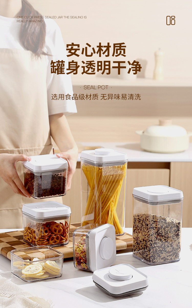 Press-Type Sealed Jar for Storing Grains, Dry Goods, Snacks, Spices, Food-Grade Storage, Moisture-Proof Jar
