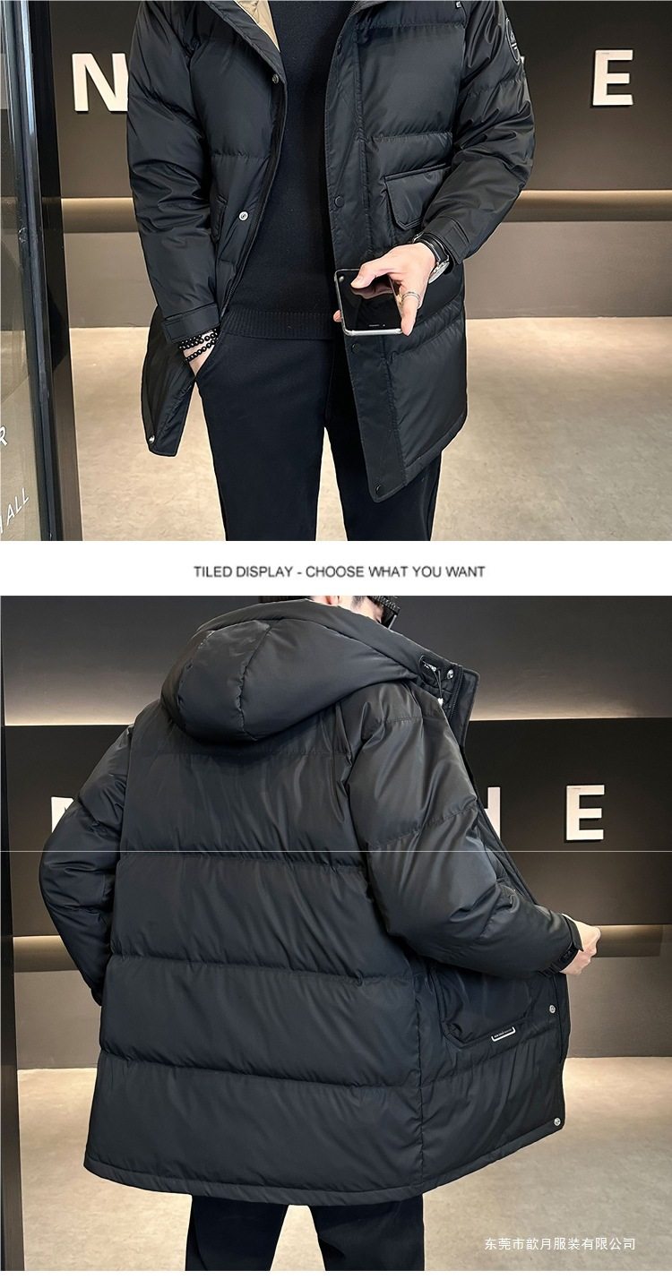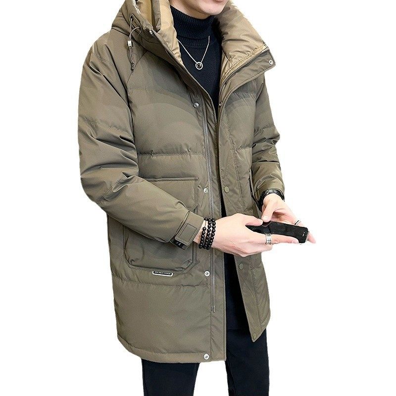 Hooded down Jacket Men's Winter 2024 New Mid-Length Jacket Men's Autumn and Winter Trendy Brand Korean Style Thickeneded Outwear
