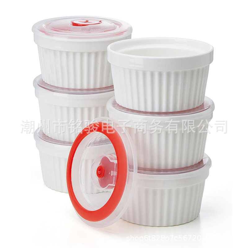Ceramic Dessert Bowl with Lid, Ice Cream Cup, Non-Stick, High Temperature Resistant Oven, Microwave Oven Baking Bowl, Caramel Pudding Bowl, Porcelain Tableware