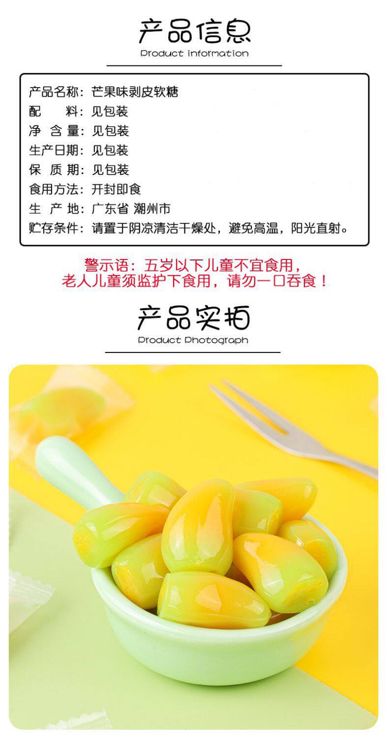 Mango Peeled Soft Candy, Juice Flavored Peeled Soft Candy, Gummy Candy, Casual Snacks, Internet Celebrity Peeled Fruit Soft Candy, Candy