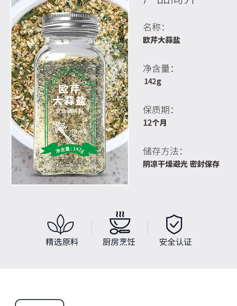 | Specifications | Parsley garlic salt 142gx1 bottle,Parsley garlic salt 142gx2 bottles,Parsley garlic salt 142gx3 bottles,Parsley garlic salt 142gx4 bottles,Parsley garlic salt 142gx5 bottles,Parsley garlic salt 142gx6 bottles |
