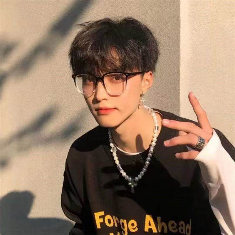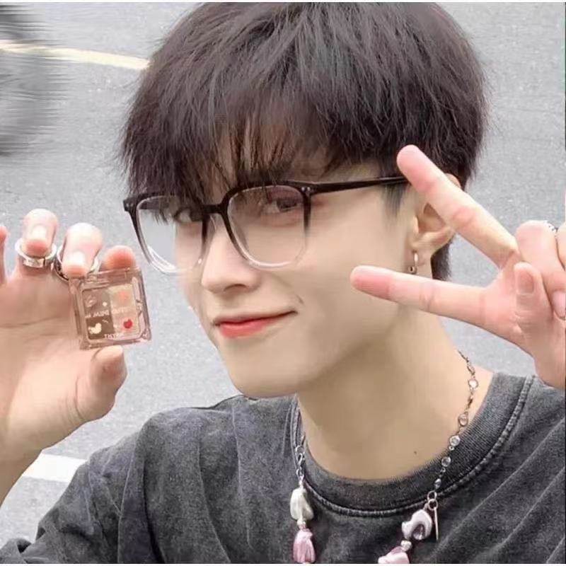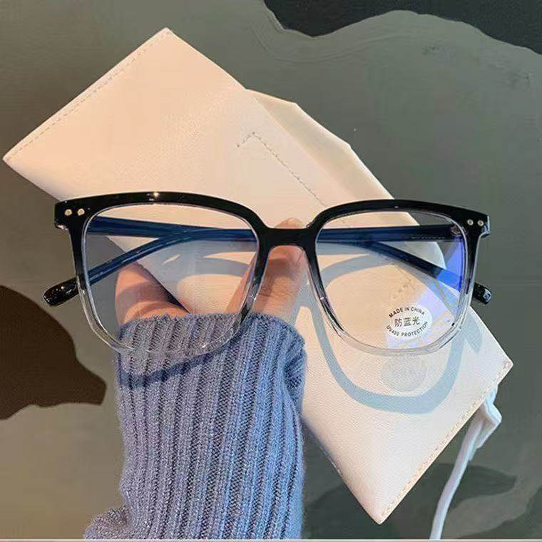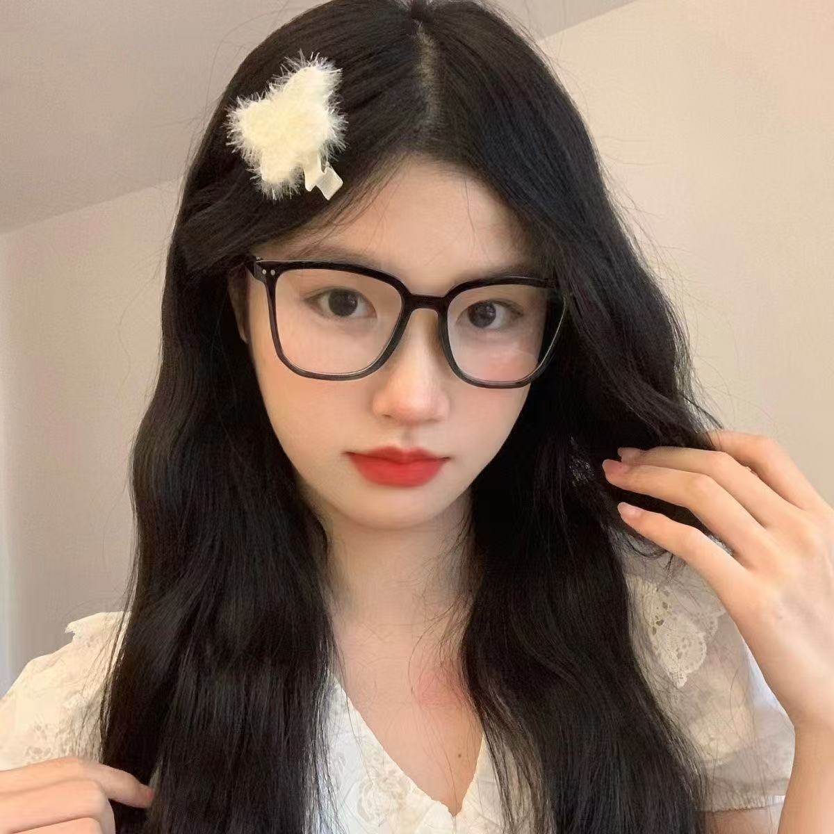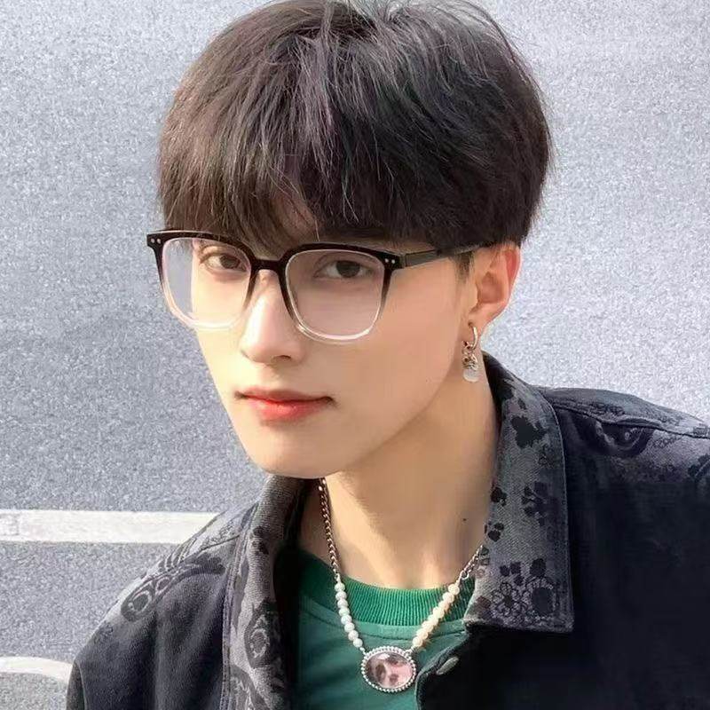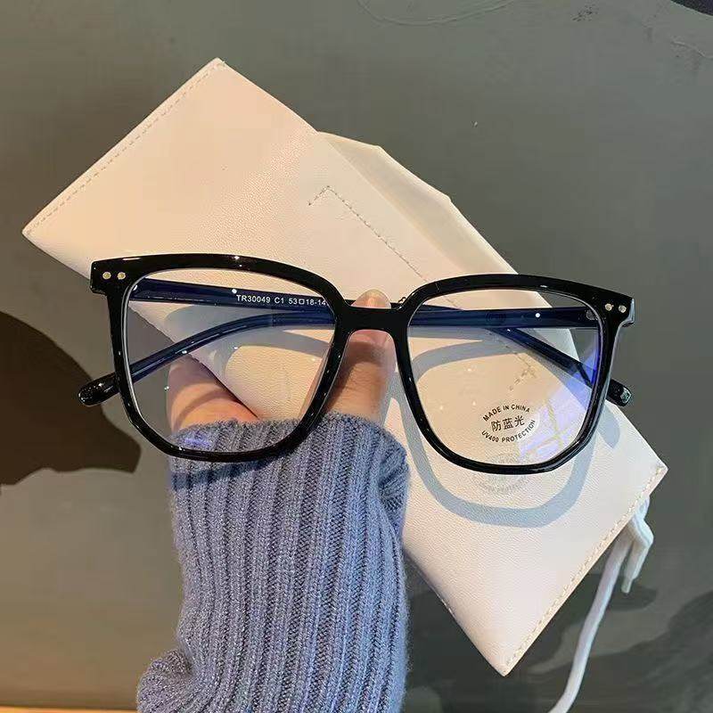 Street Style Korean Ultra-Light Versatile Glasses Frame Myopia Black Frame Flat Glasses for Women Without Makeup Oval Frame Men's Anti-Blue Light Glasses
