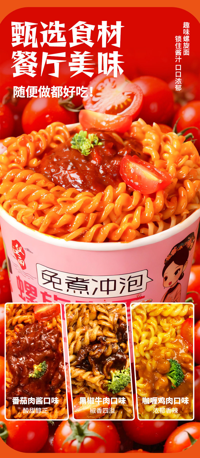 Tomato Meat Sauce Spiral Pasta Barreled Children's Instant Pasta Pasta Macaroni Spiral Pasta
