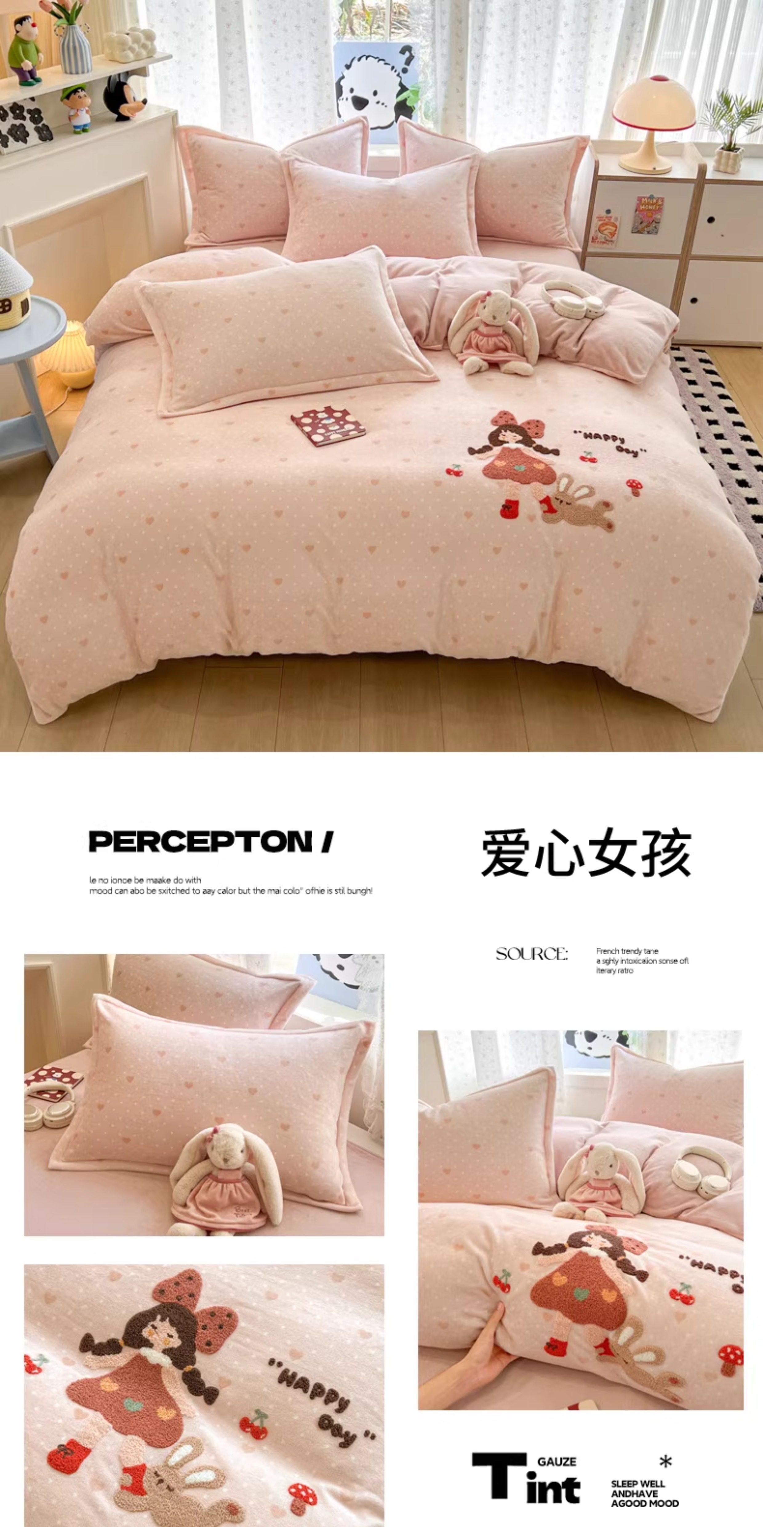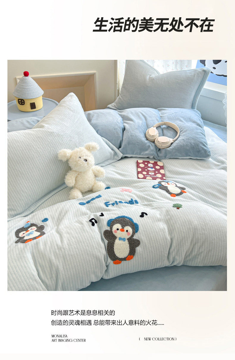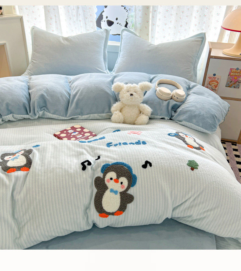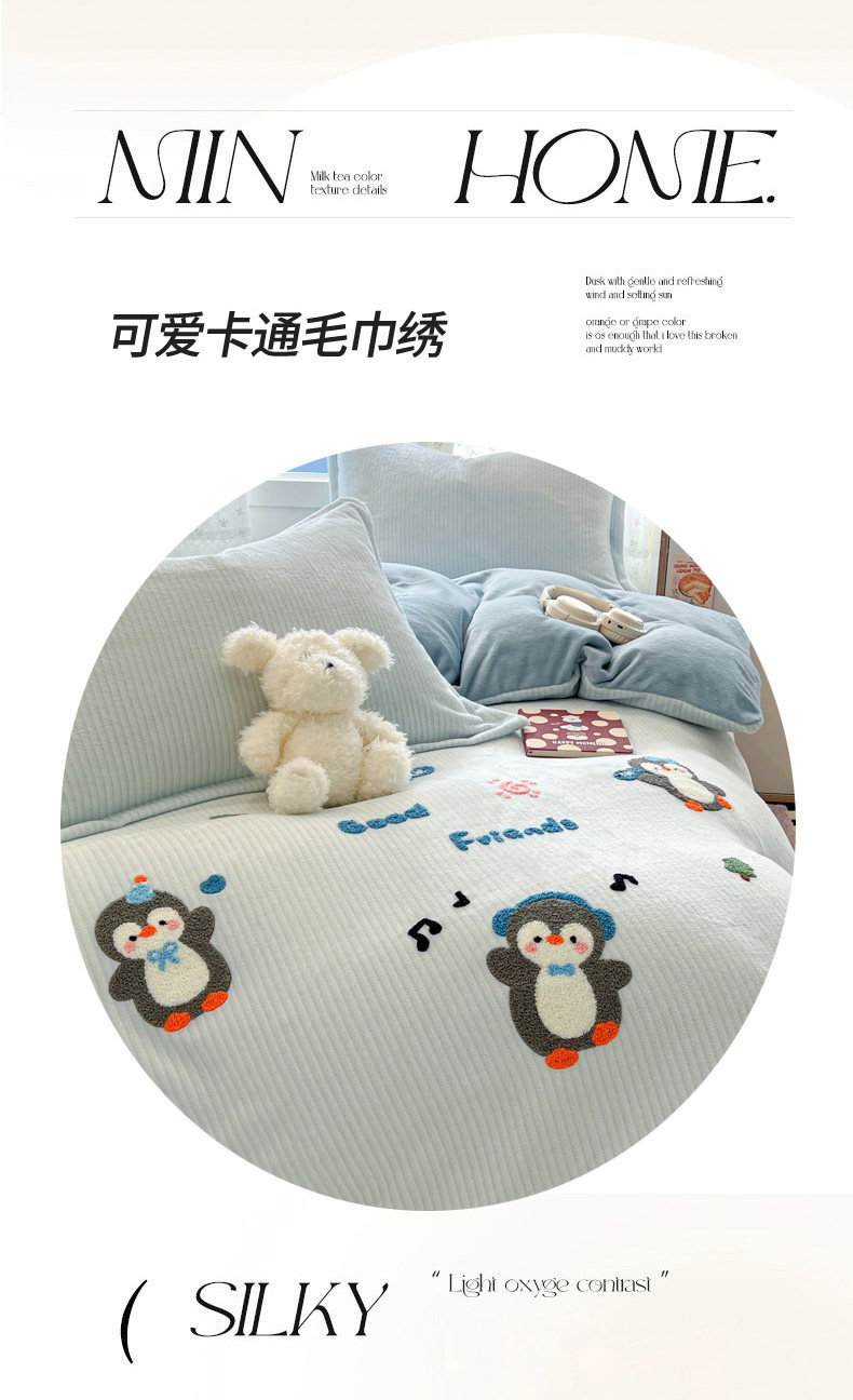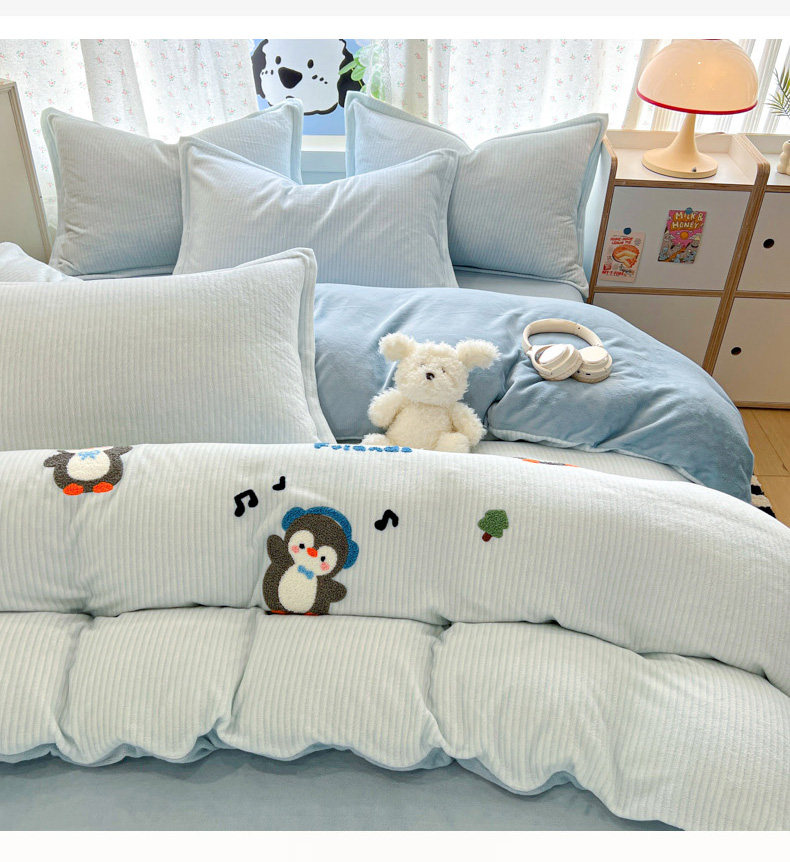 Ins Cute Kidsren's Milk Velvet Four-Piece Winter Thickeneded Warm Coral Velvet Quilt Cover Bed Sheetss Dormitory Three-Piece Set