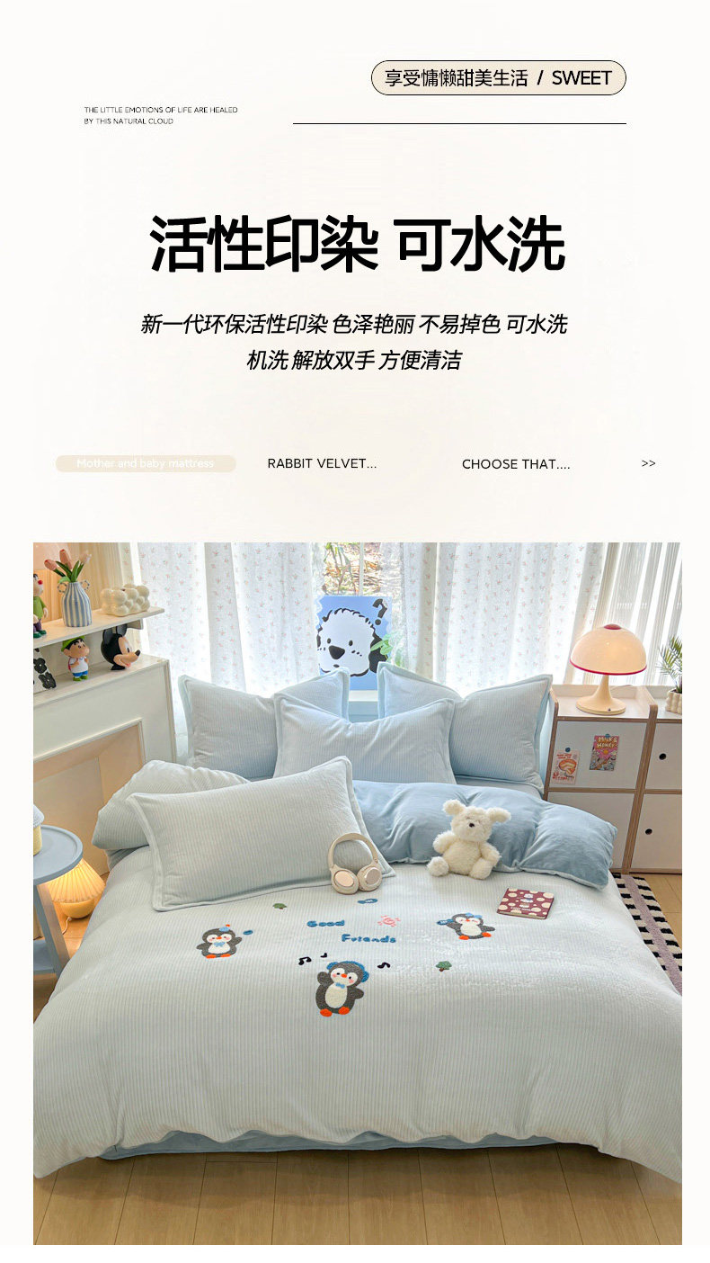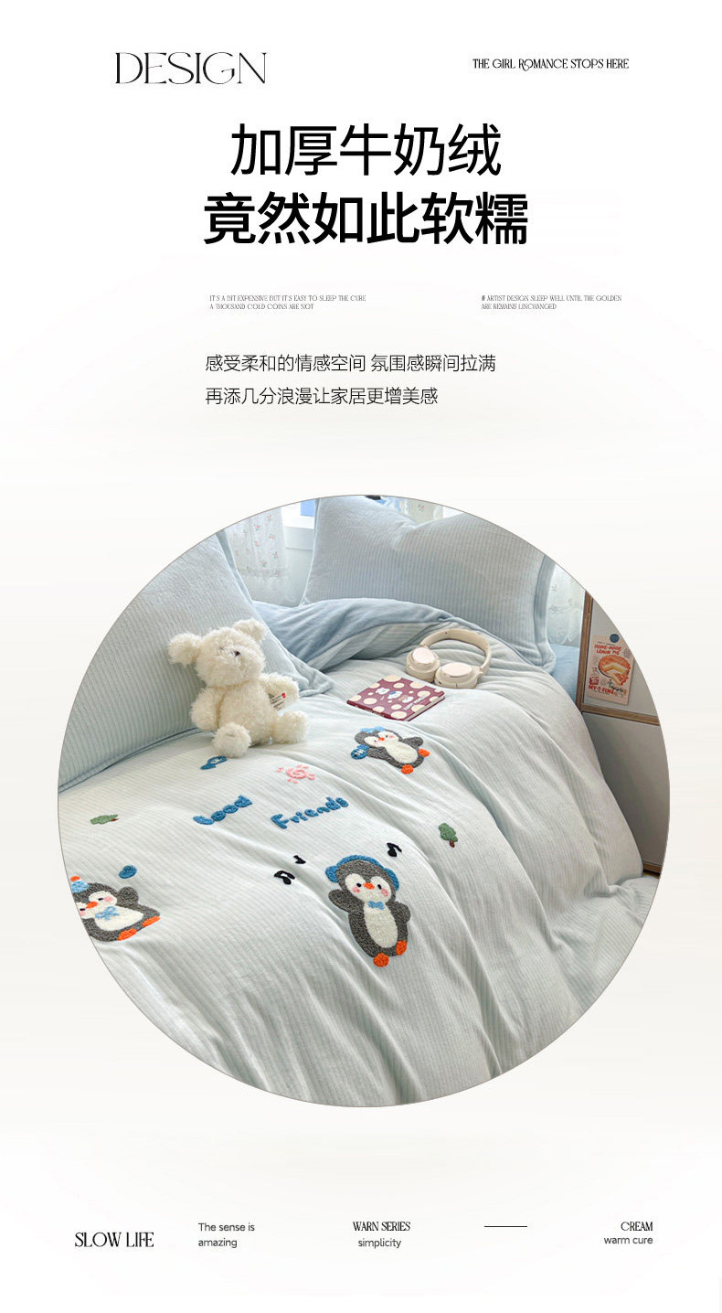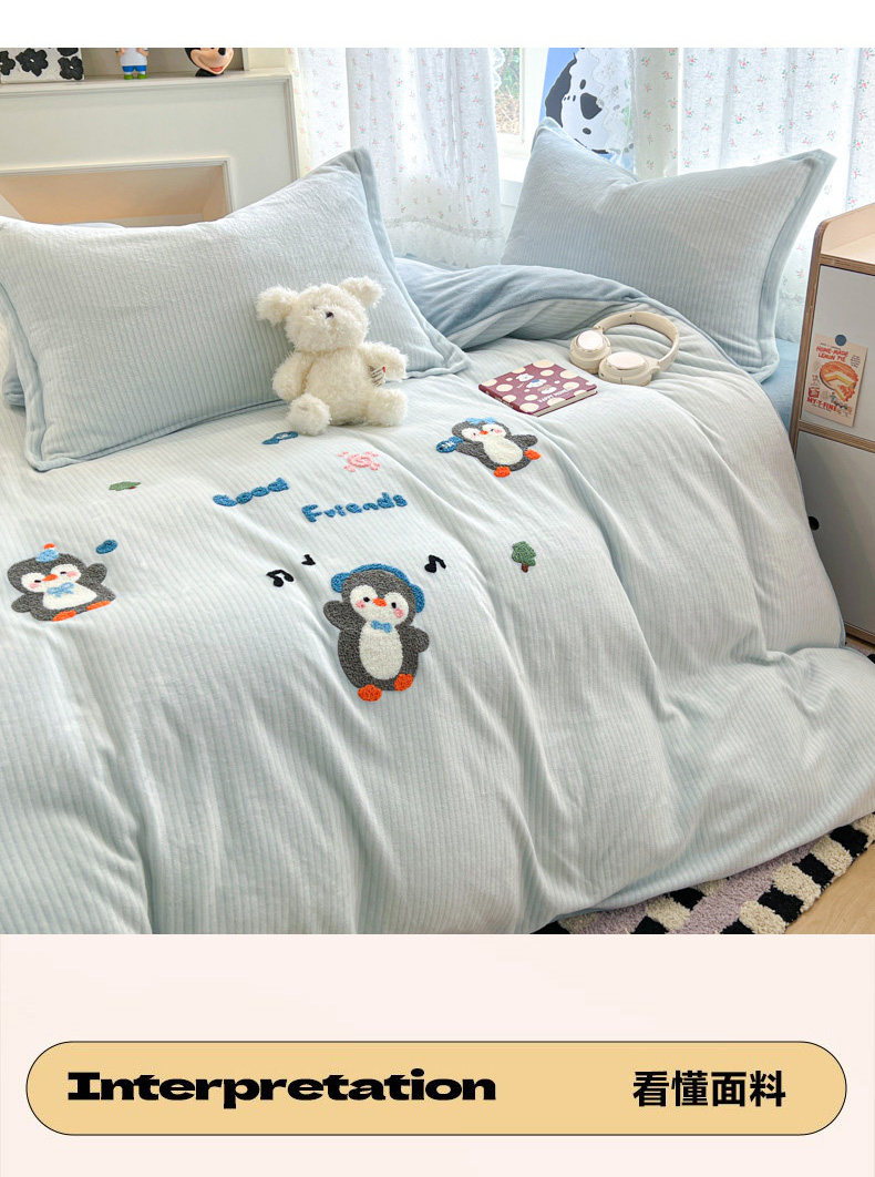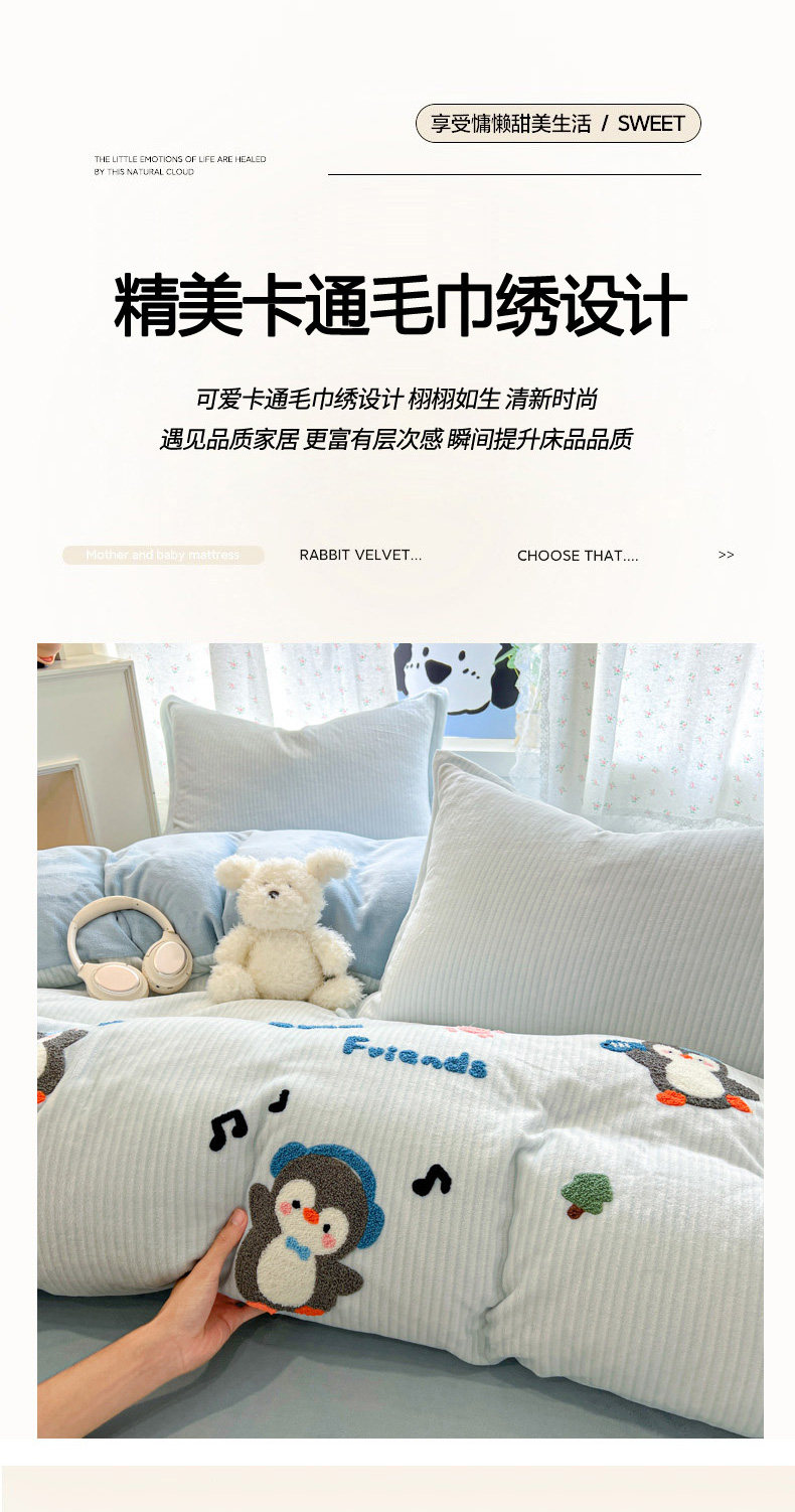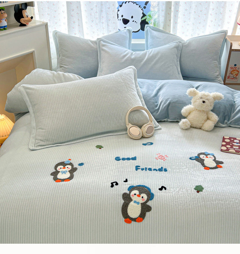 Ins Cute Kidsren's Milk Velvet Four-Piece Winter Thickeneded Warm Coral Velvet Quilt Cover Bed Sheetss Dormitory Three-Piece Set