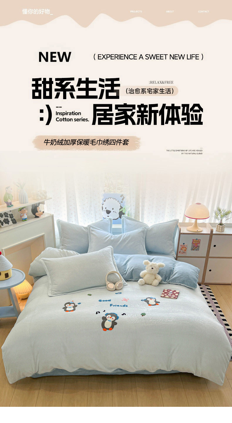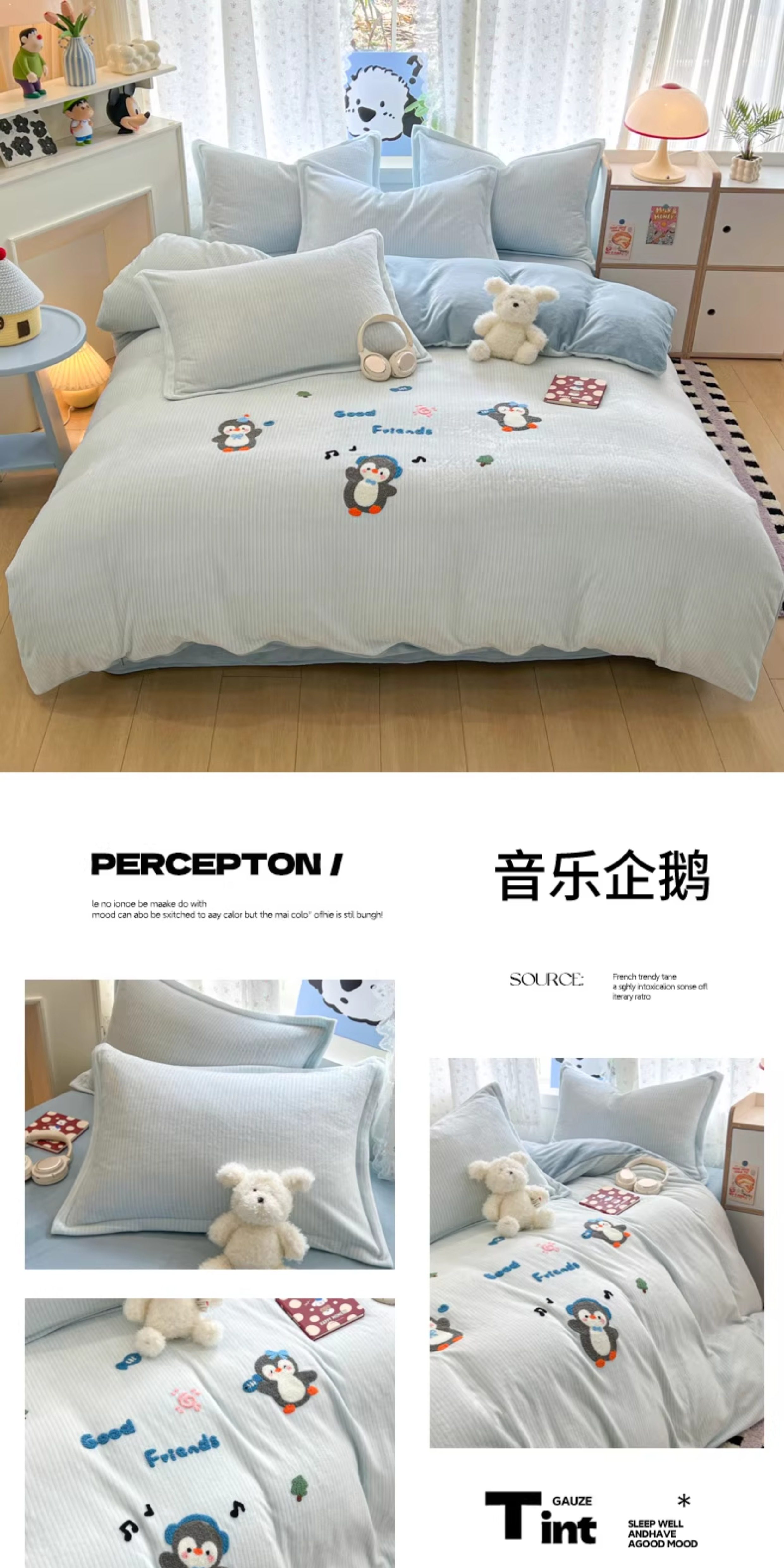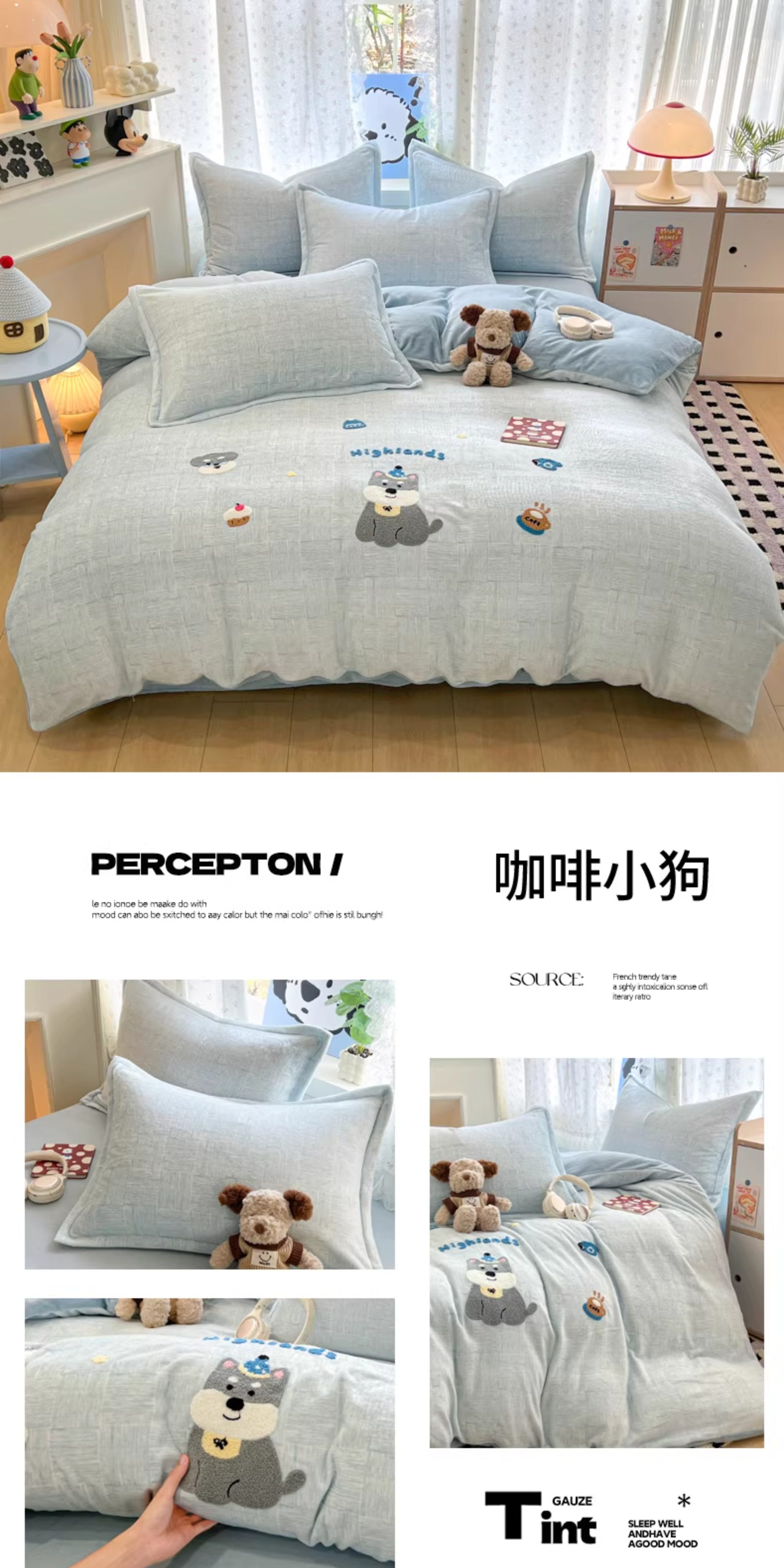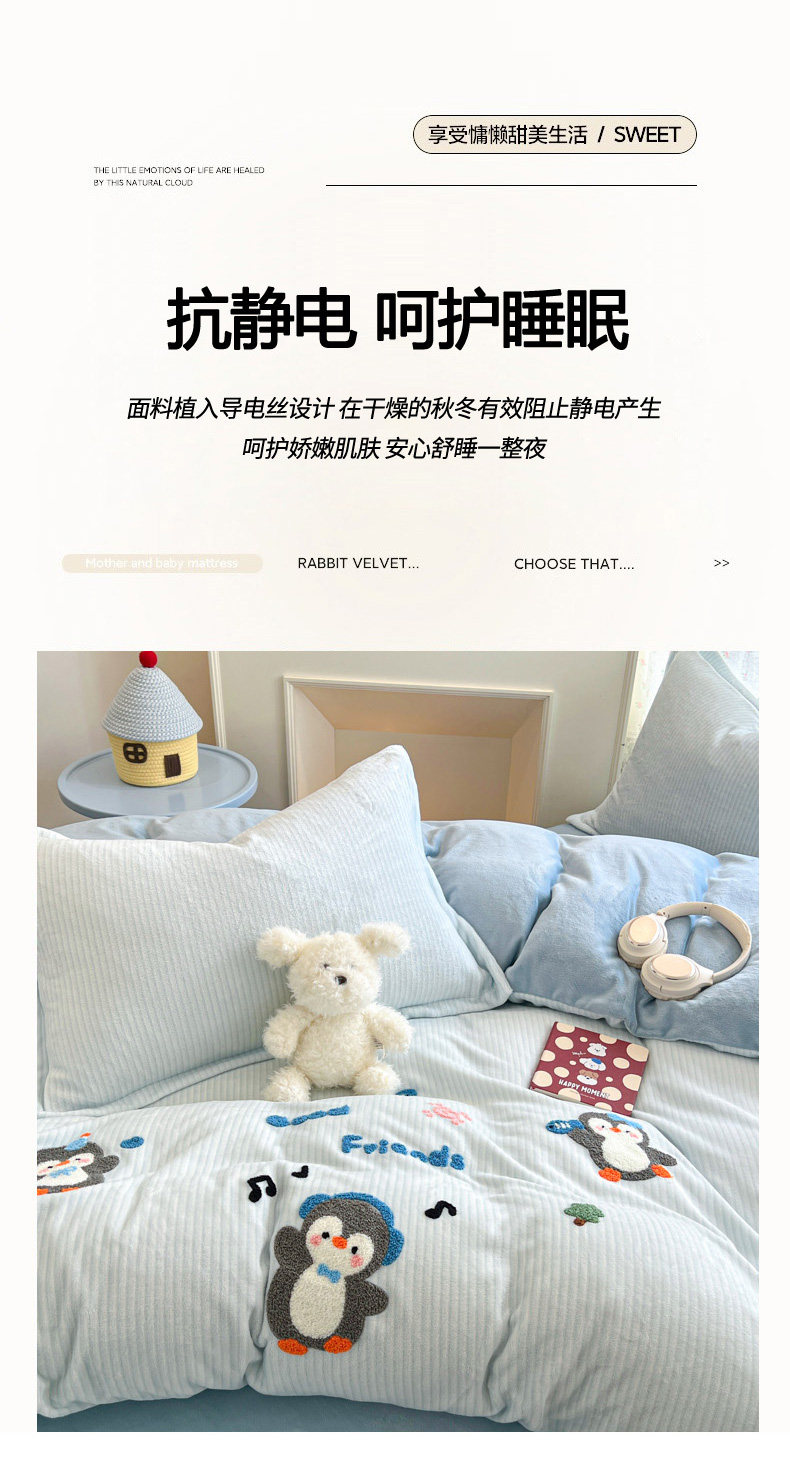 Ins Cute Kidsren's Milk Velvet Four-Piece Winter Thickeneded Warm Coral Velvet Quilt Cover Bed Sheetss Dormitory Three-Piece Set