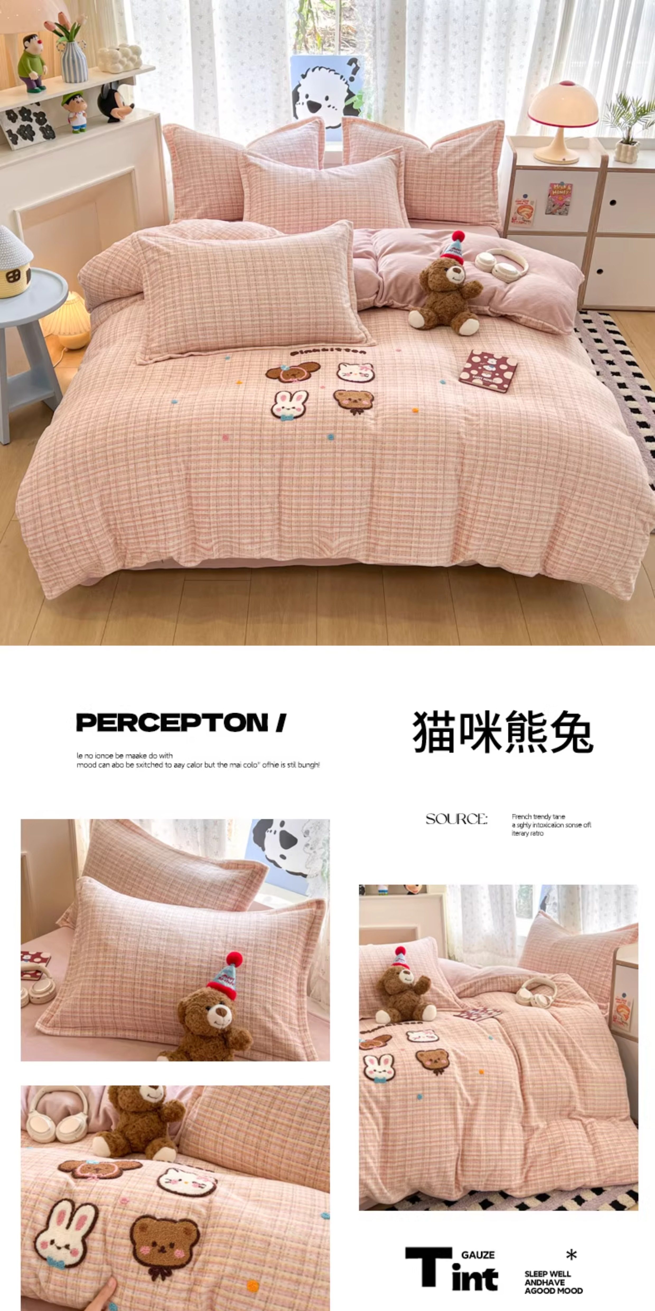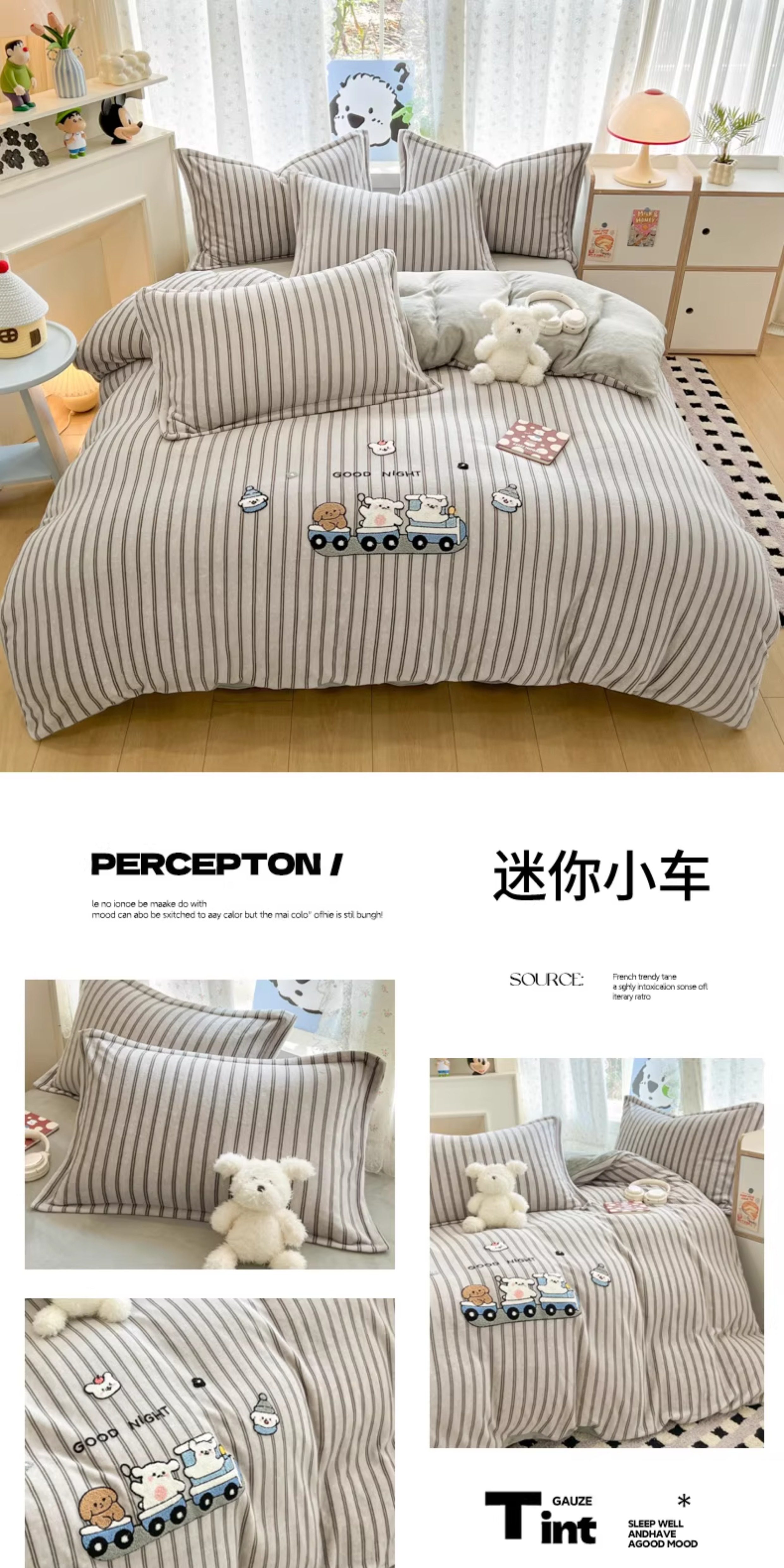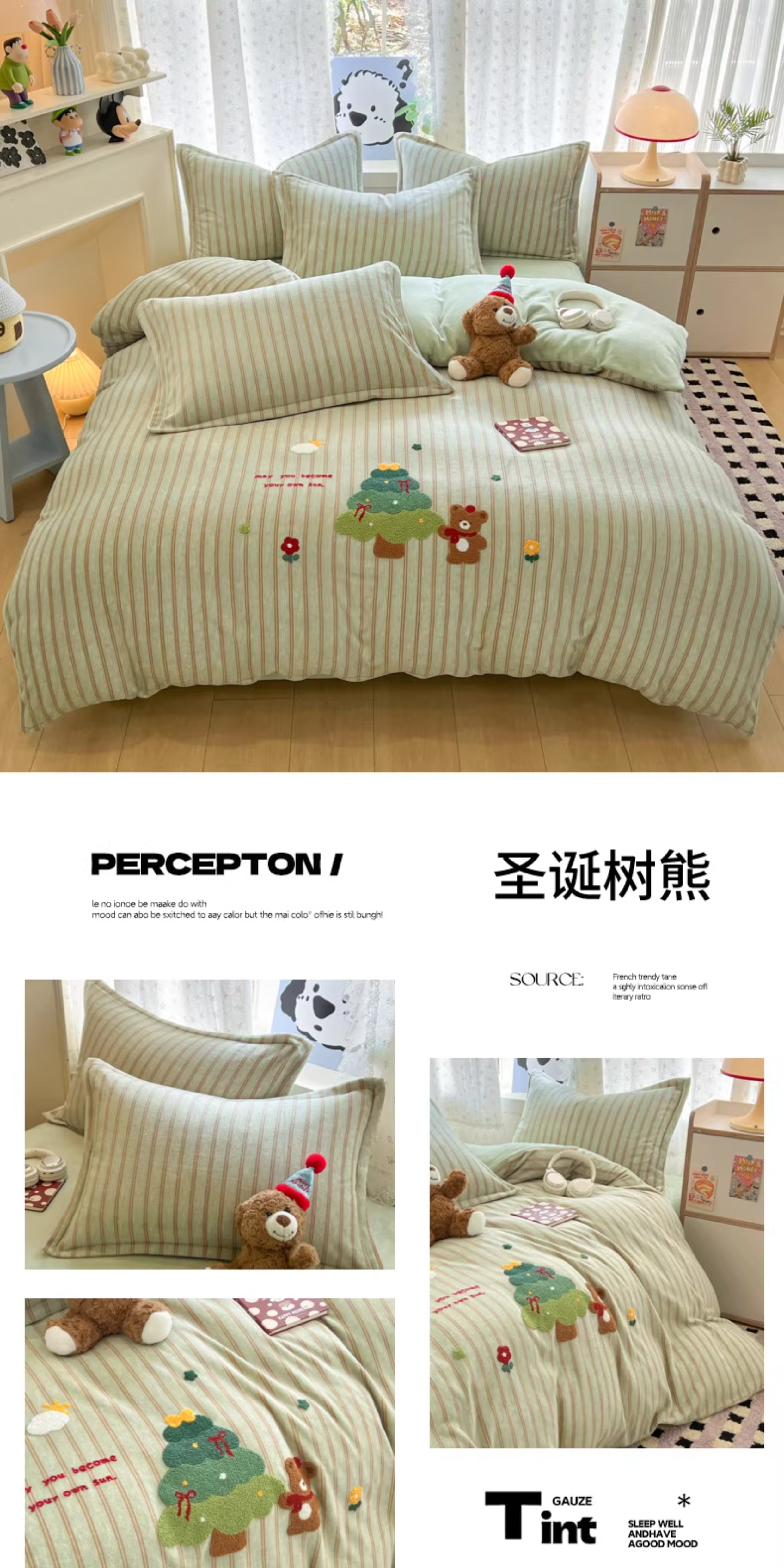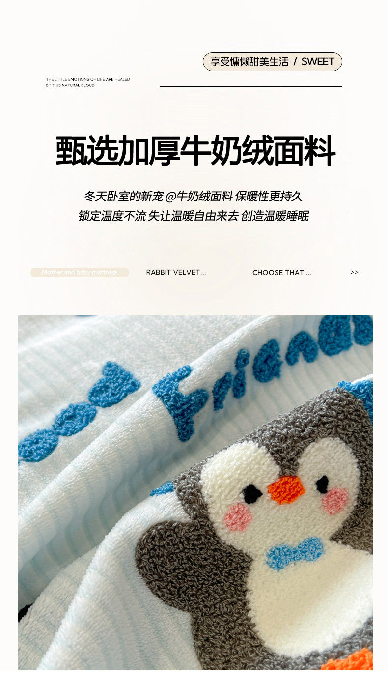 Ins Cute Kidsren's Milk Velvet Four-Piece Winter Thickeneded Warm Coral Velvet Quilt Cover Bed Sheetss Dormitory Three-Piece Set