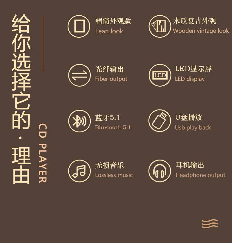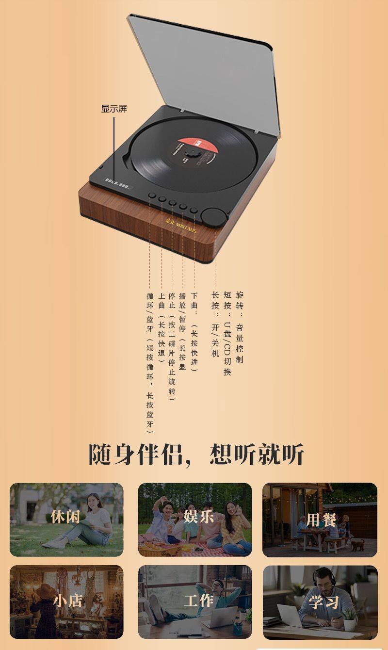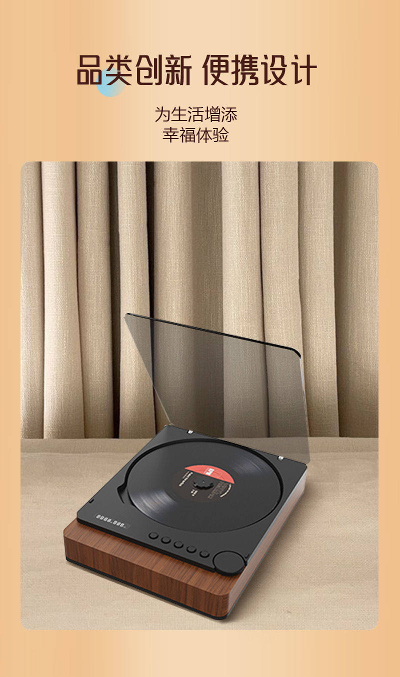 | Color | Retro portable cd player audiophile grade bluetooth hifi sound quality cd album high quality transparent cover |