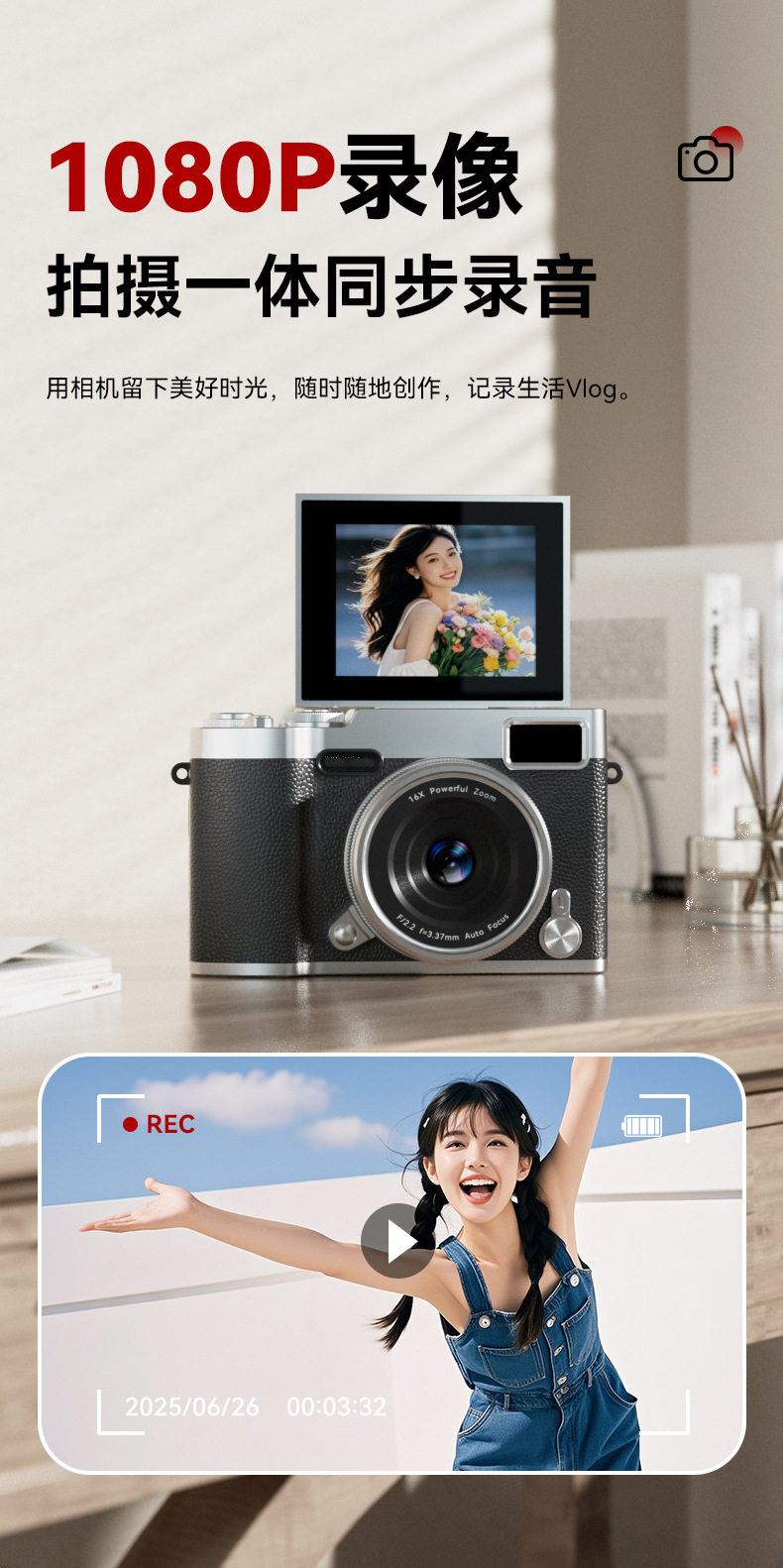 New Cross-Border Ultra-Clear Flip Screen Card Machine Campus Student Selfie Ccd Entry-Level Retro Digital Camera