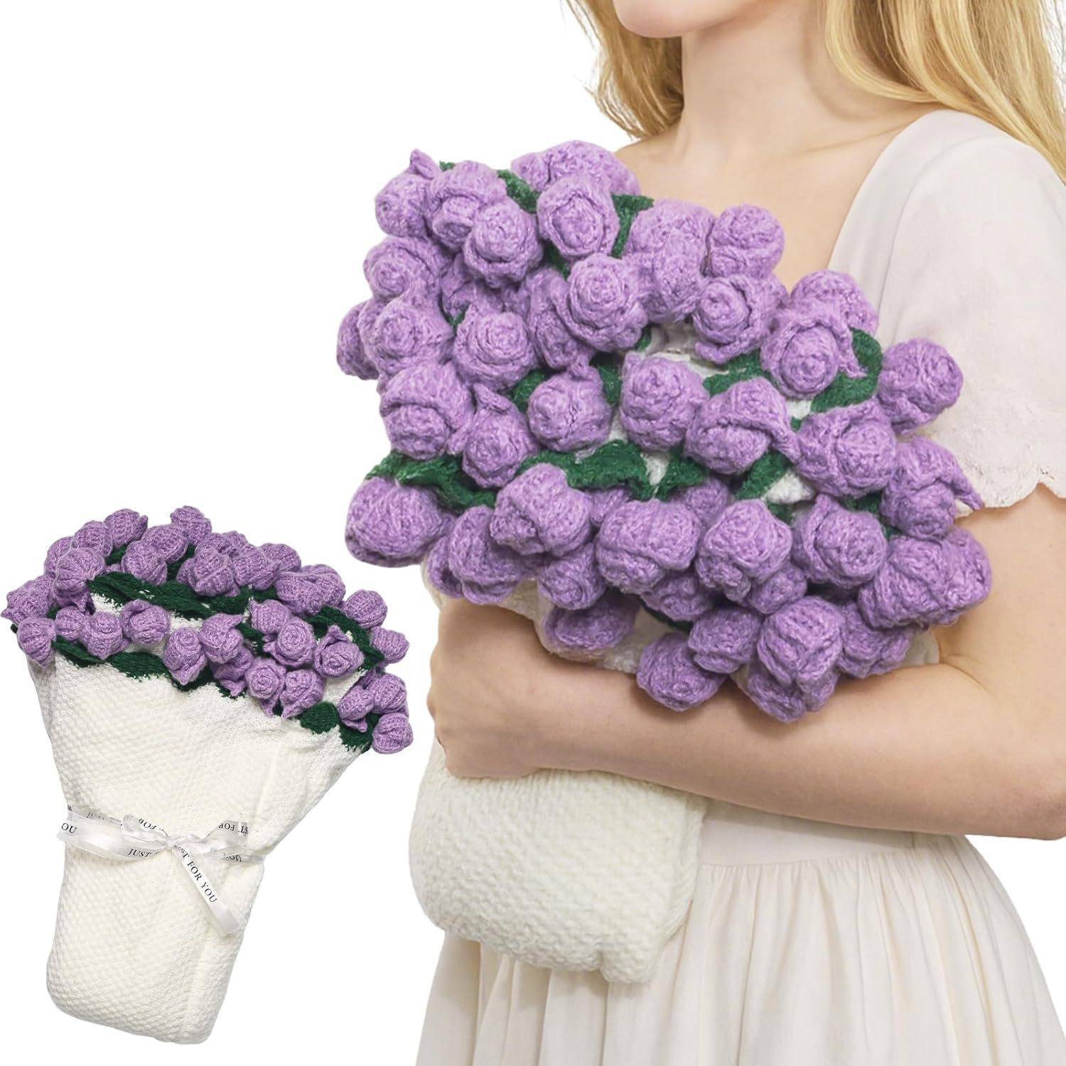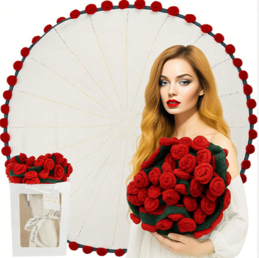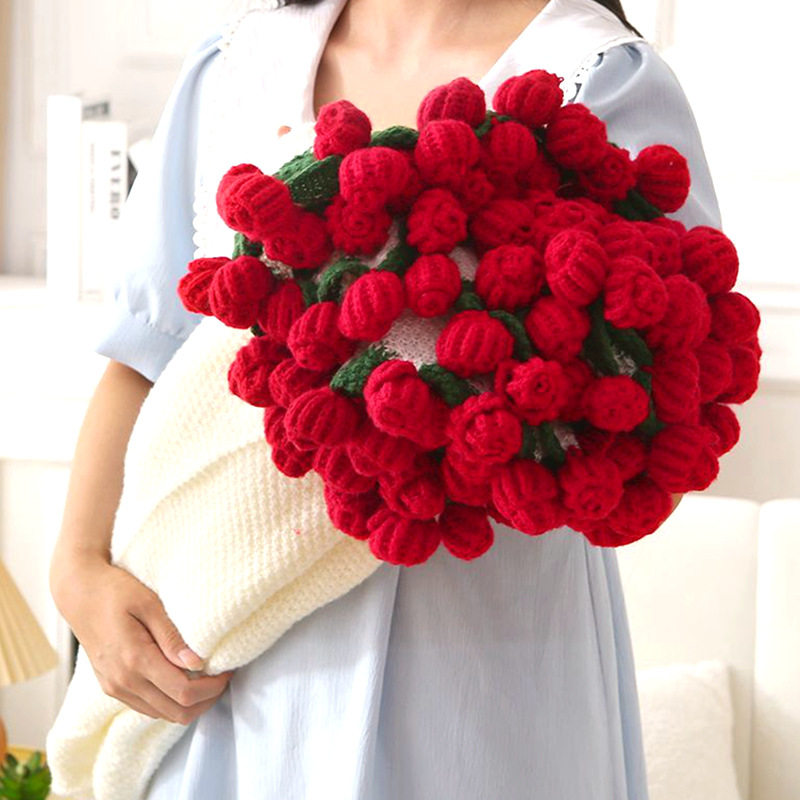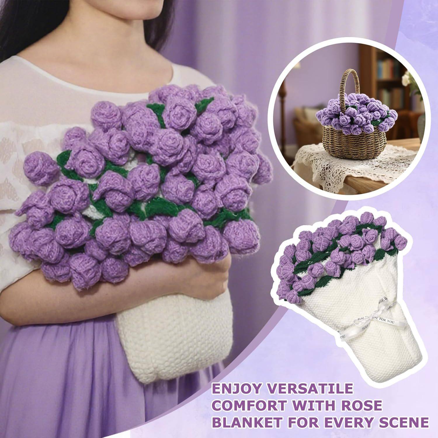 Finished Hand-Knitted Rose Bouquet Blanket, Flower Blanket, Wool Nap Blanket, Blanket for Girlfriend and Best Friend, New Christmas Gift