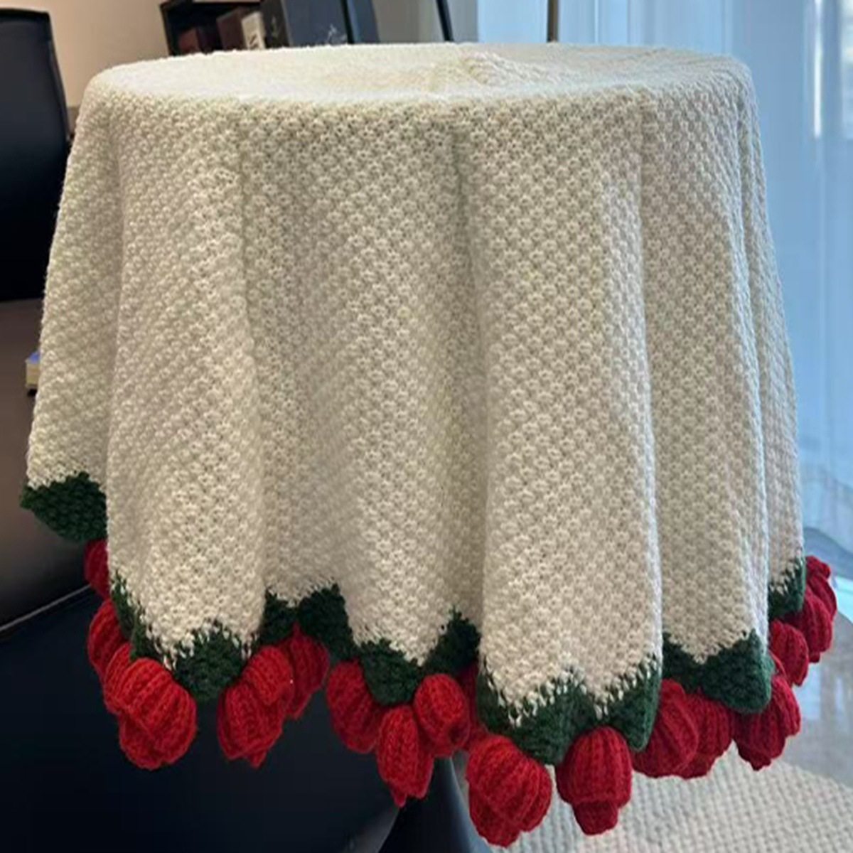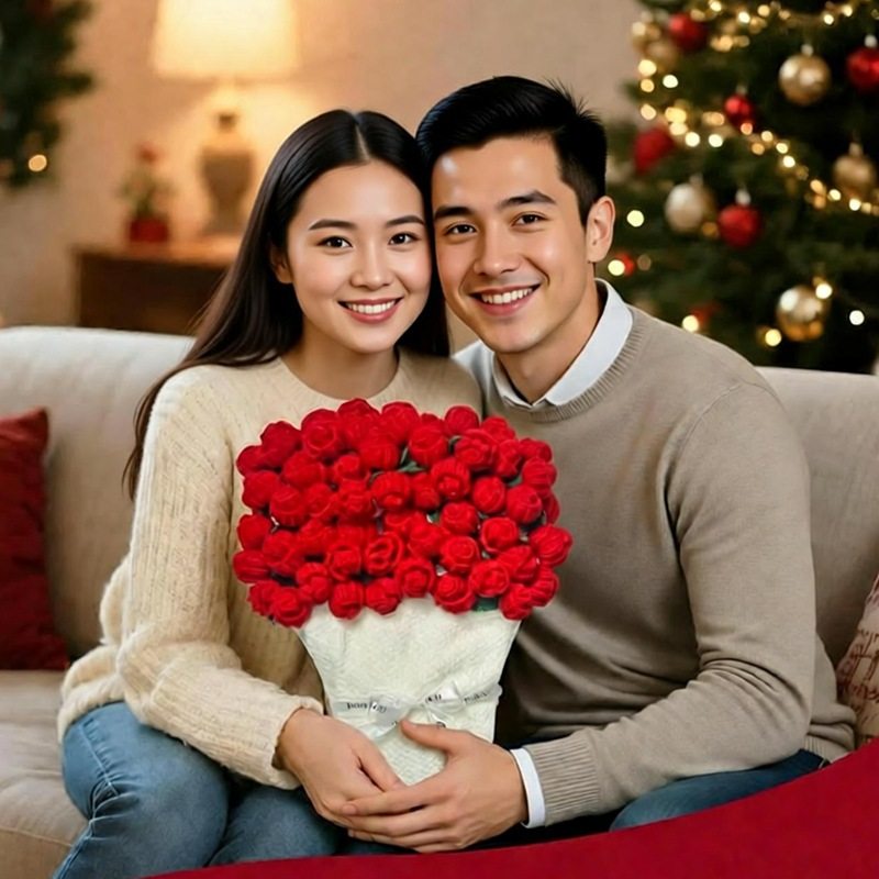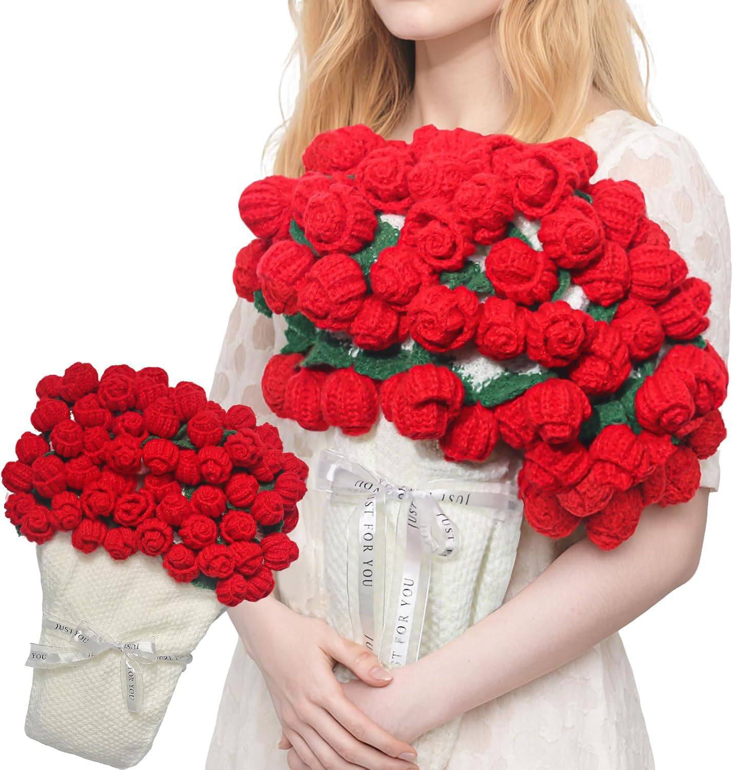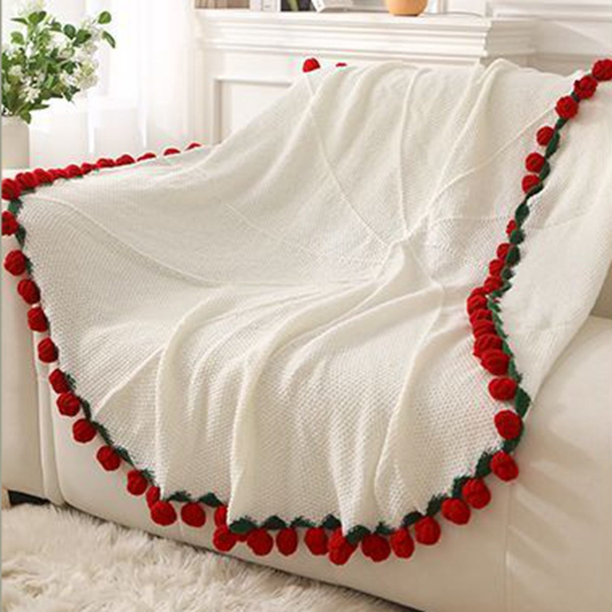 Finished Hand-Knitted Rose Bouquet Blanket, Flower Blanket, Wool Nap Blanket, Blanket for Girlfriend and Best Friend, New Christmas Gift