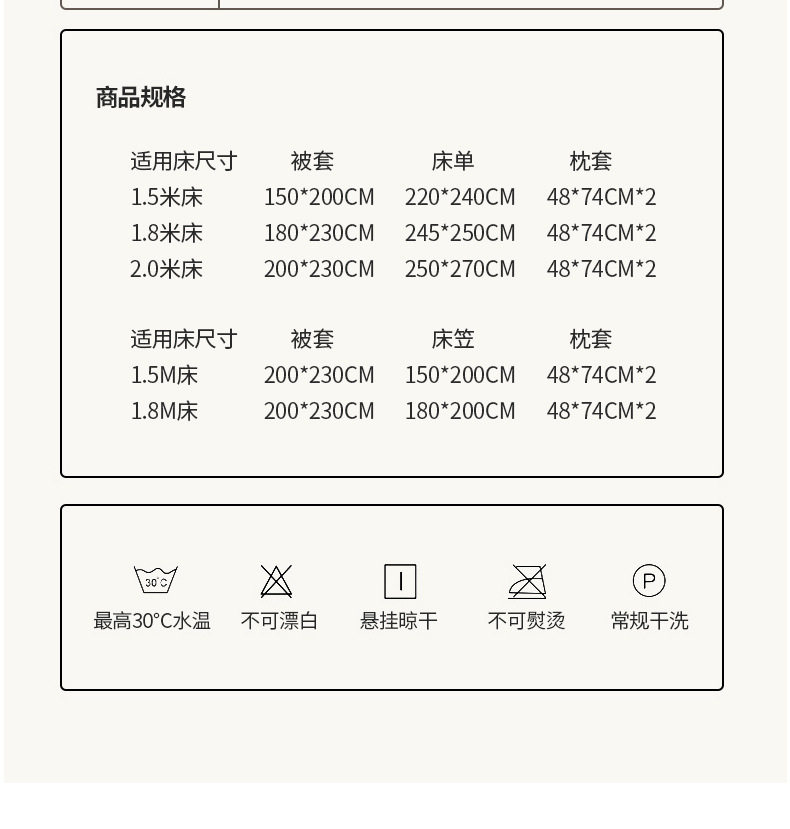 | Size specifications | 1.2m bed sheets three-piece set,1.5m bed sheet set of four,1.8m bed sheet set of four,2.0m bed sheet set of four |