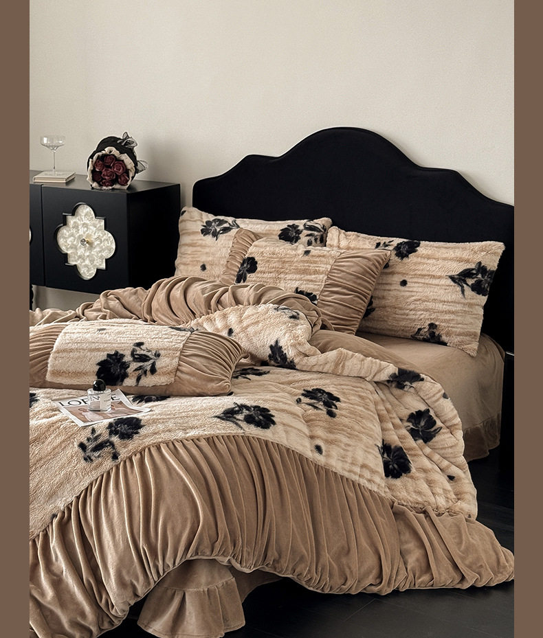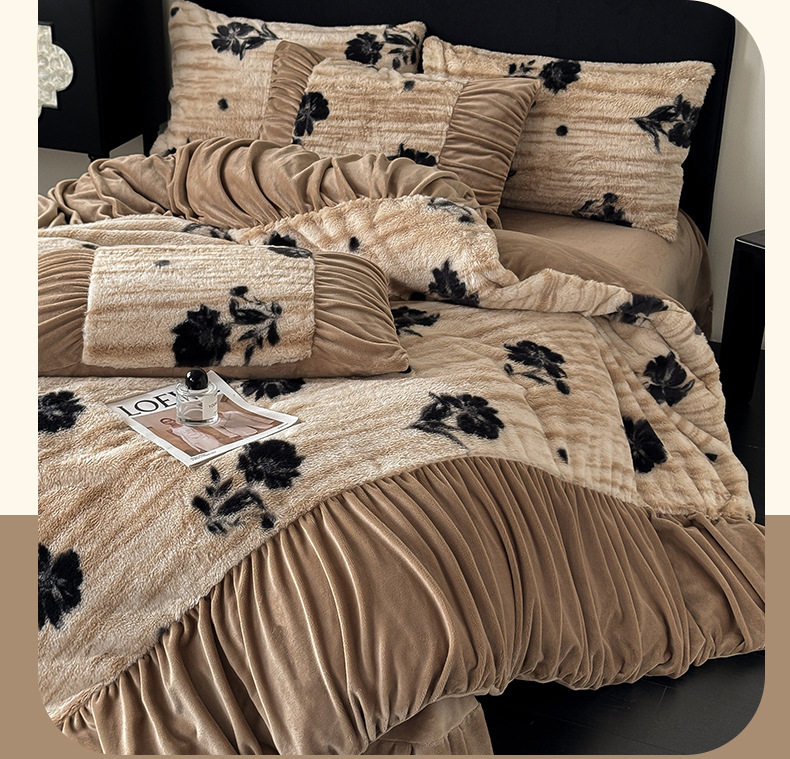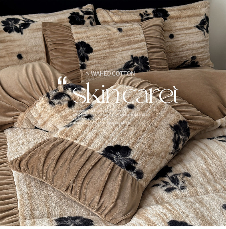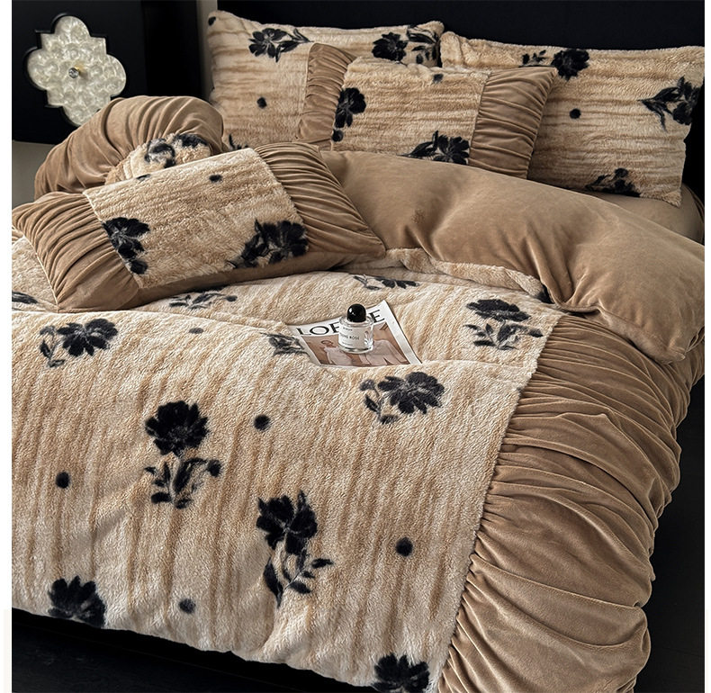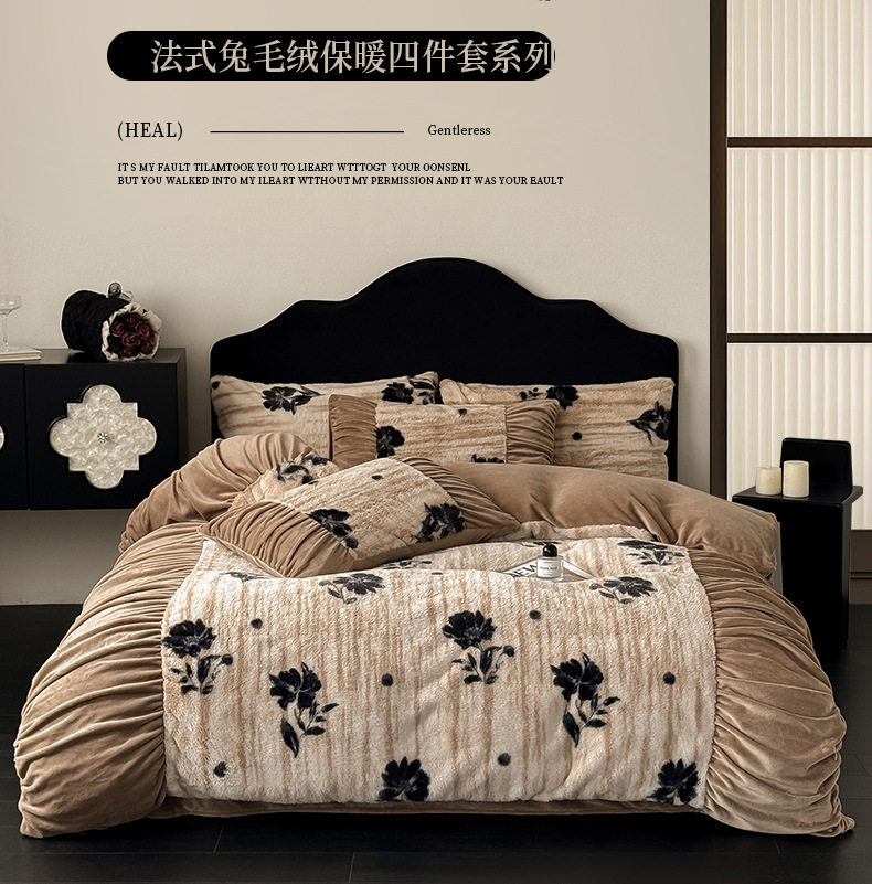 Ancient French Rabbit Plush Four-Piece Set Milk Velvet Autumn and Winter Fleece-Lined Thickeneded Quilt Cover Three-Piece Set Double-Sided Velvet Carving