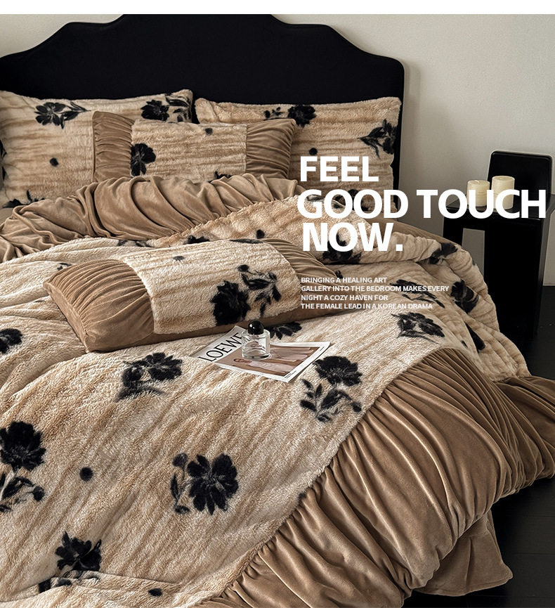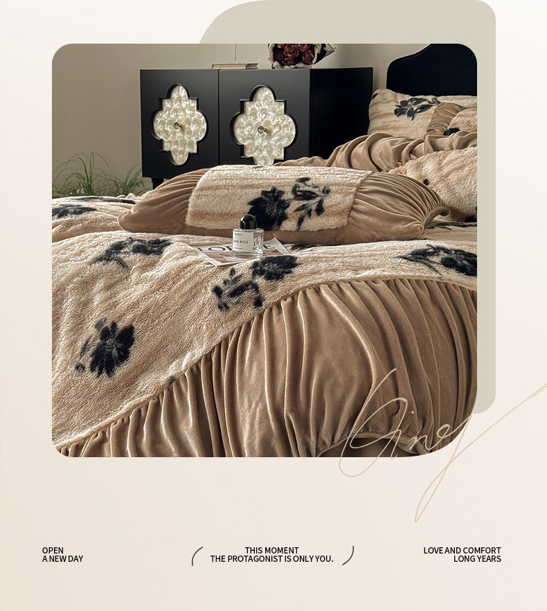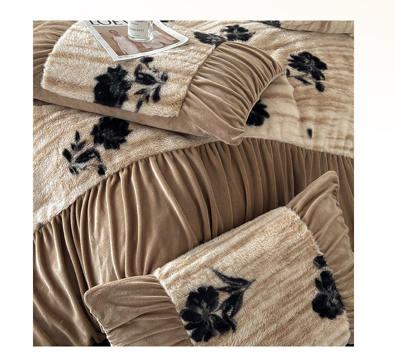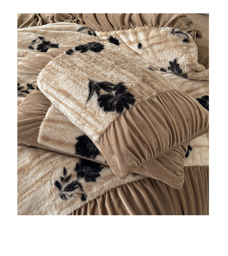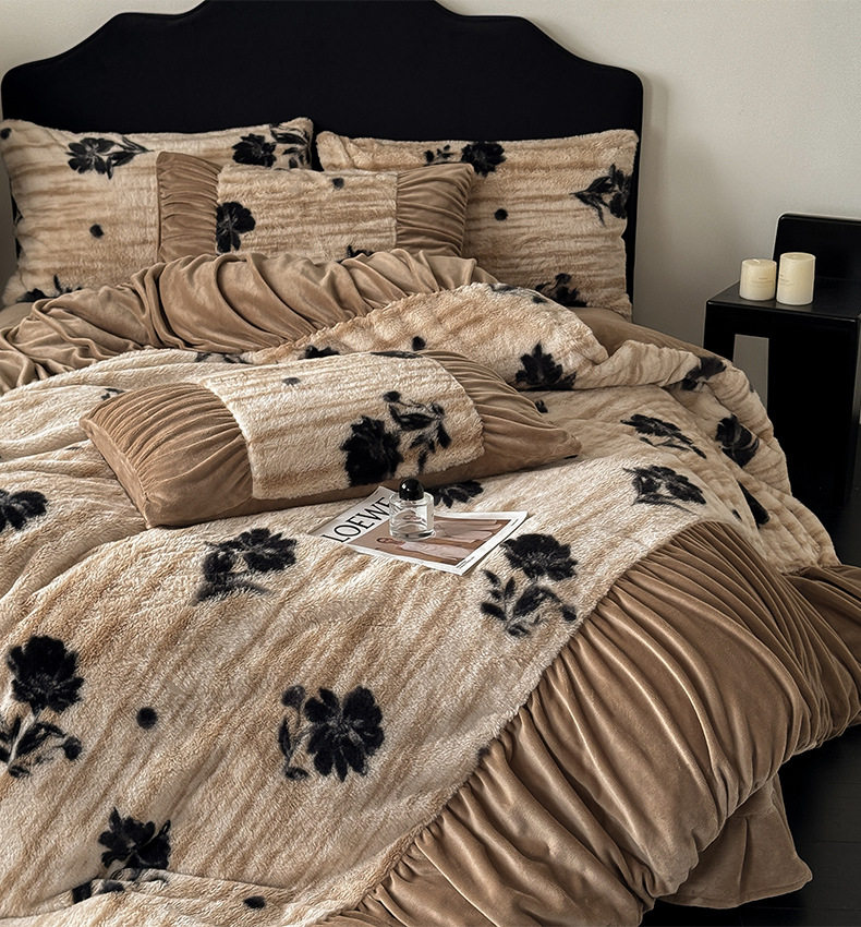 Ancient French Rabbit Plush Four-Piece Set Milk Velvet Autumn and Winter Fleece-Lined Thickeneded Quilt Cover Three-Piece Set Double-Sided Velvet Carving